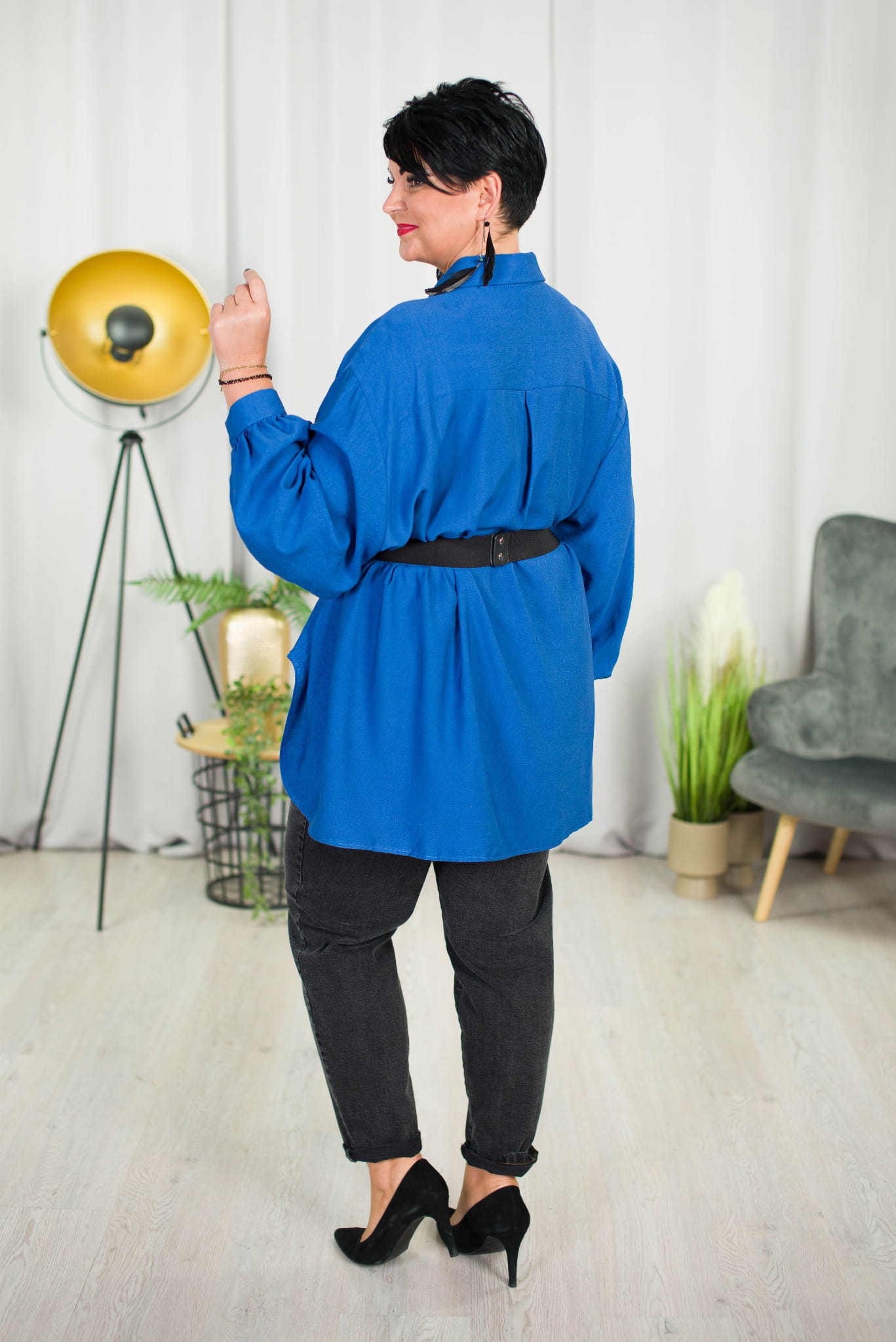 Lniana Koszula Oversize NASTI niebieska Plus Size 52/56