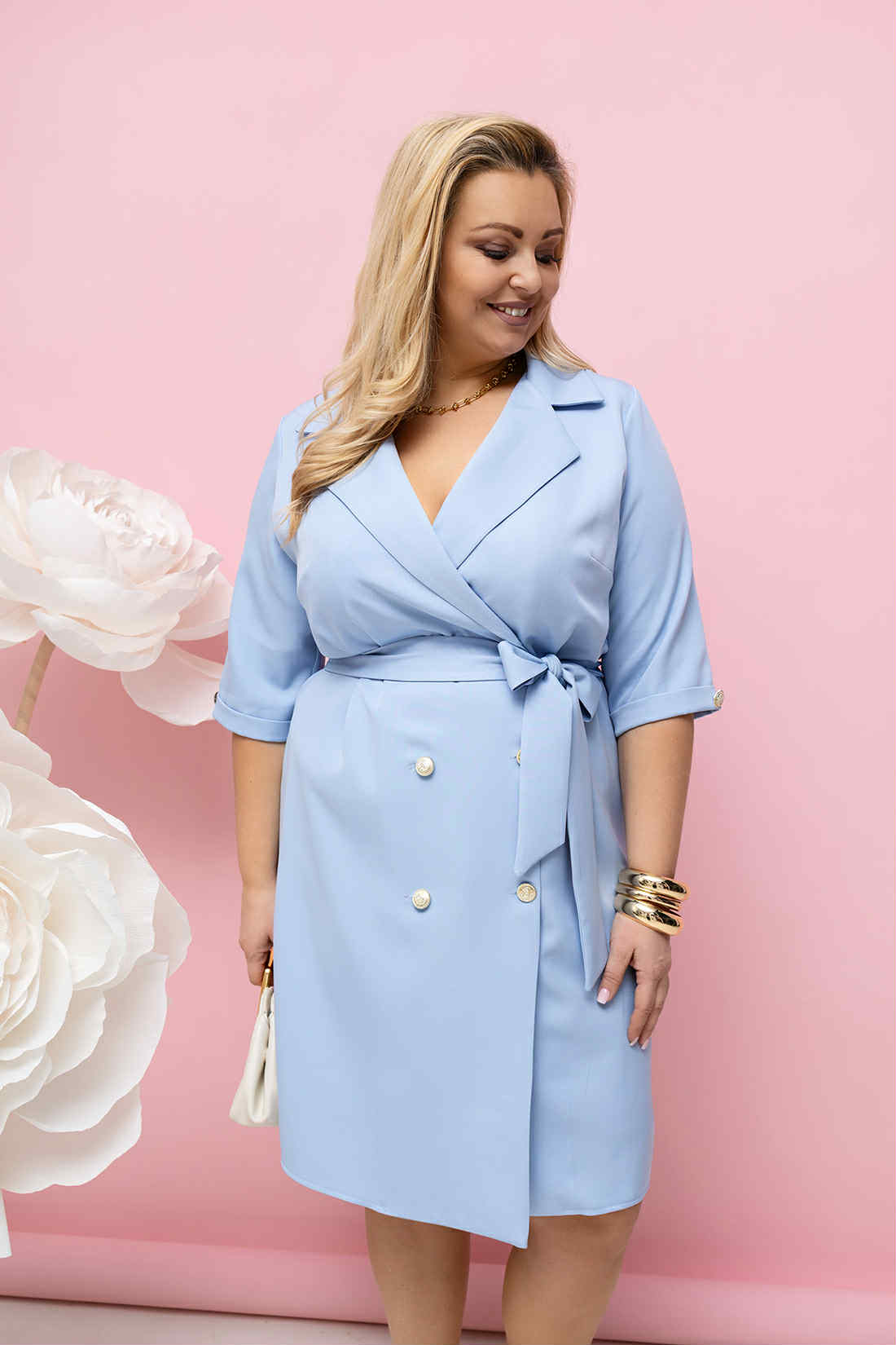 Marynarkowa Sukienka BRITNEY błękitna Plus Size 42-52