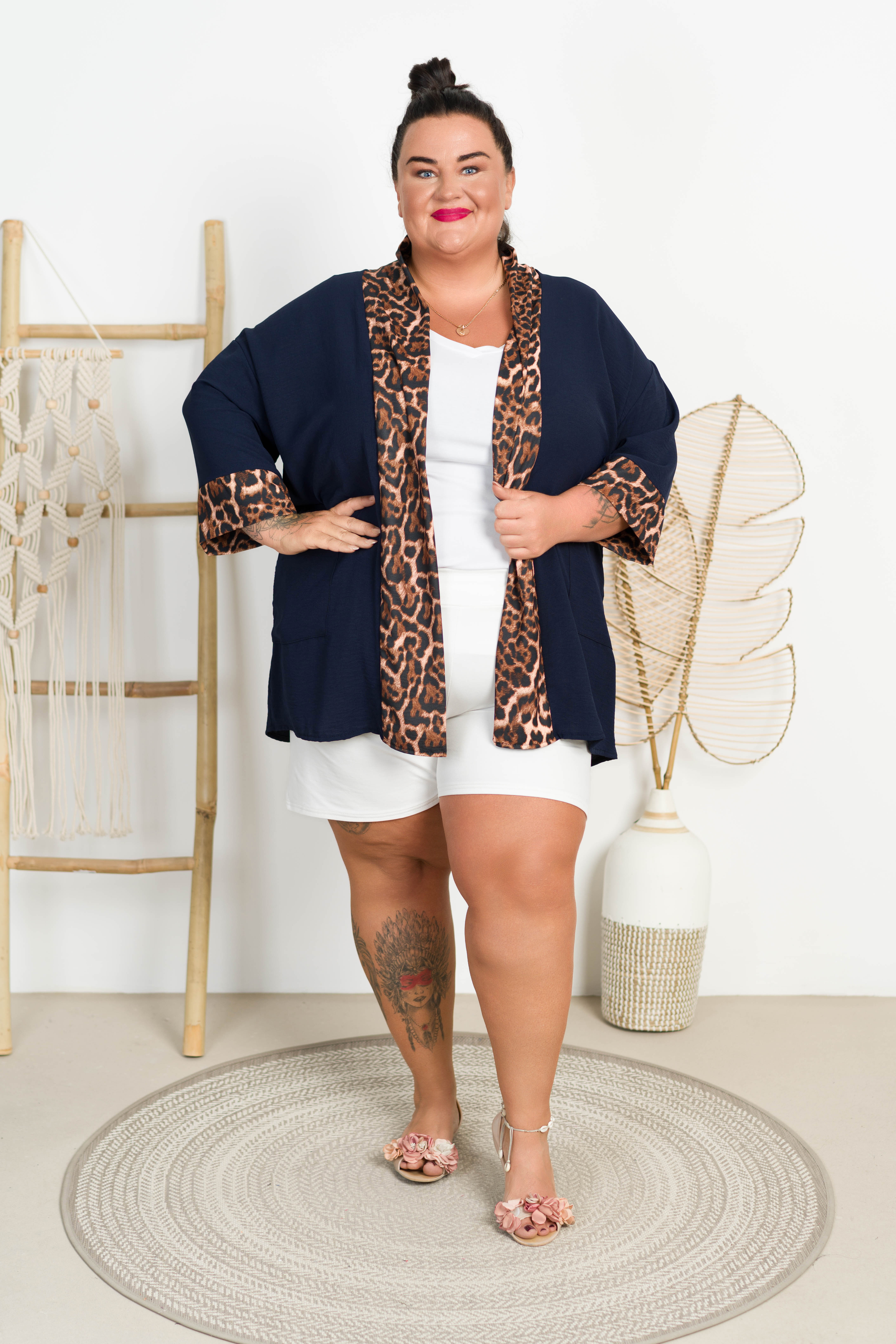 Narzutka z panterką MEDINE granatowa Plus Size 48/54