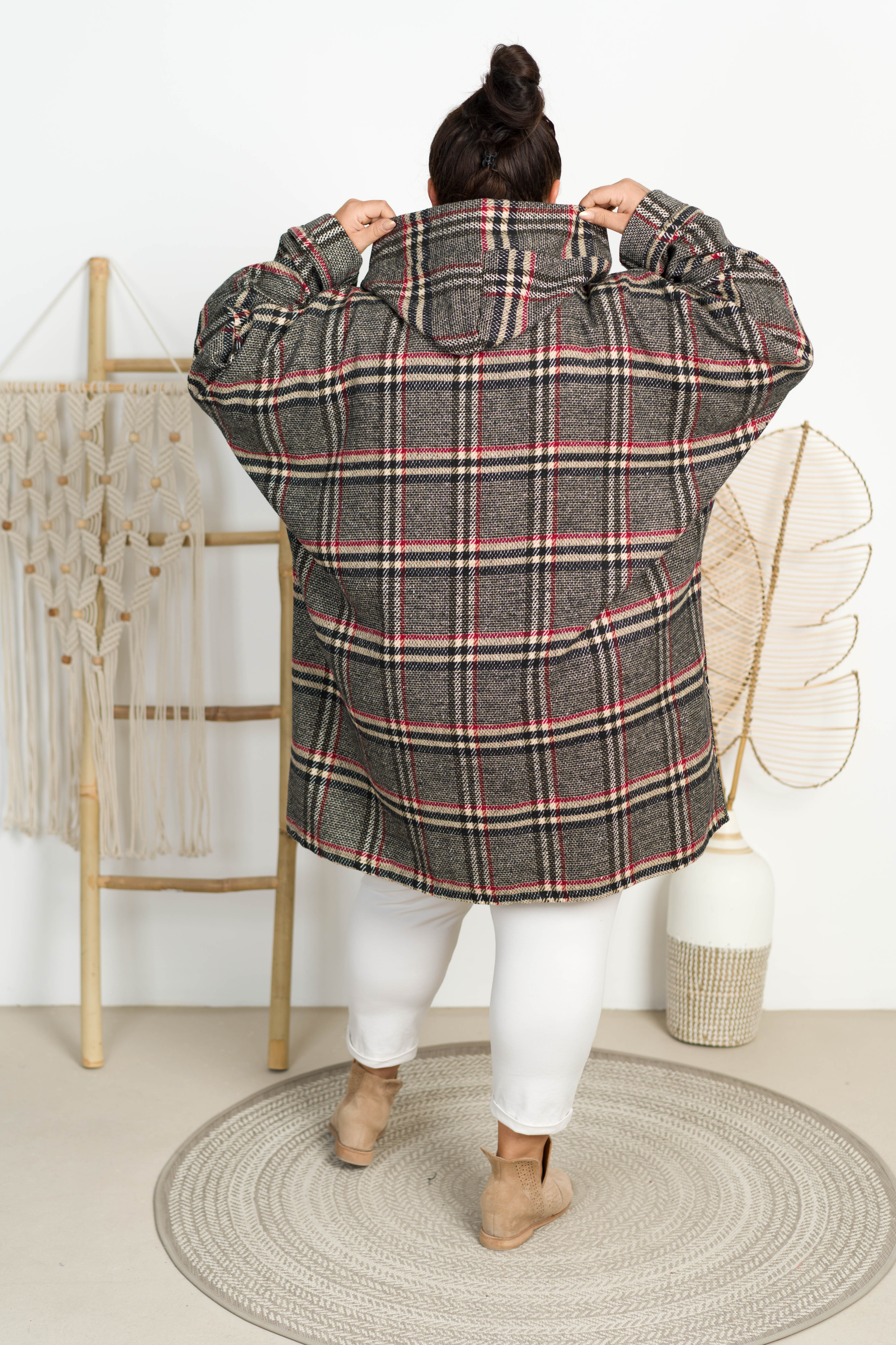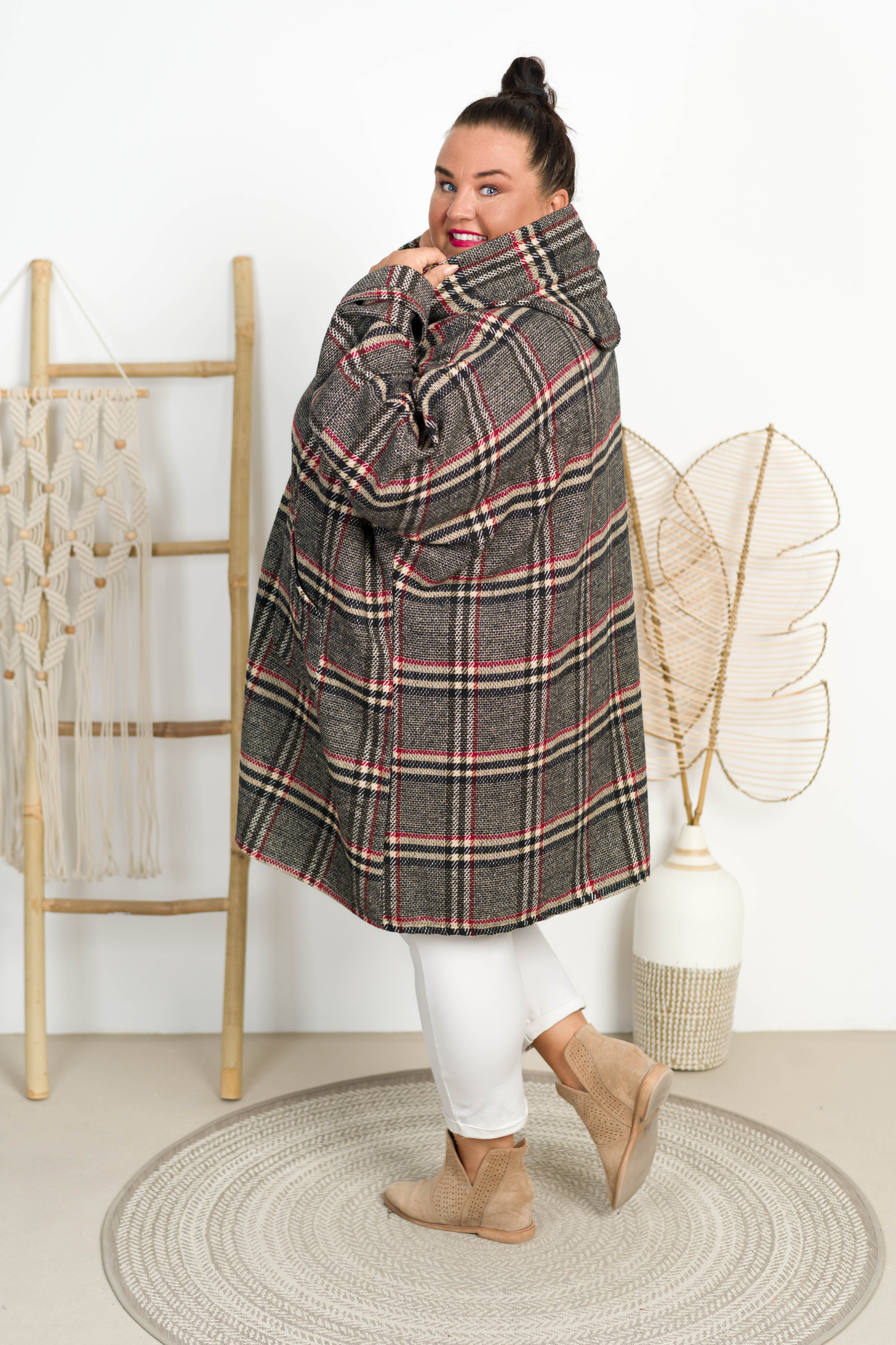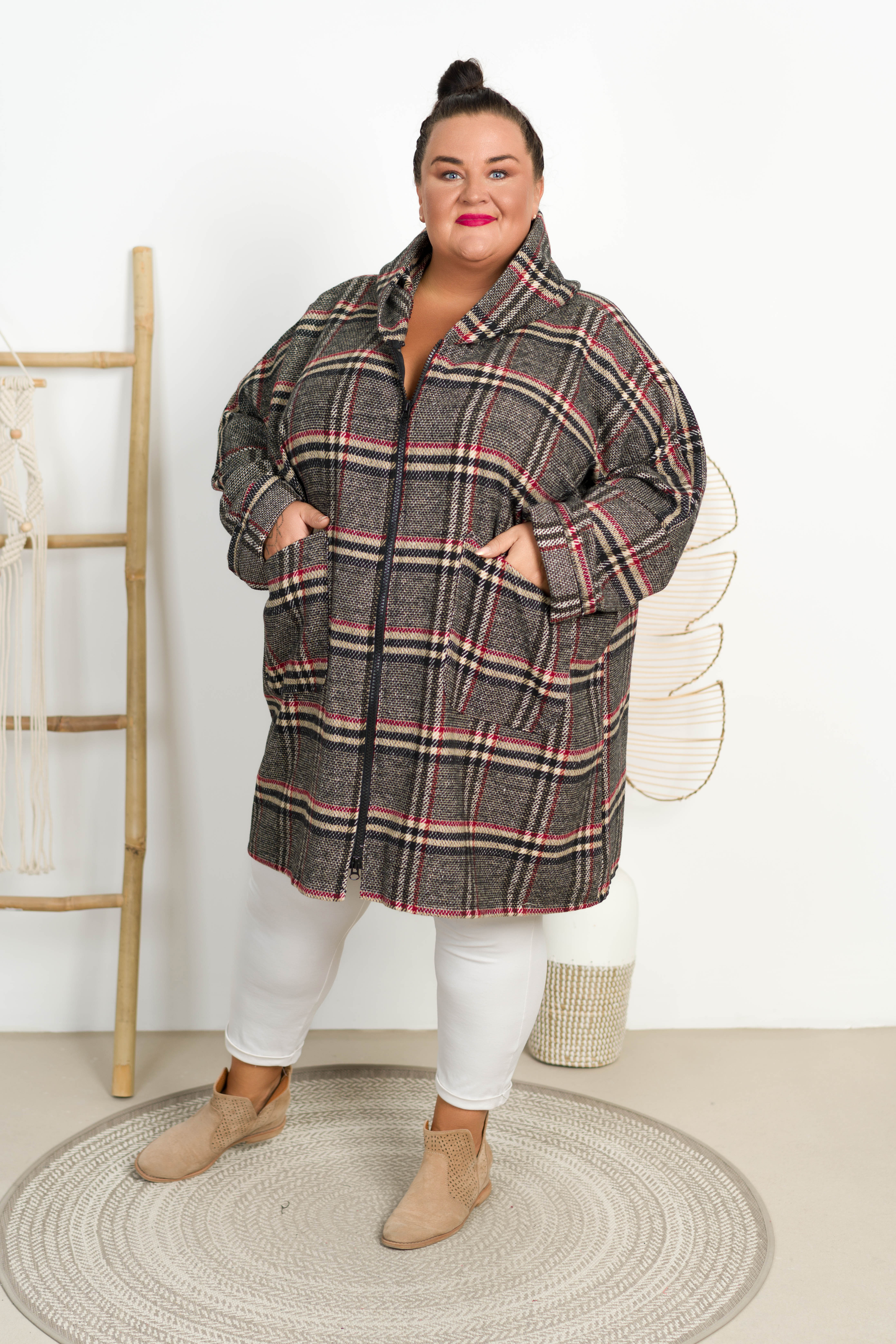 Oversizowy Płaszczyk z kapturem VENUS w kratę Plus Size 48-58