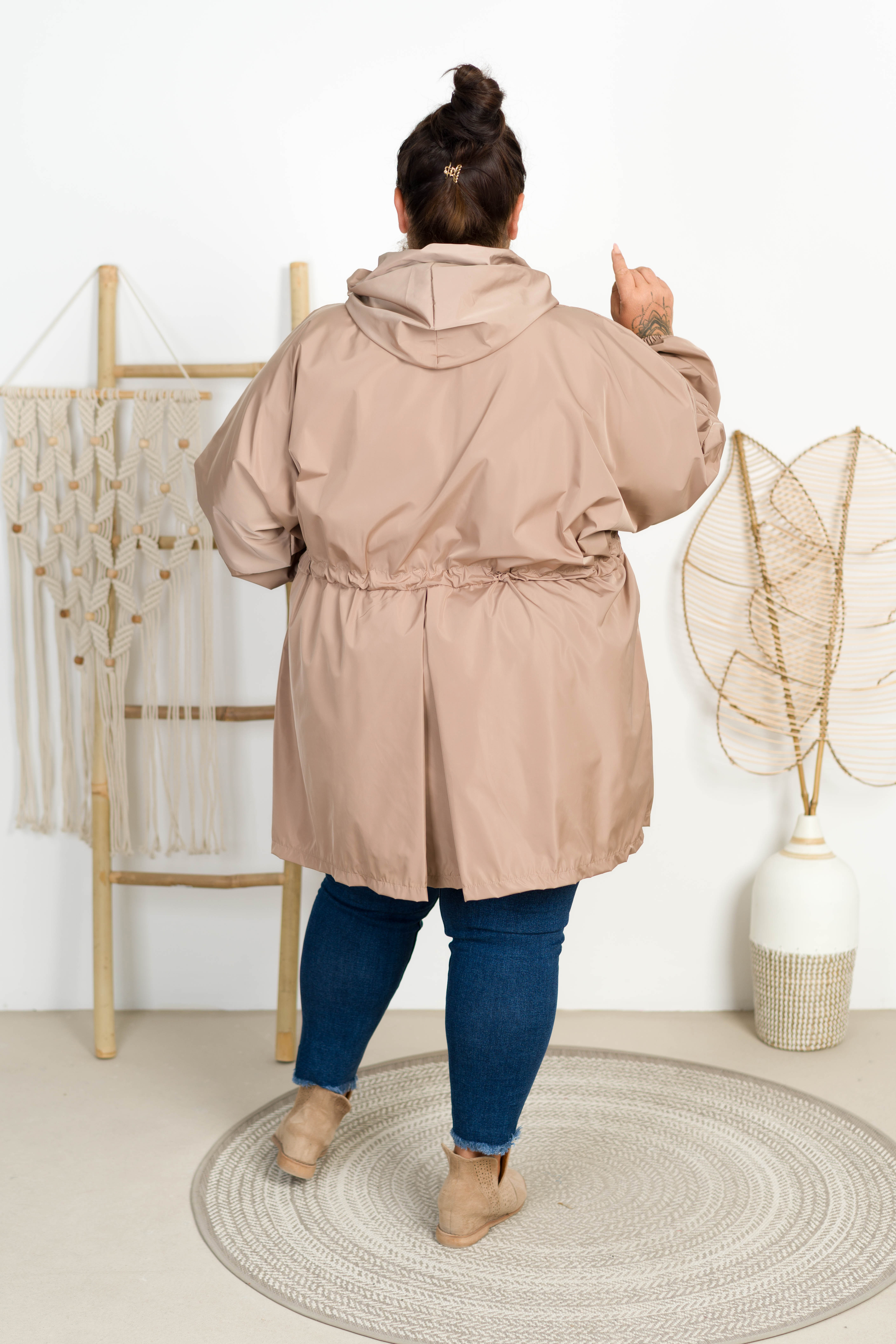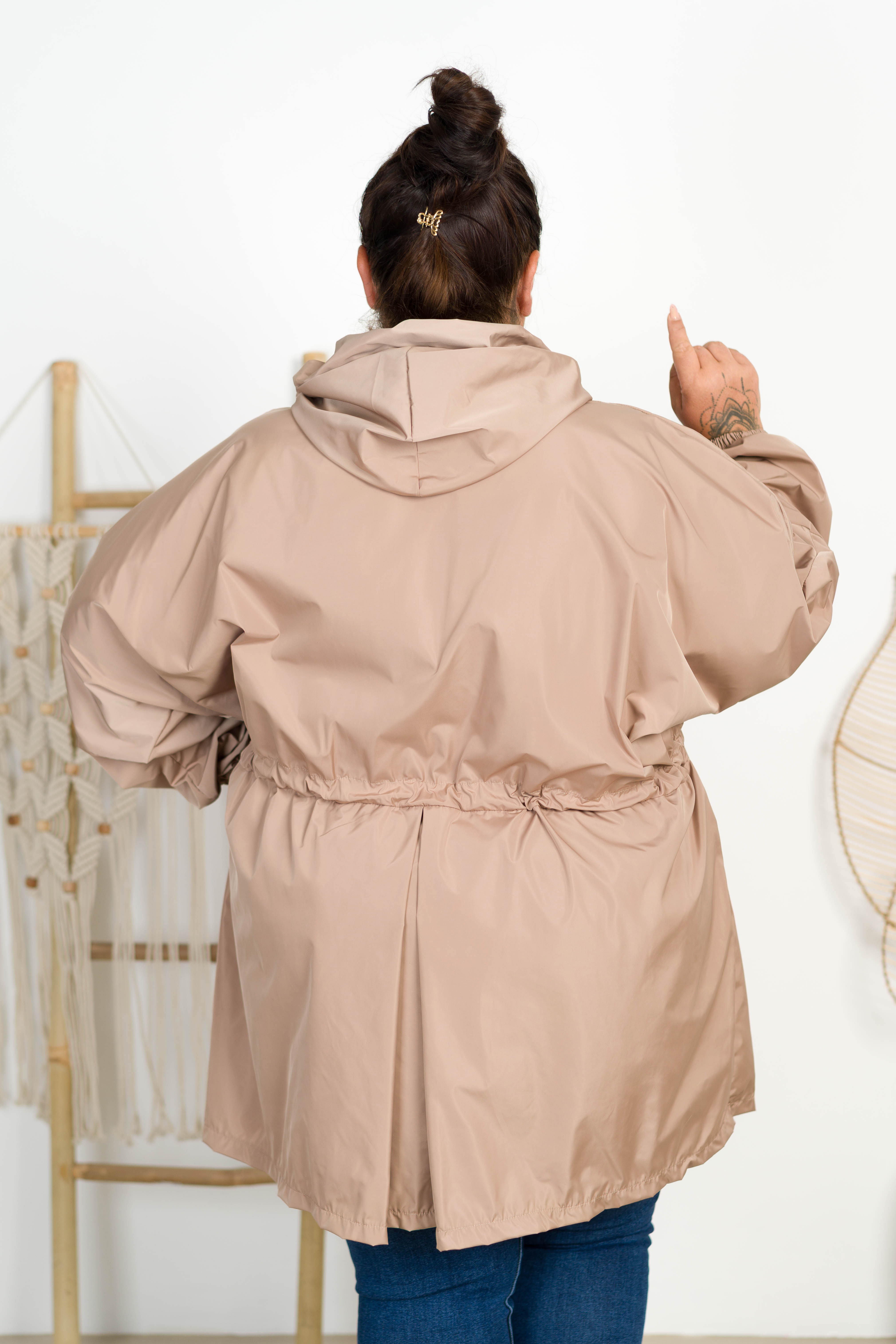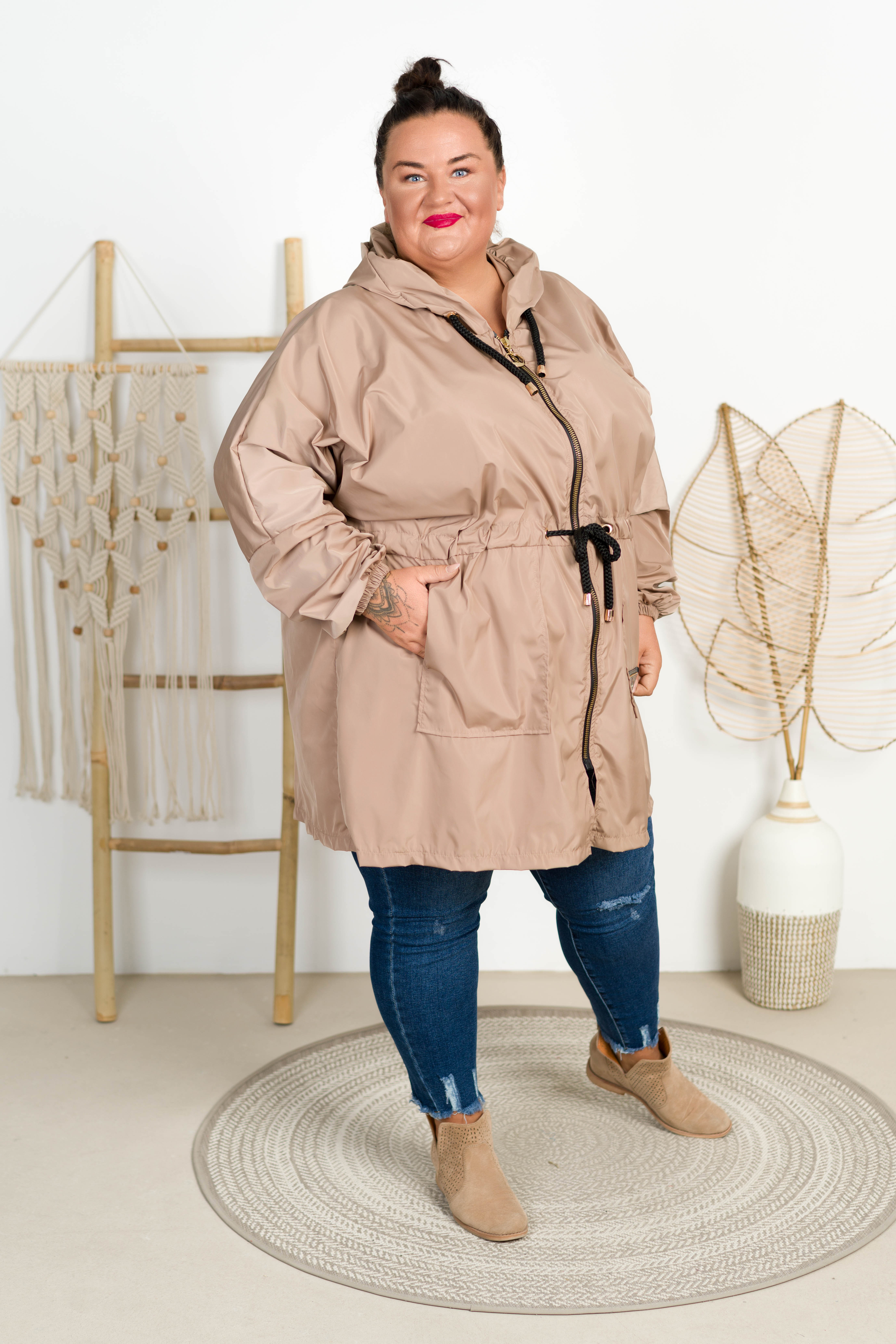 Parka Przeciwdeszczowa Oversize YOVI beżowa Plus Size 50-60