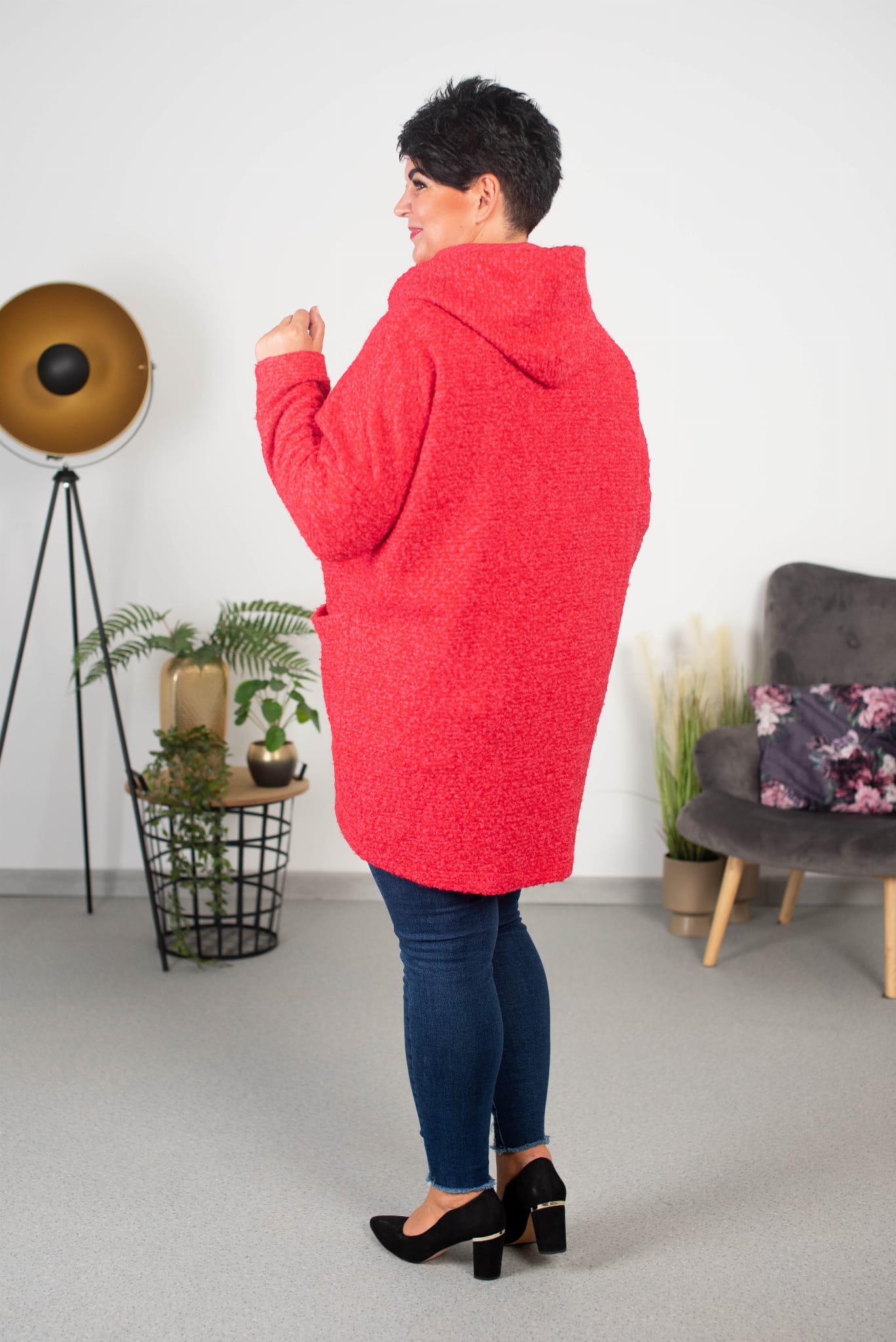 Oversizowy Płaszczyk z Bukli z dużym kapturem.