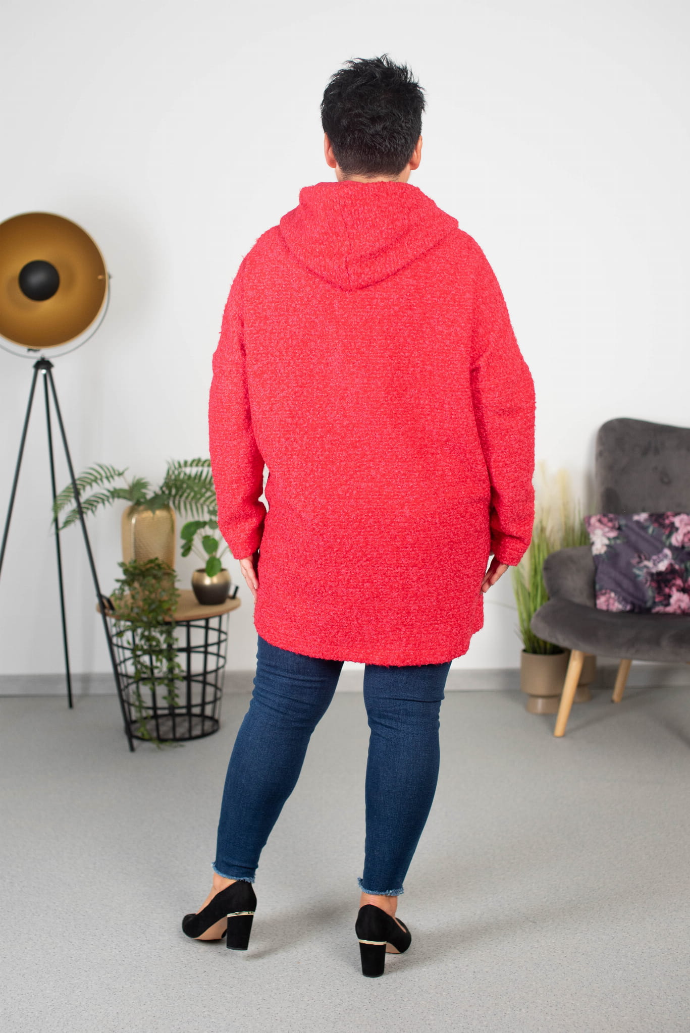 Lekki Płaszczyk Oversize z Bukli z dużym kapturem Plus Size.