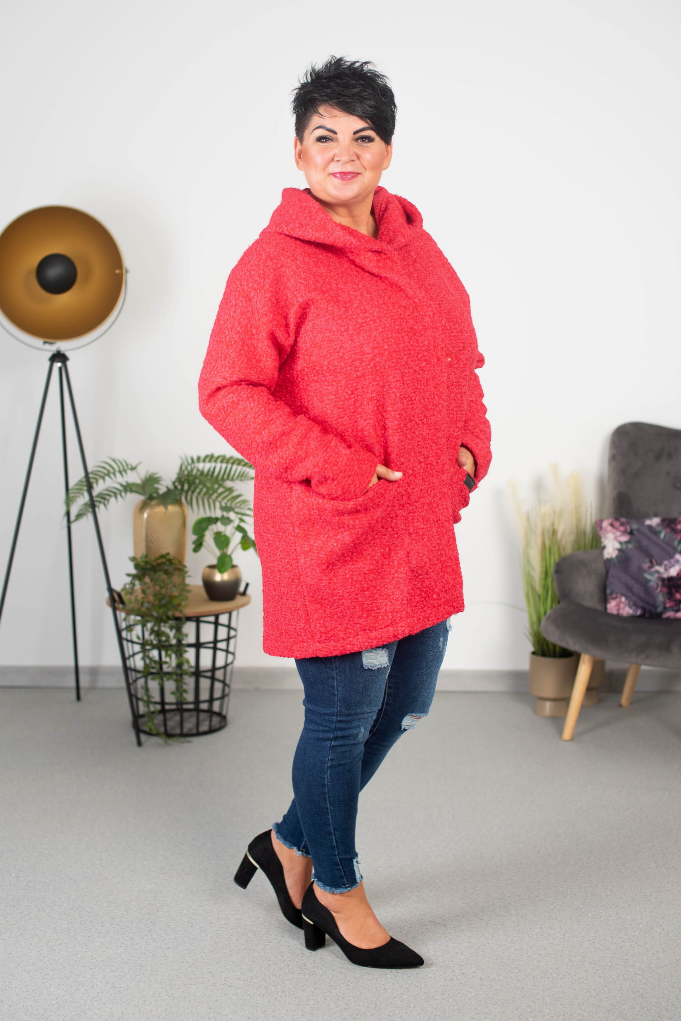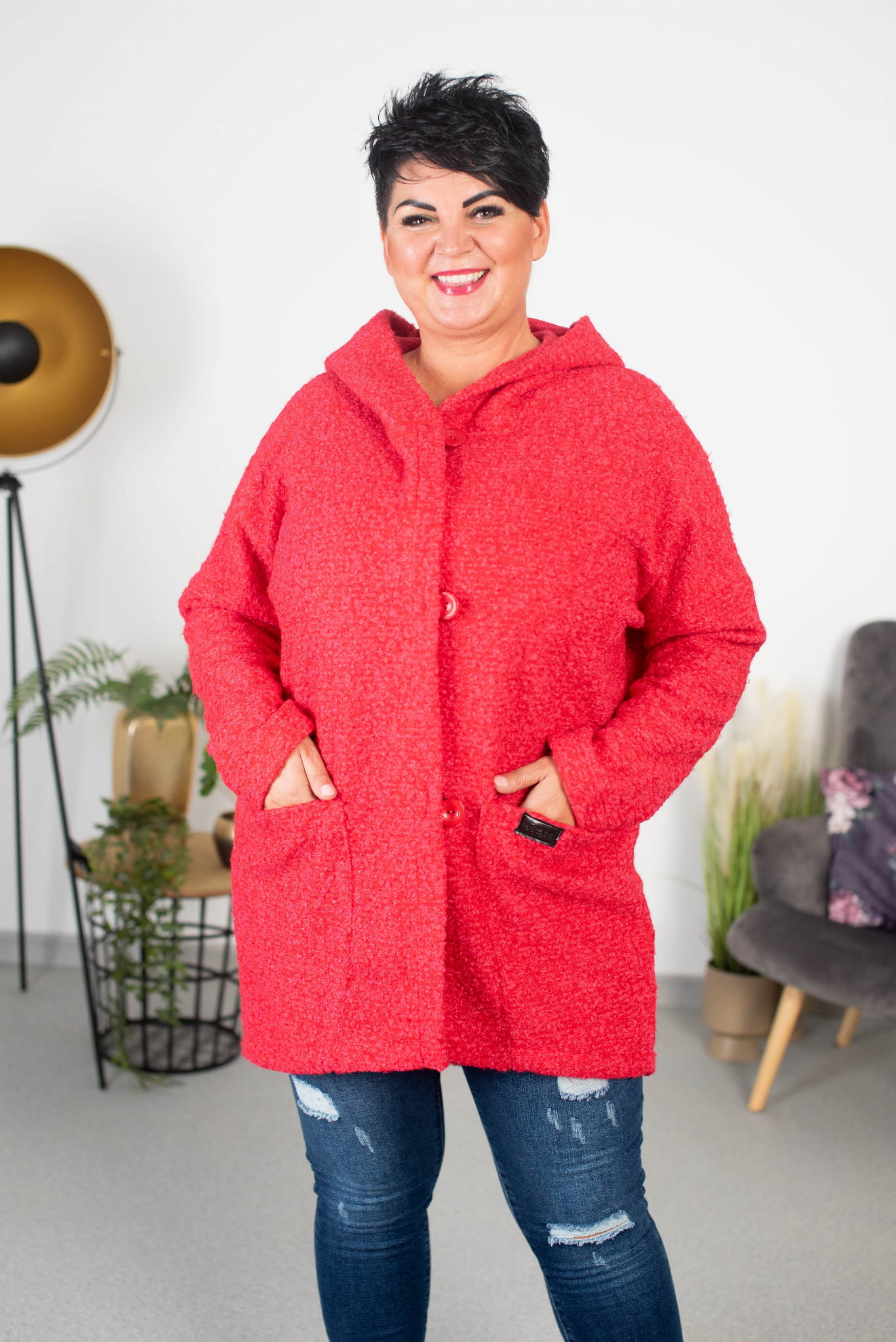 Płaszcz Oversize z Bukli malinowy Plus Size 44-56