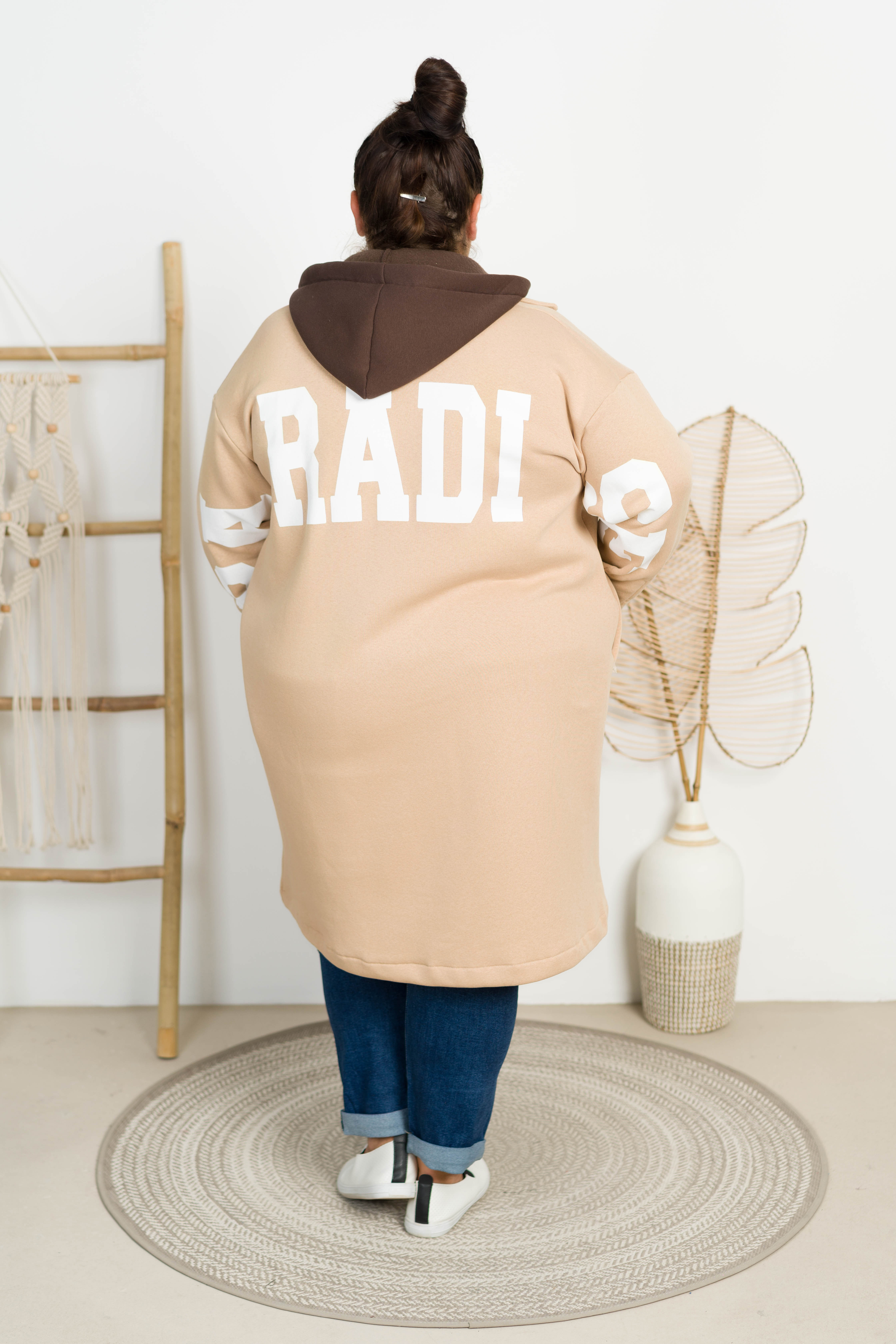 Płaszczyk dresowy z kapturem KENDIS beżowy Plus Size 48/54