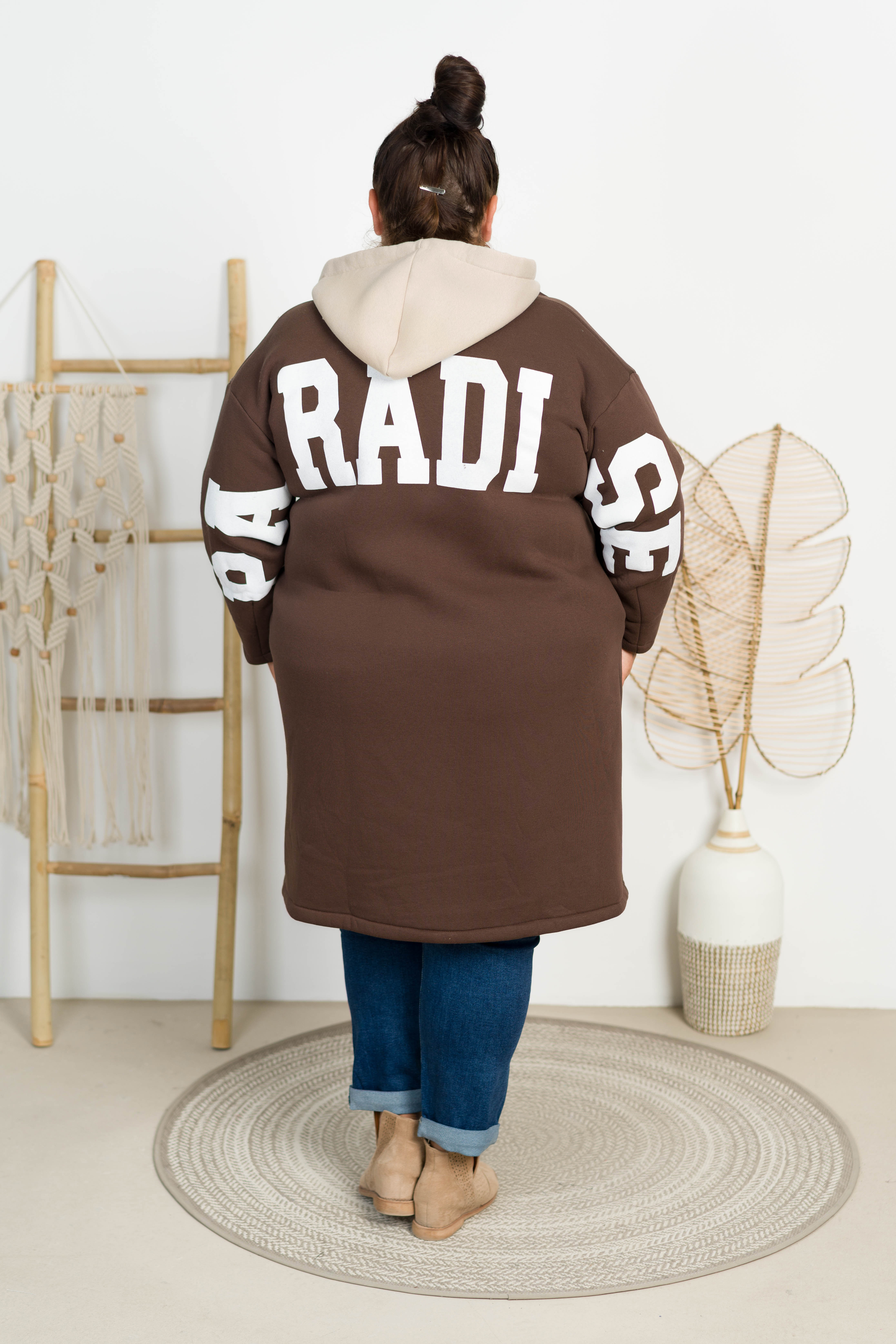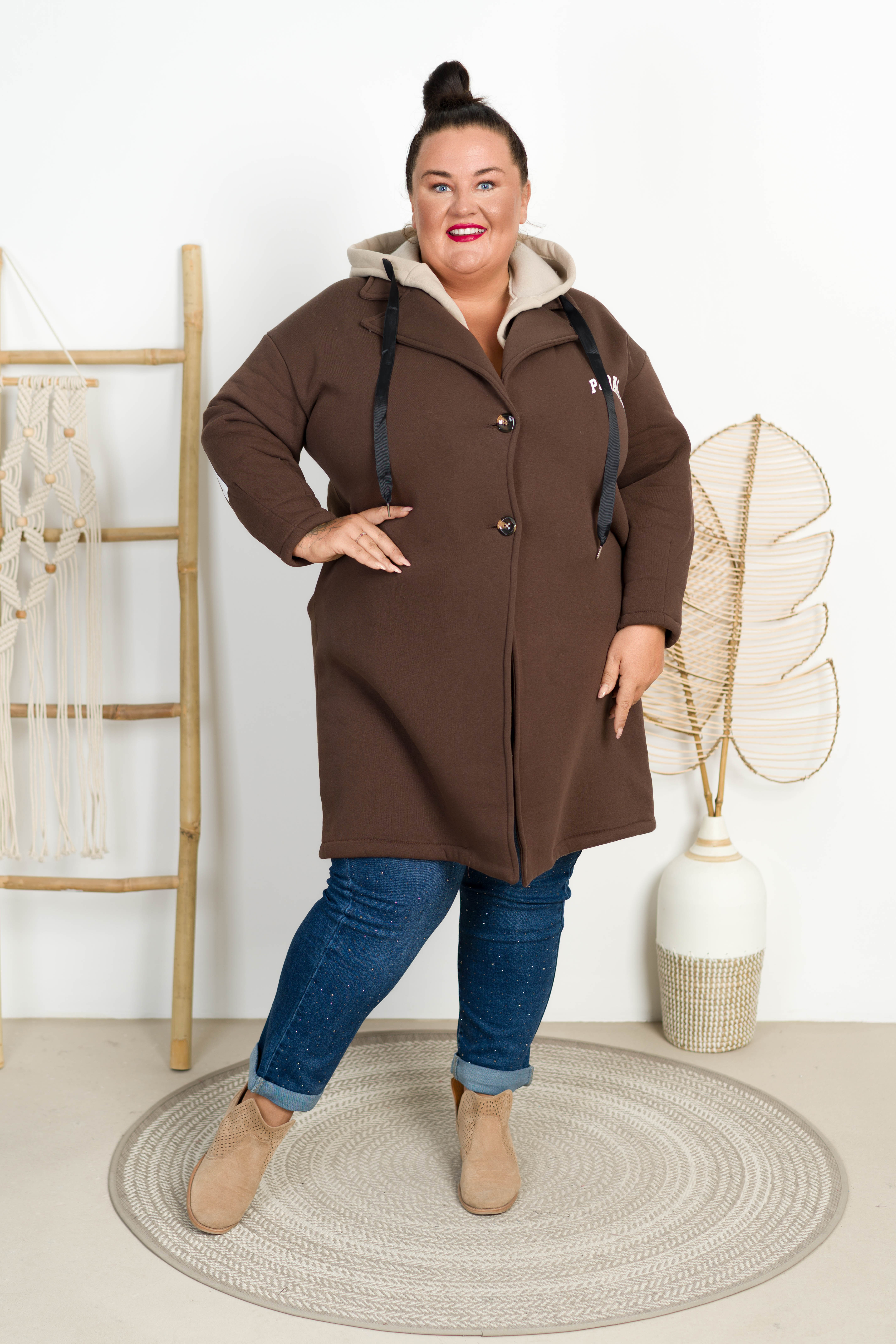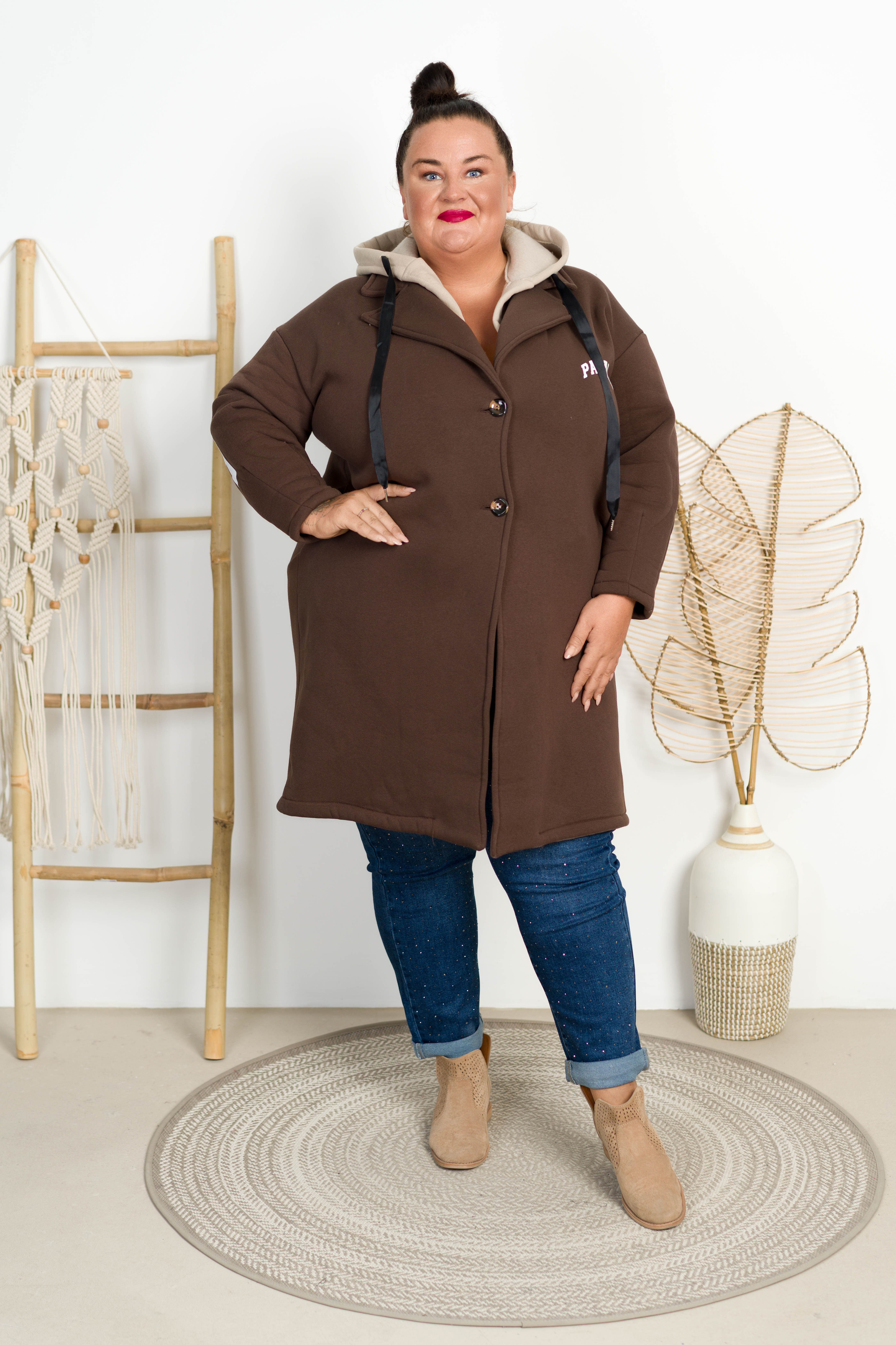 Płaszczyk dresowy z kapturem KENDIS czekoladowy Plus Size 48/54