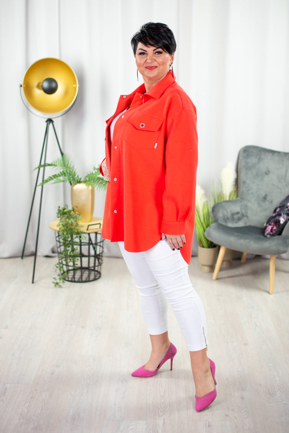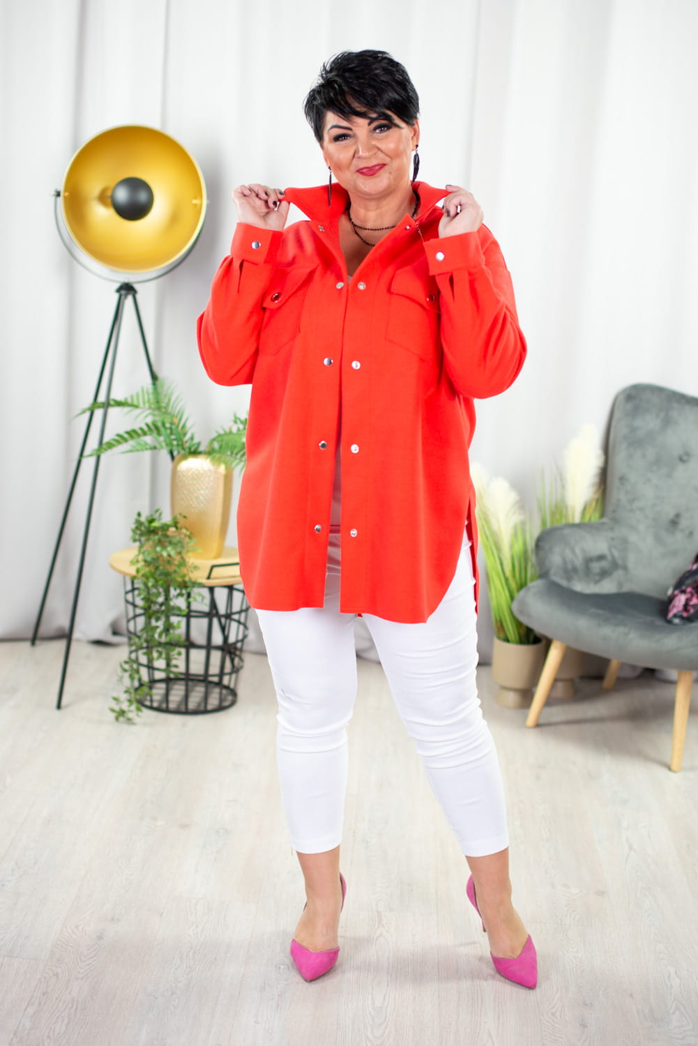 Płaszczyk wiosenny o kroju koszuli MARIKA pomarańcz Plus Size 42-50