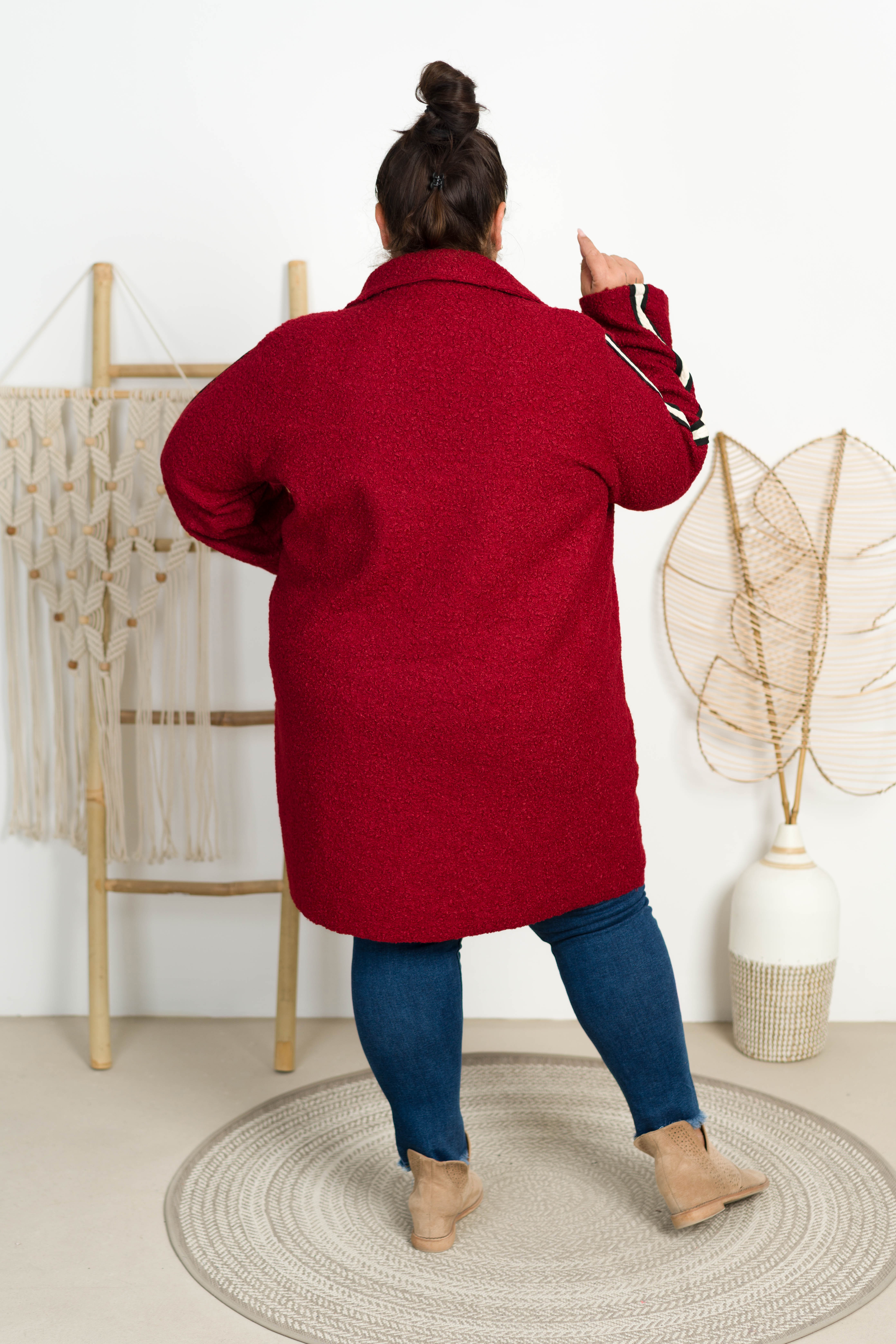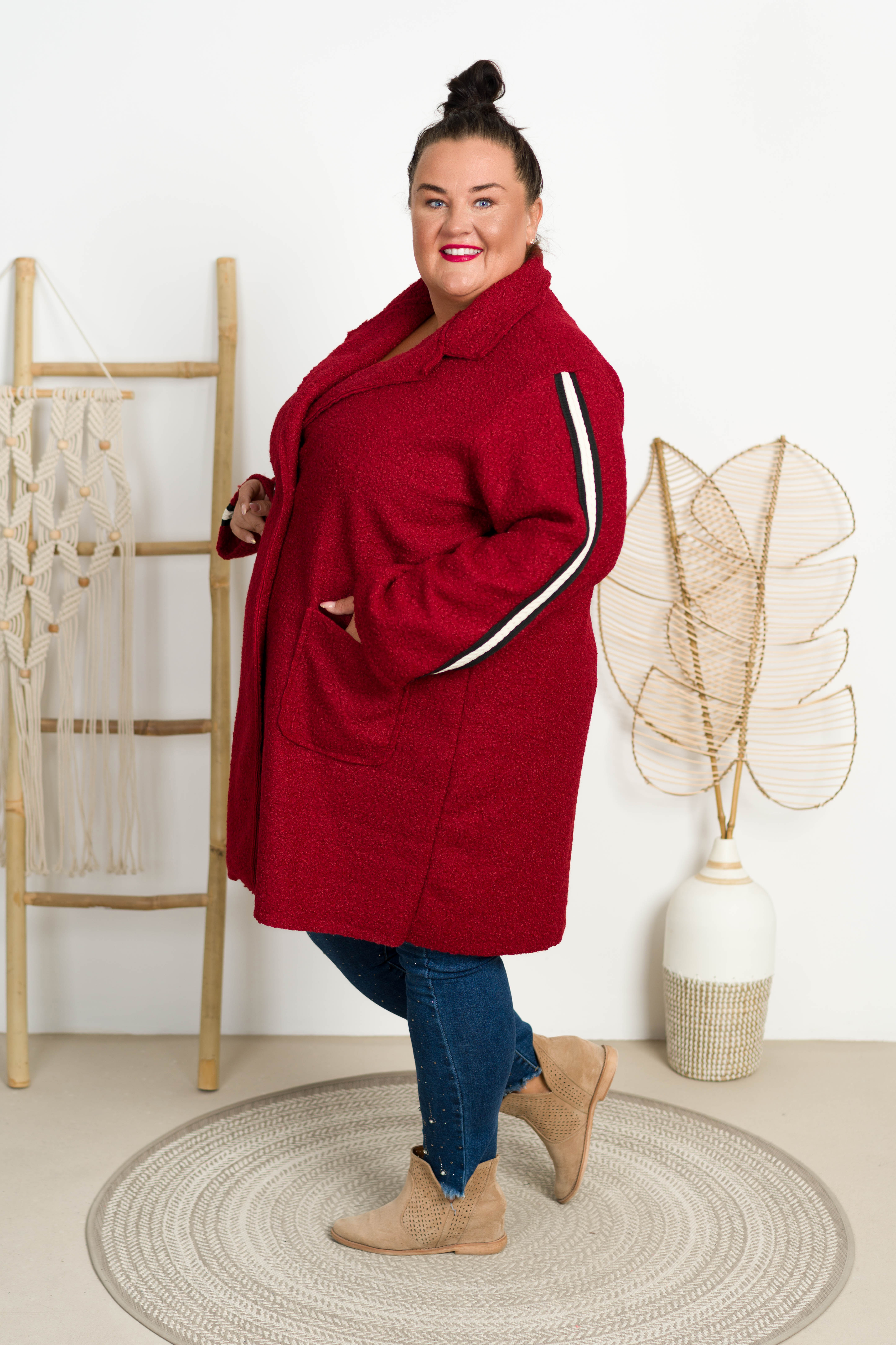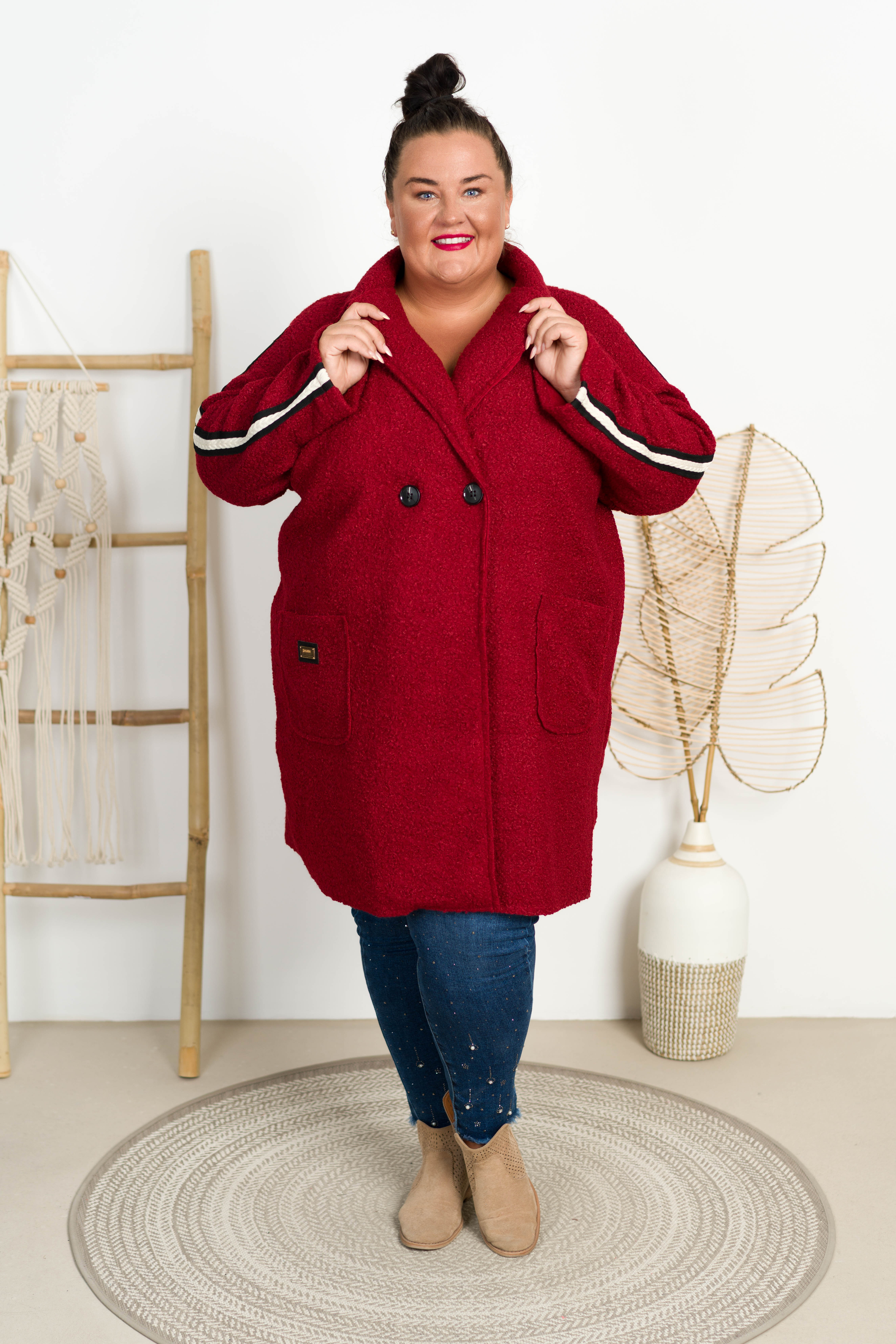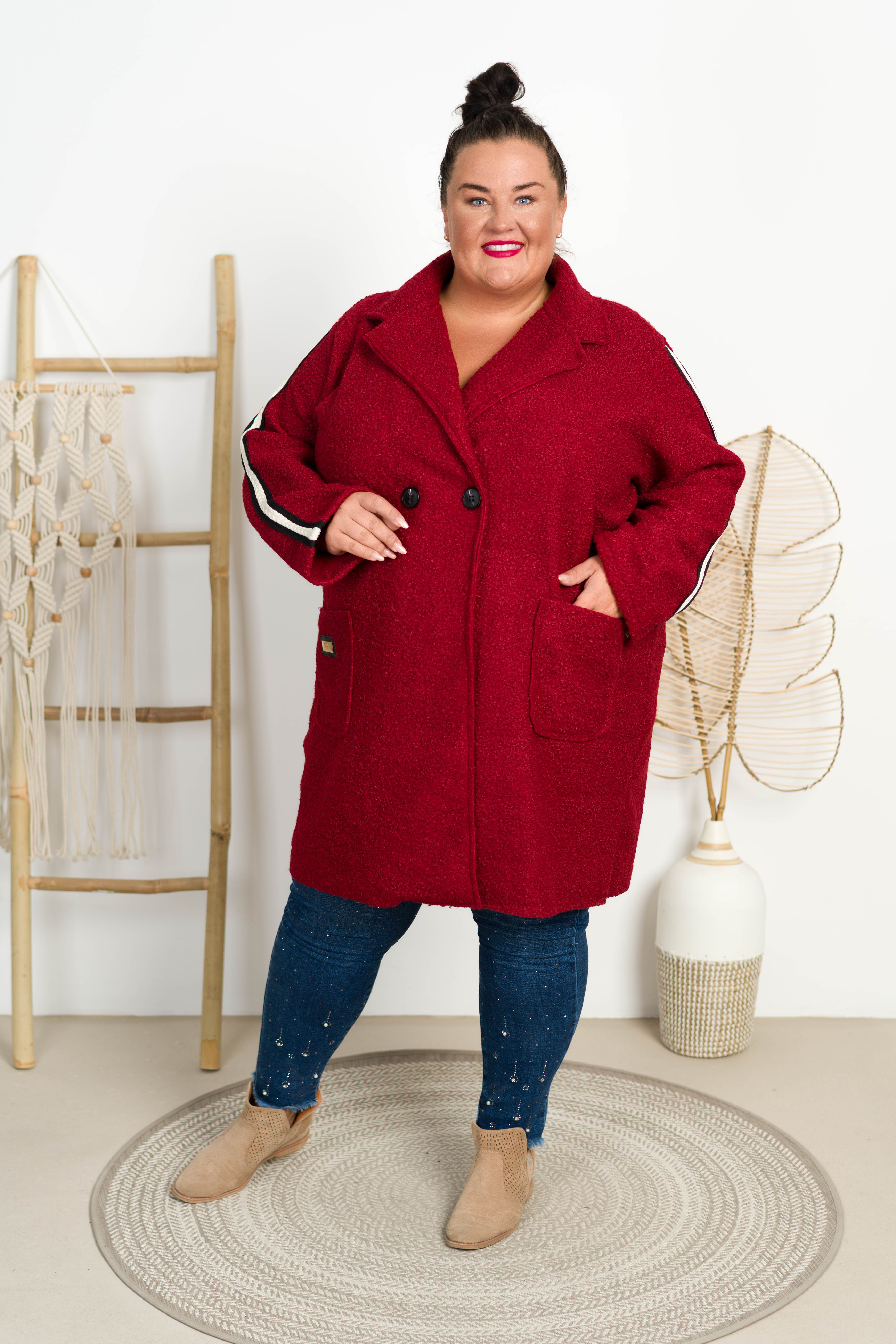 Płaszczyk z Bukli na Jesień DASTIN bordowy Plus Size 50/54
