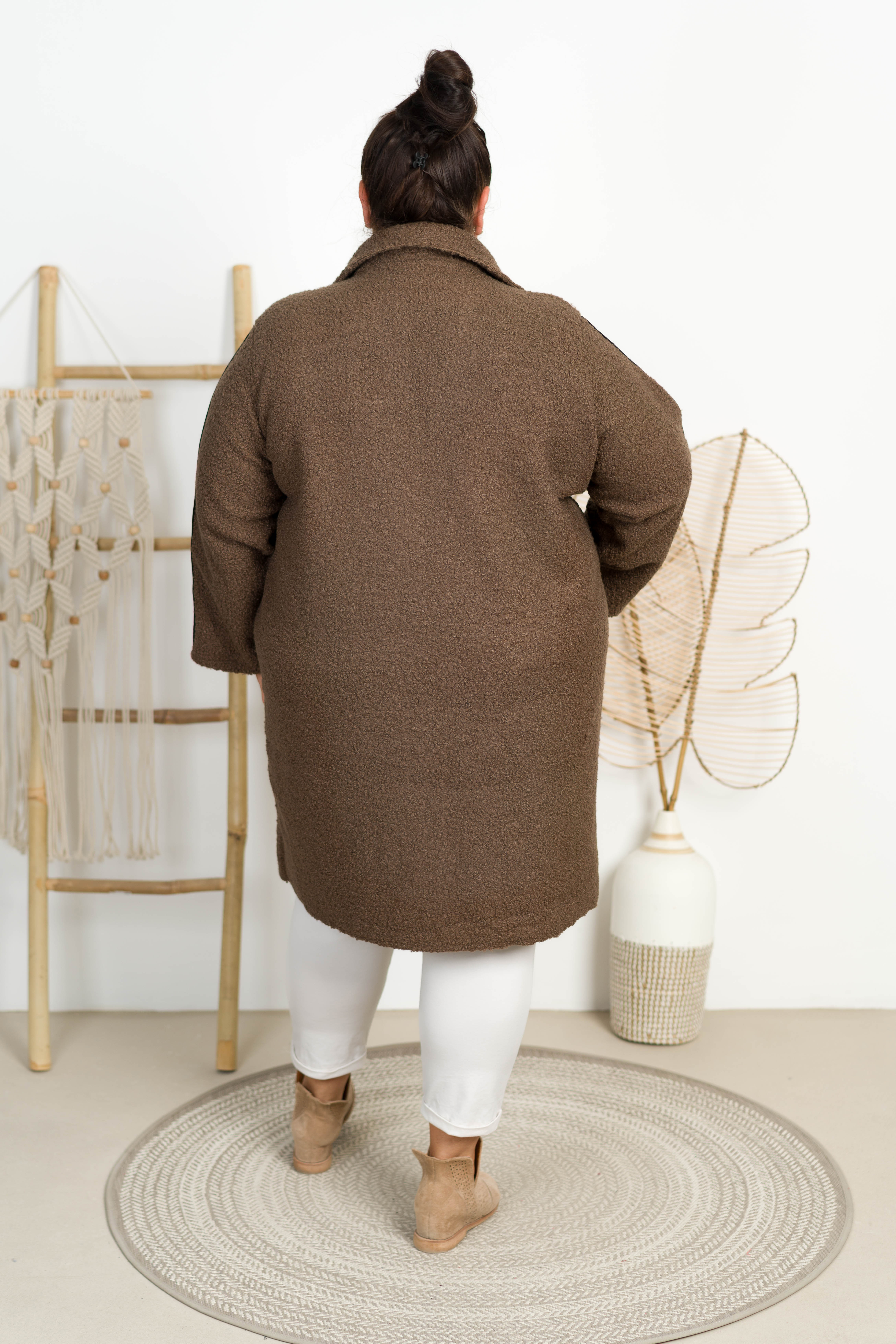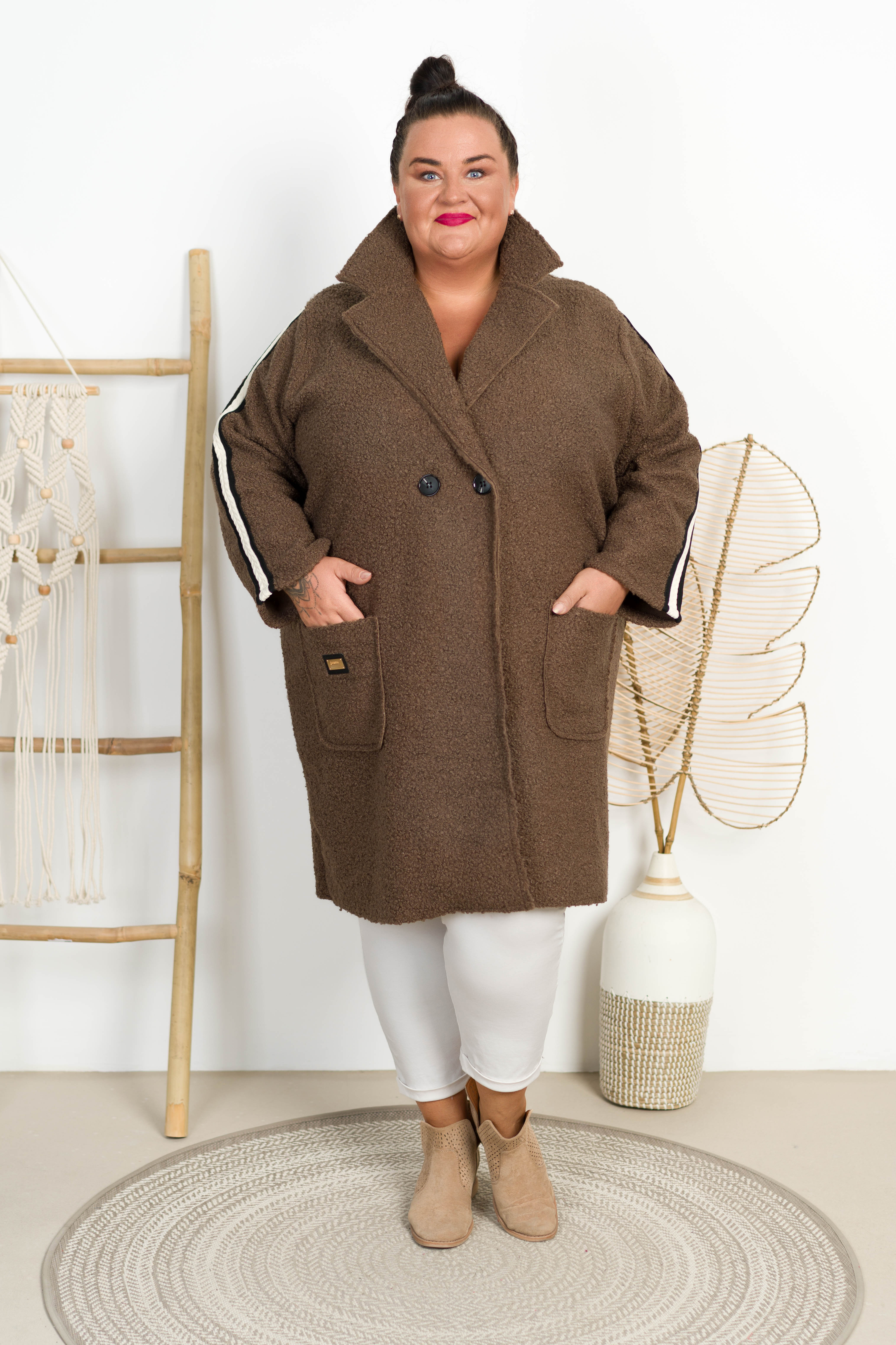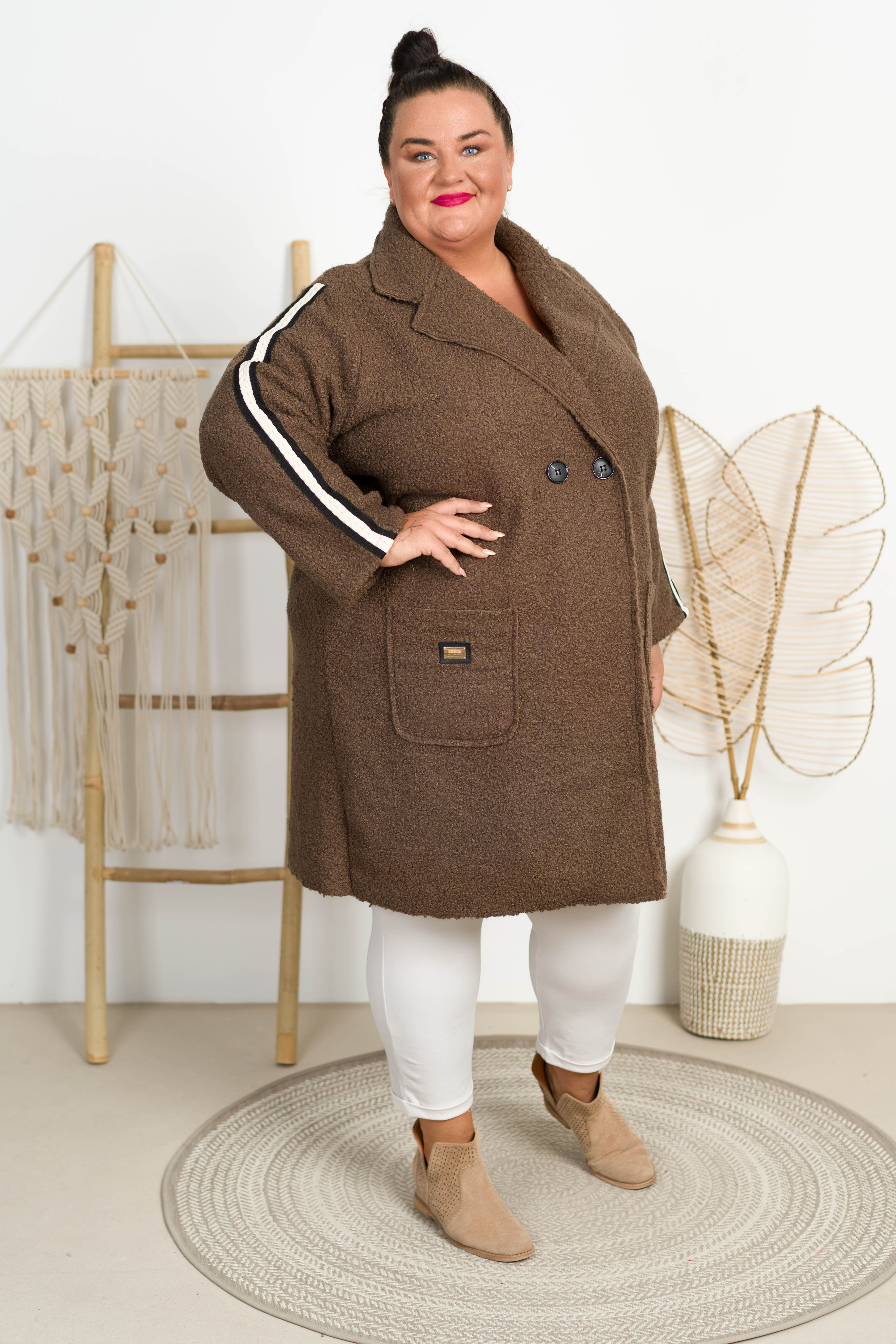 Płaszczyk z Bukli na Jesień DASTIN czekoladowy Plus Size 50/54