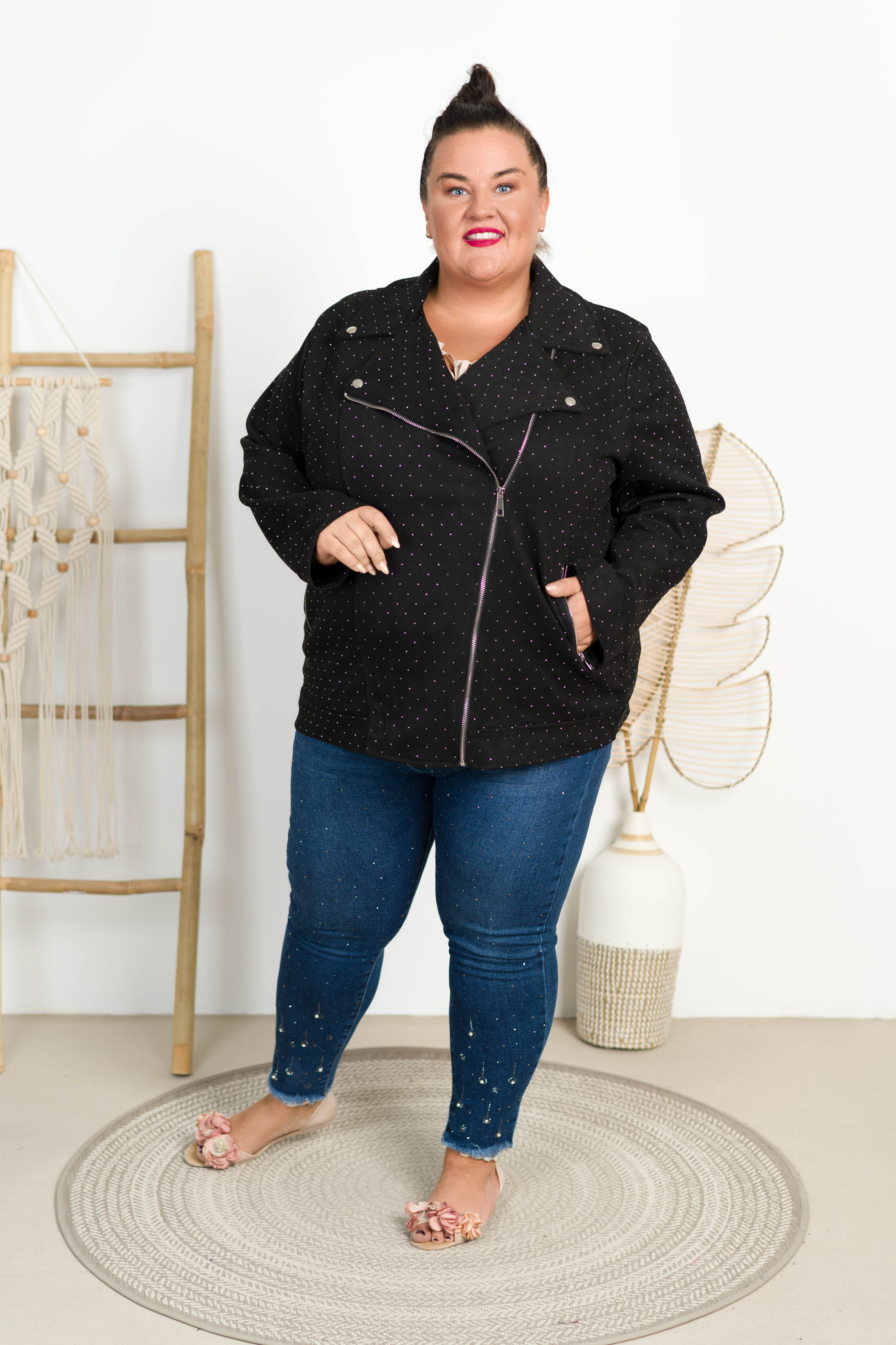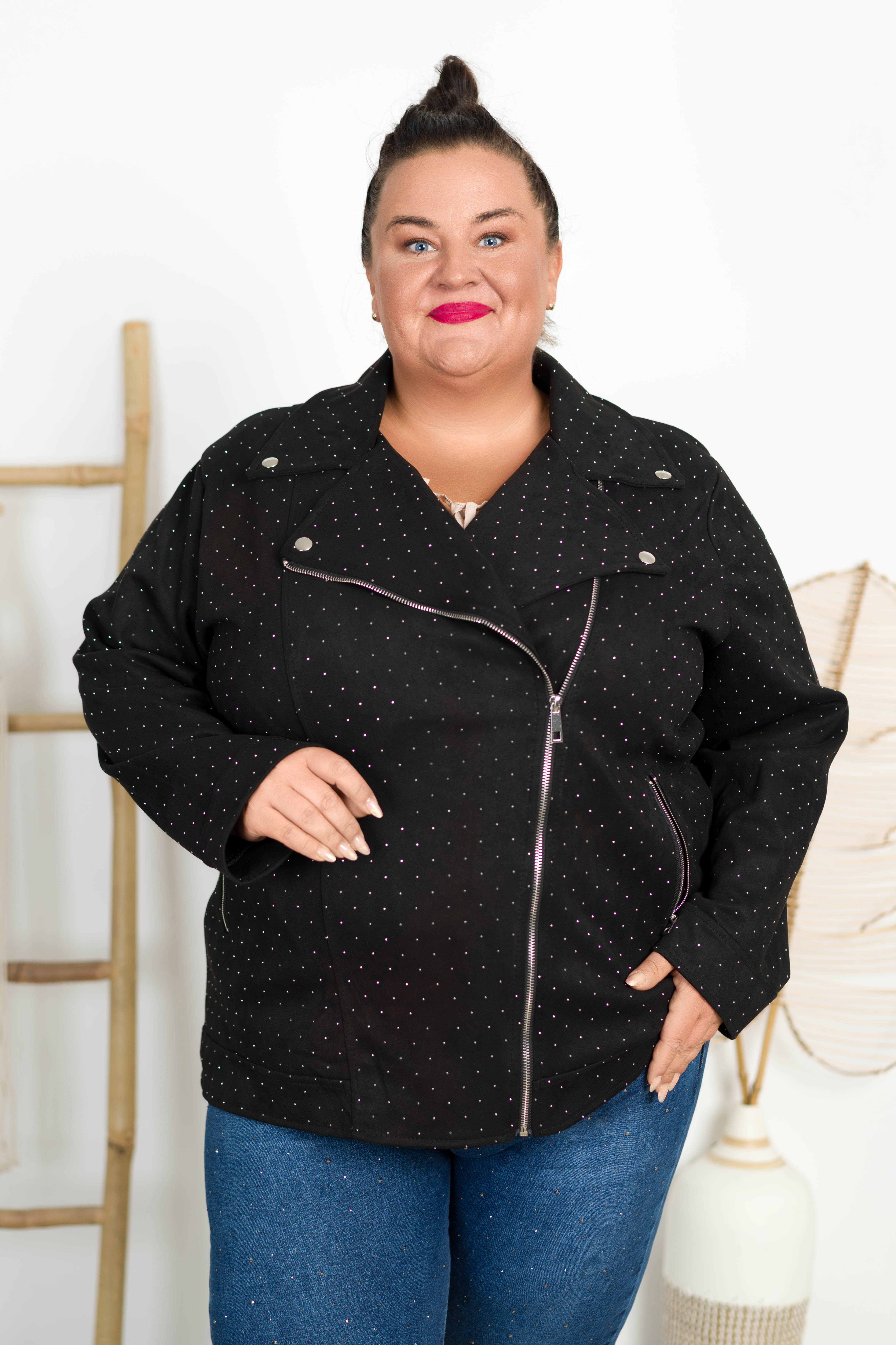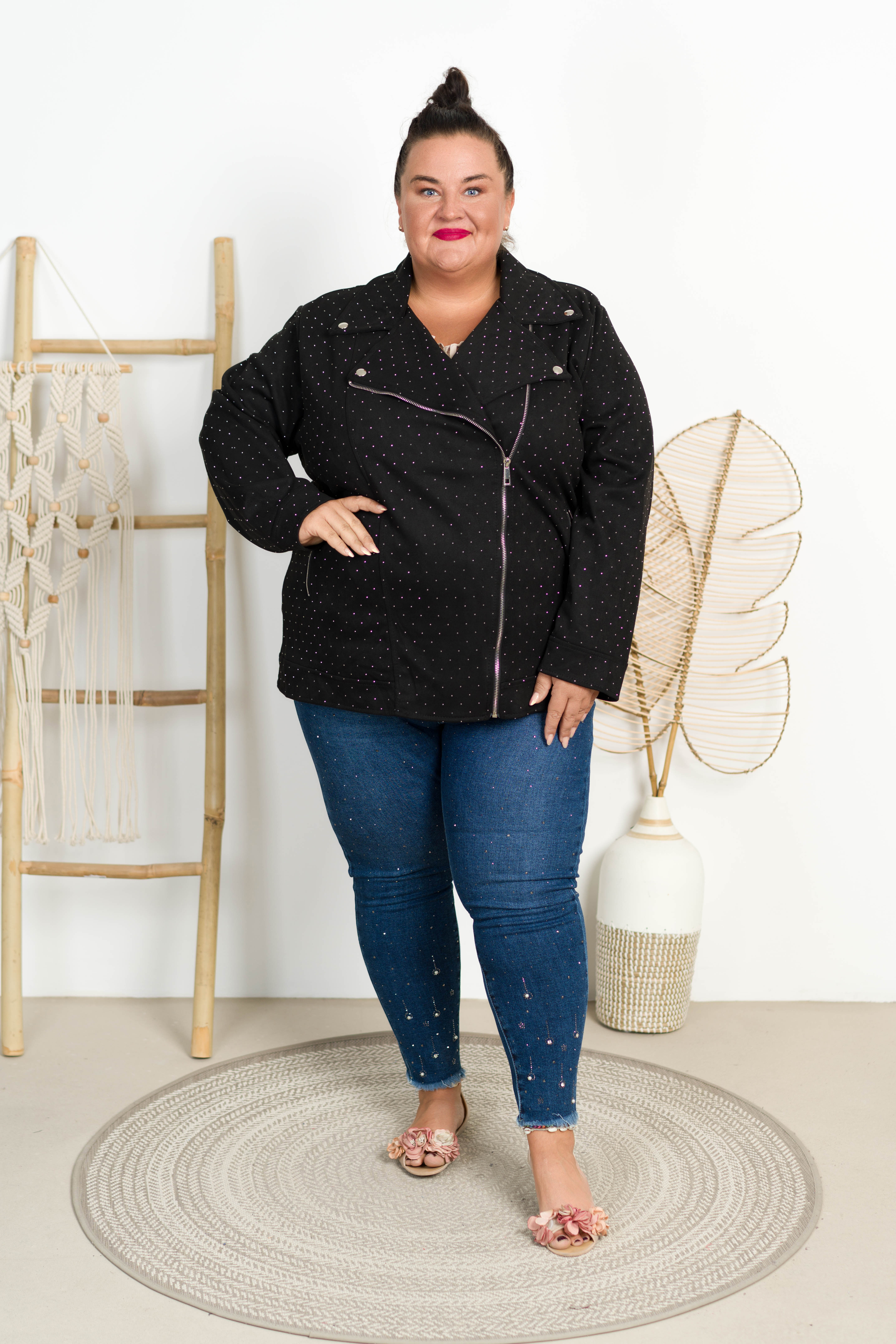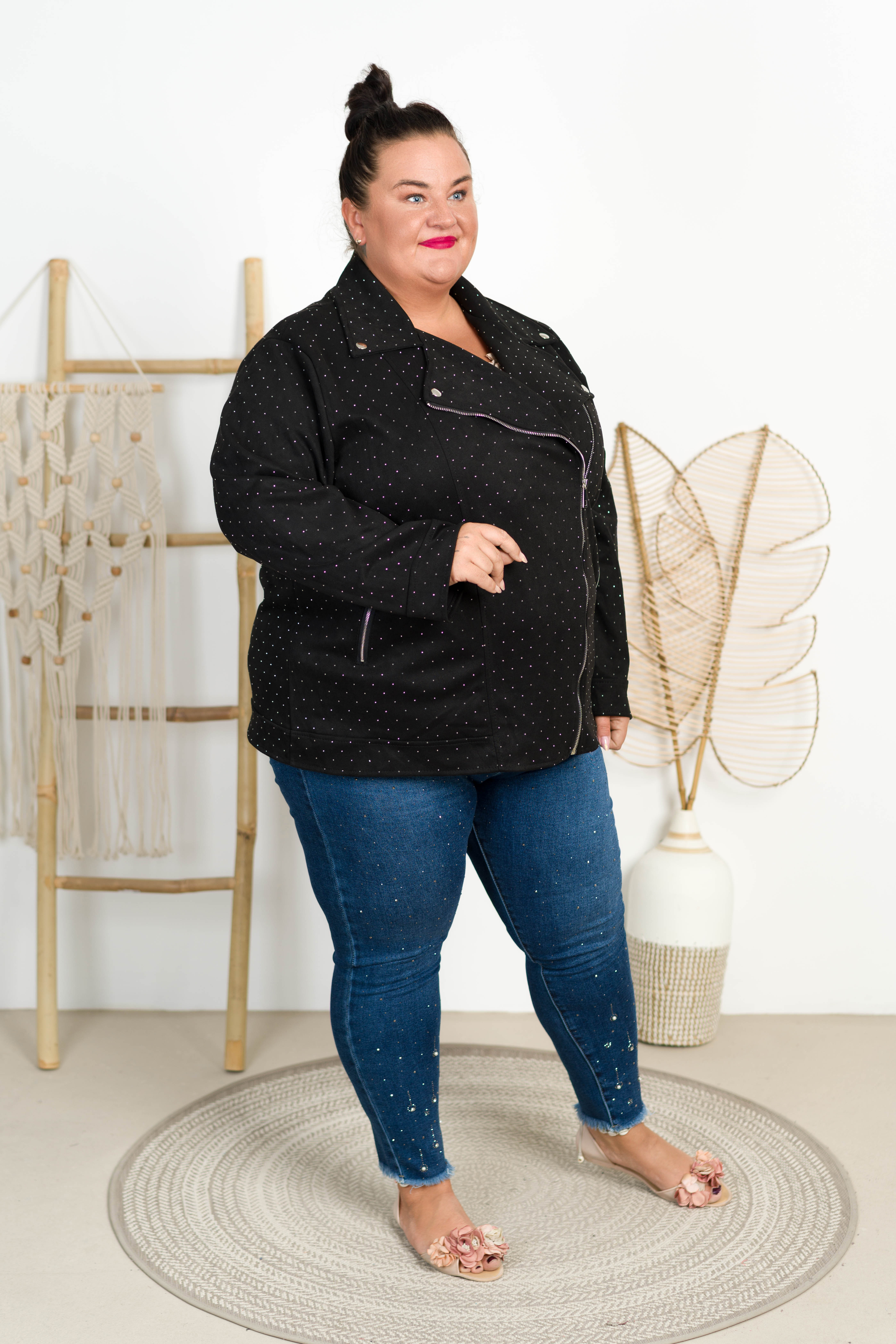 Ramoneska z Zamszu AZALEA z dżetami czarna Plus Size 50/56