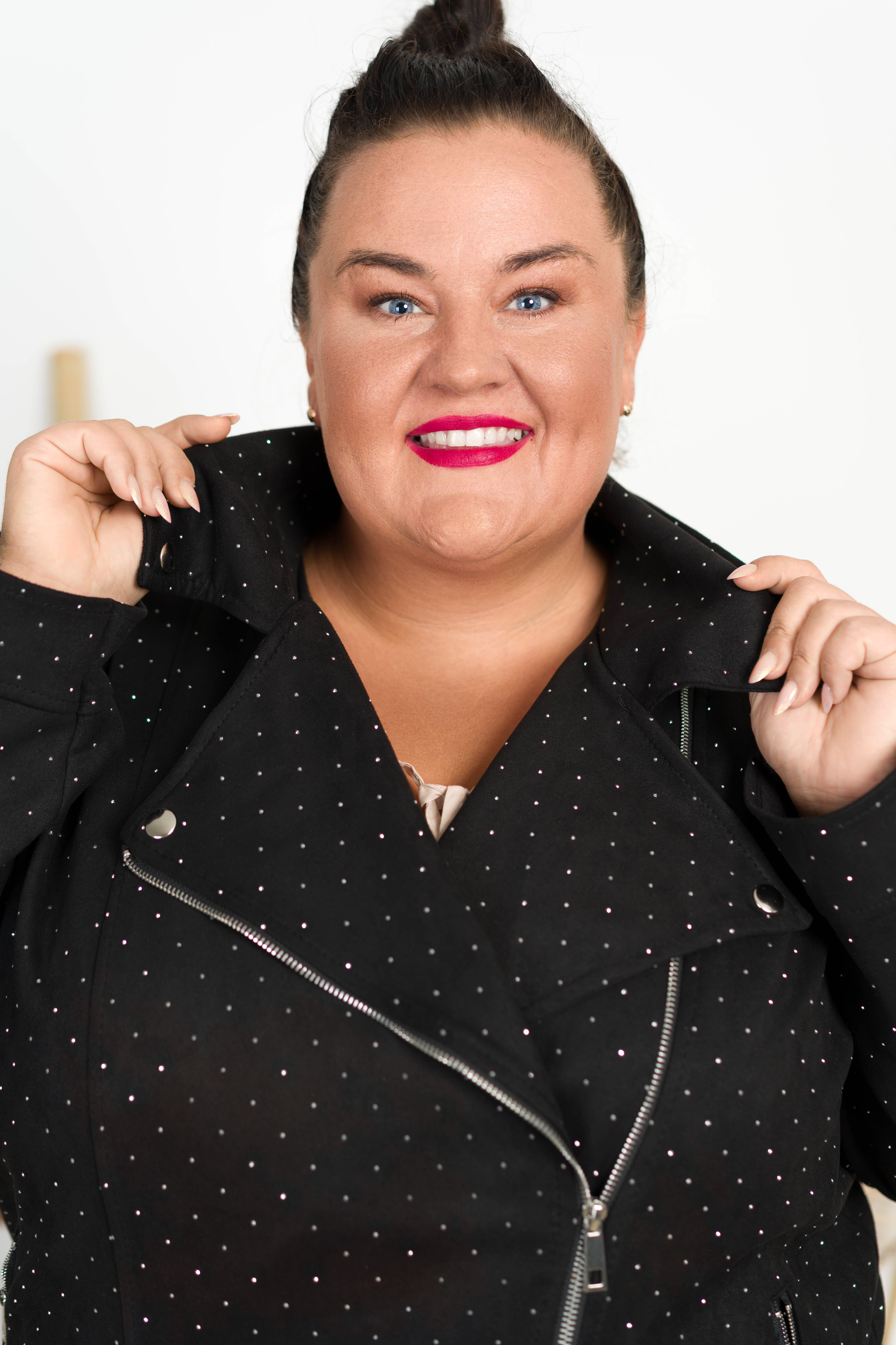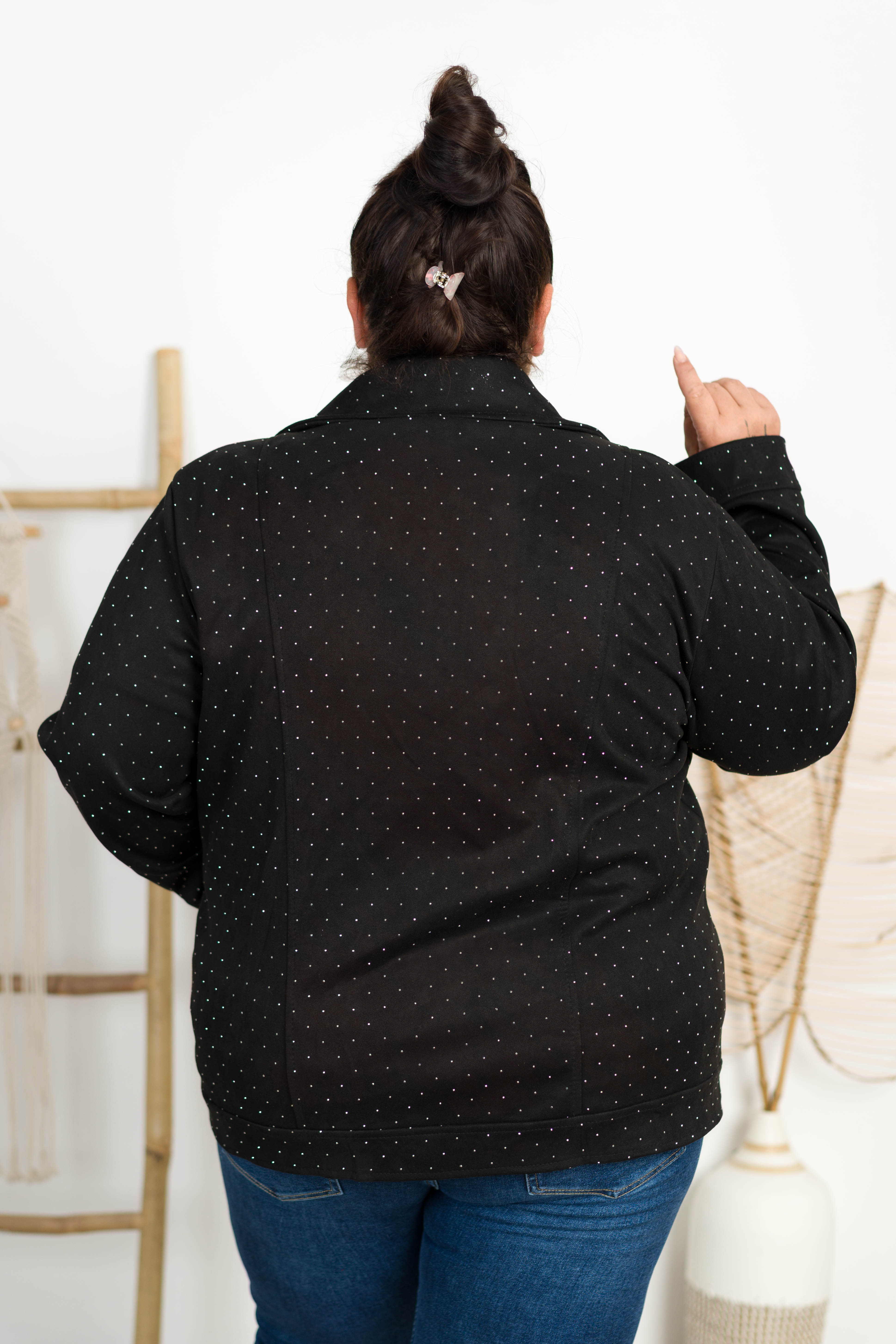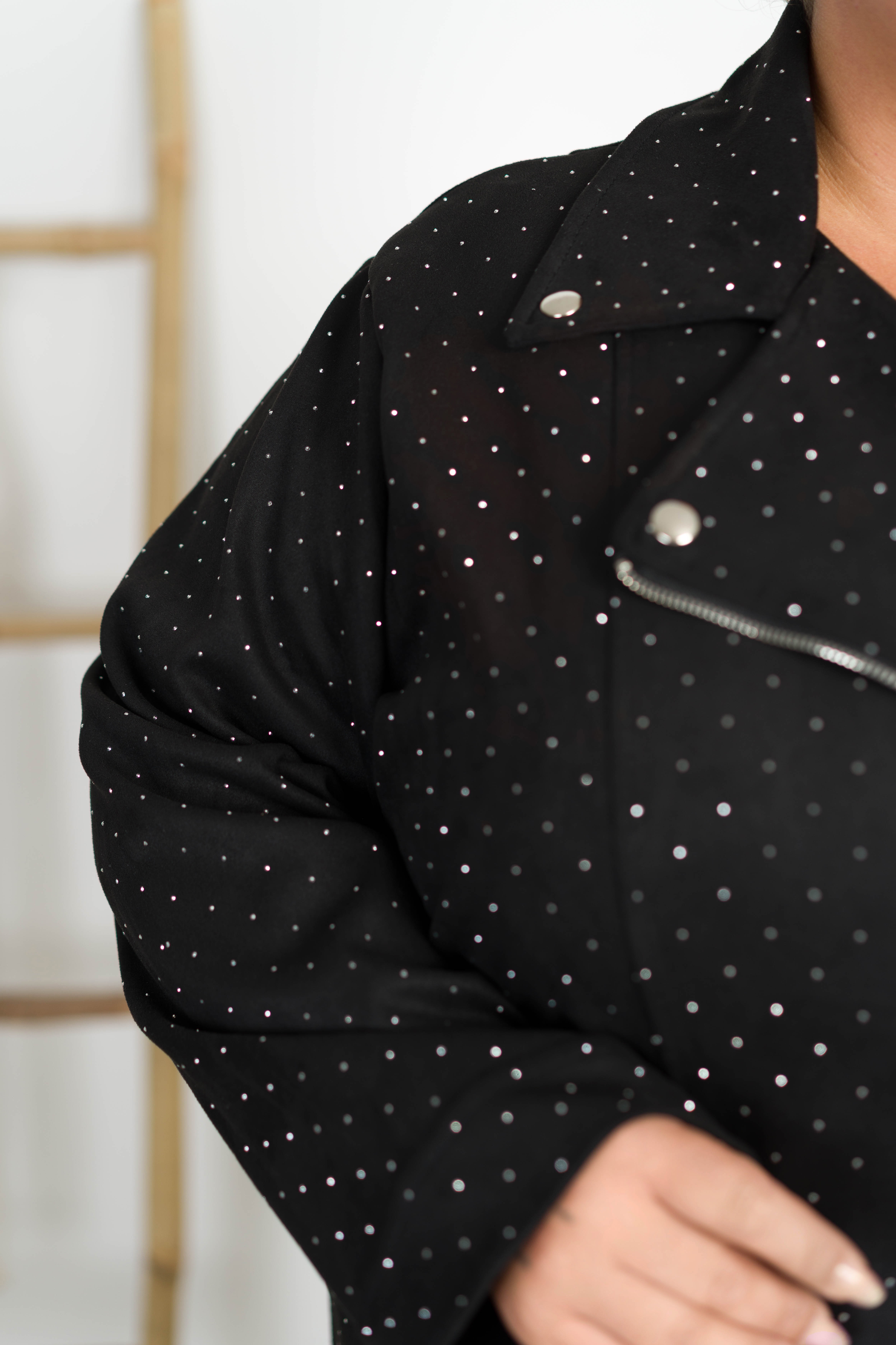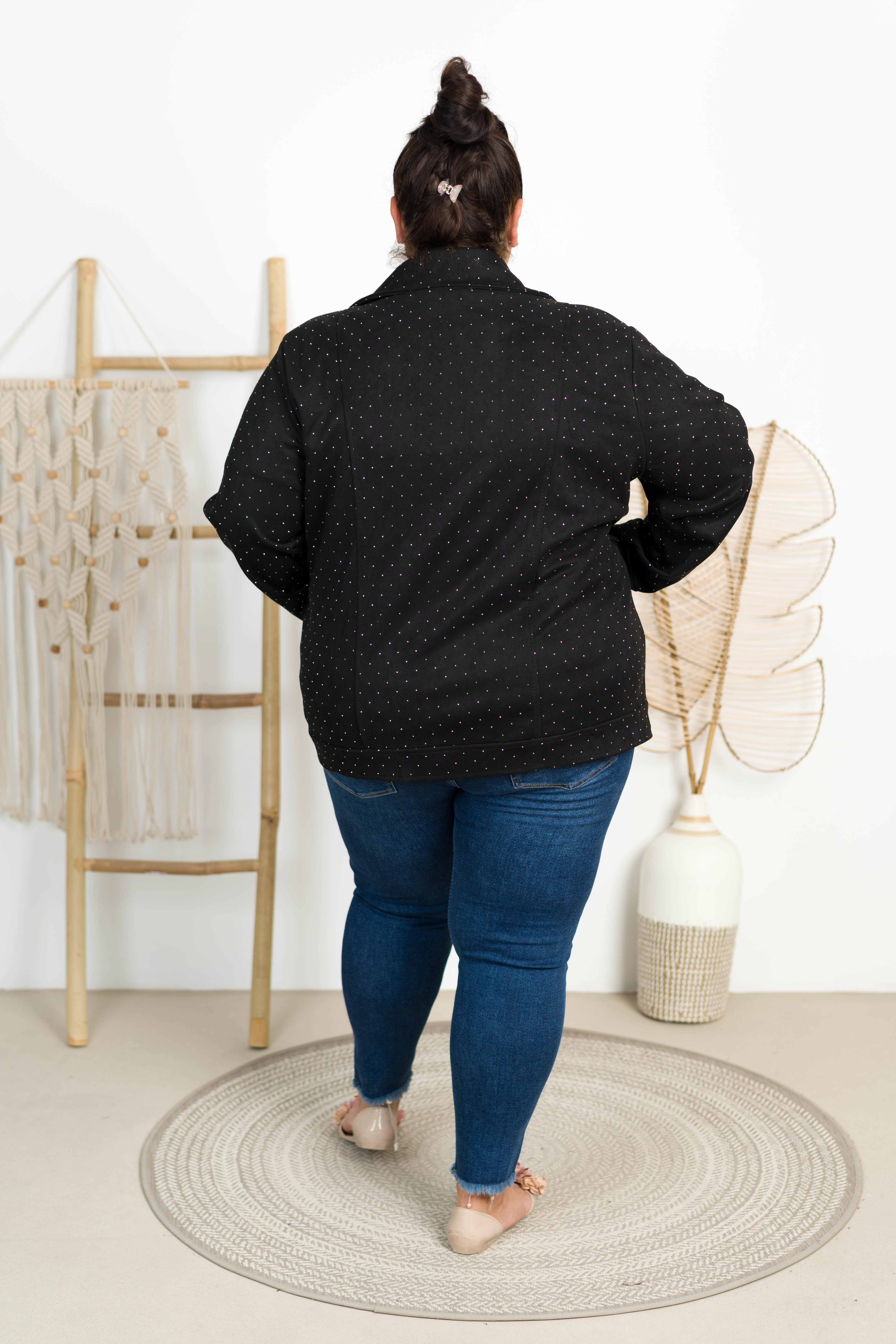 Ramoneska z Zamszu AZALEA z dżetami czarna Plus Size 50/56