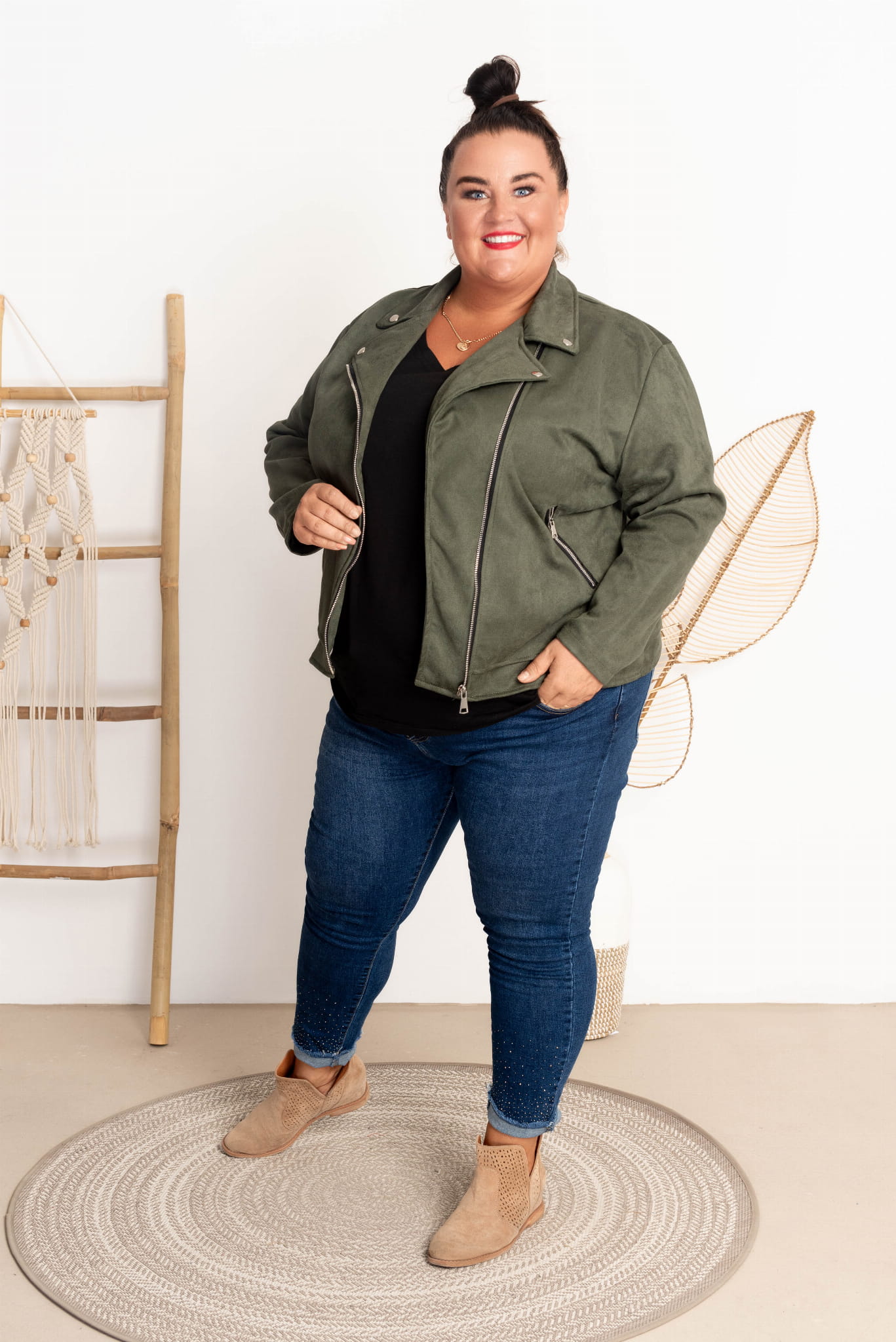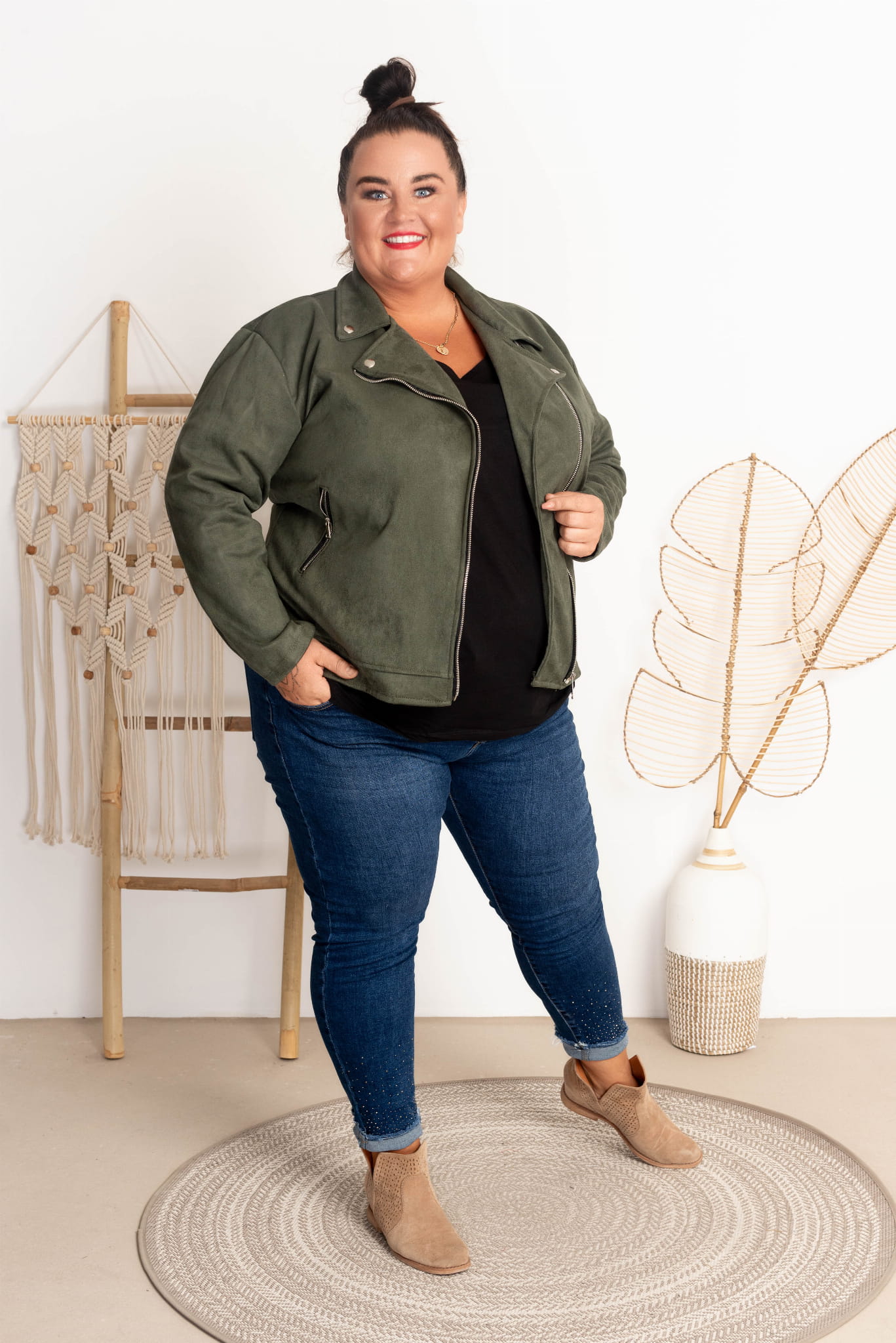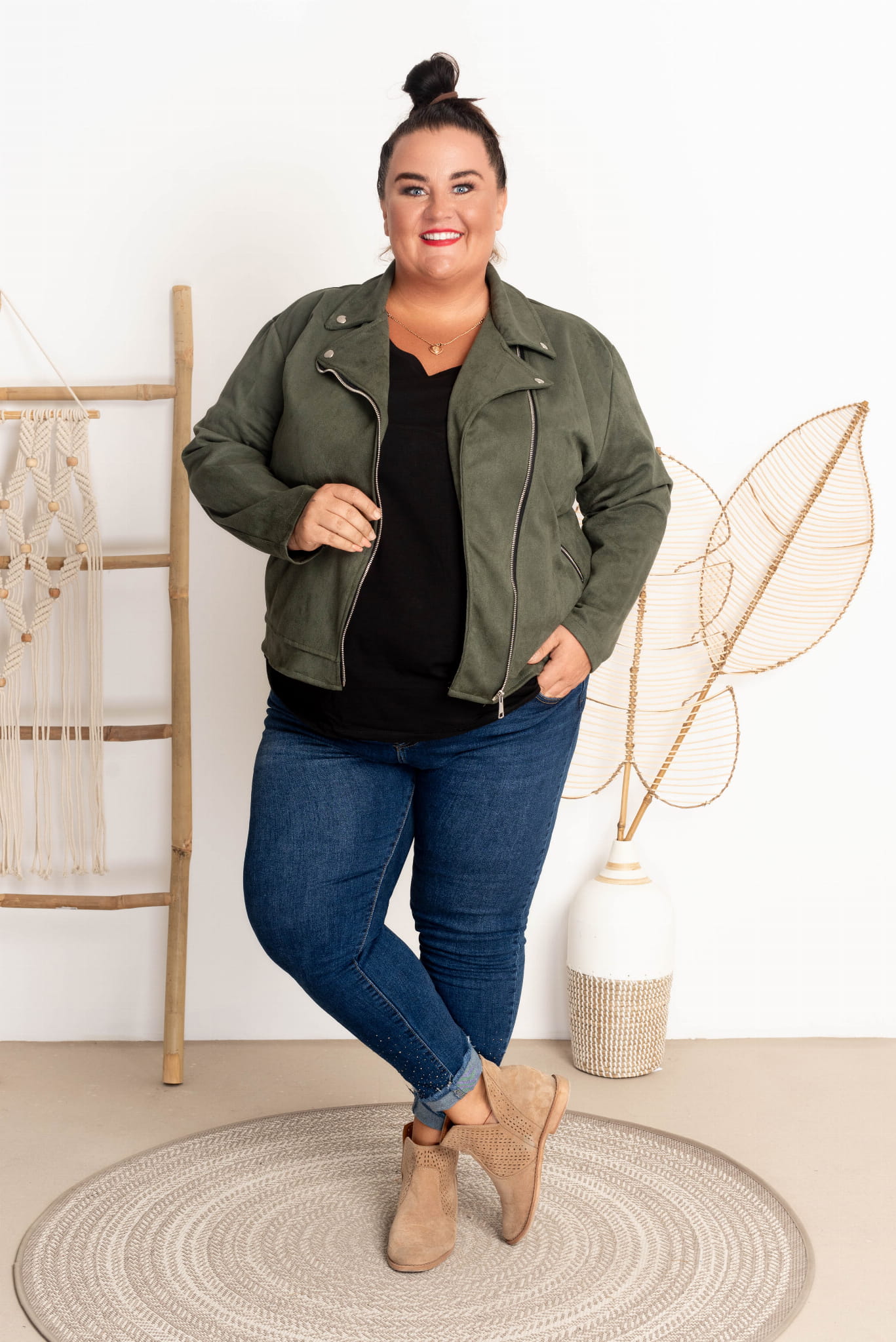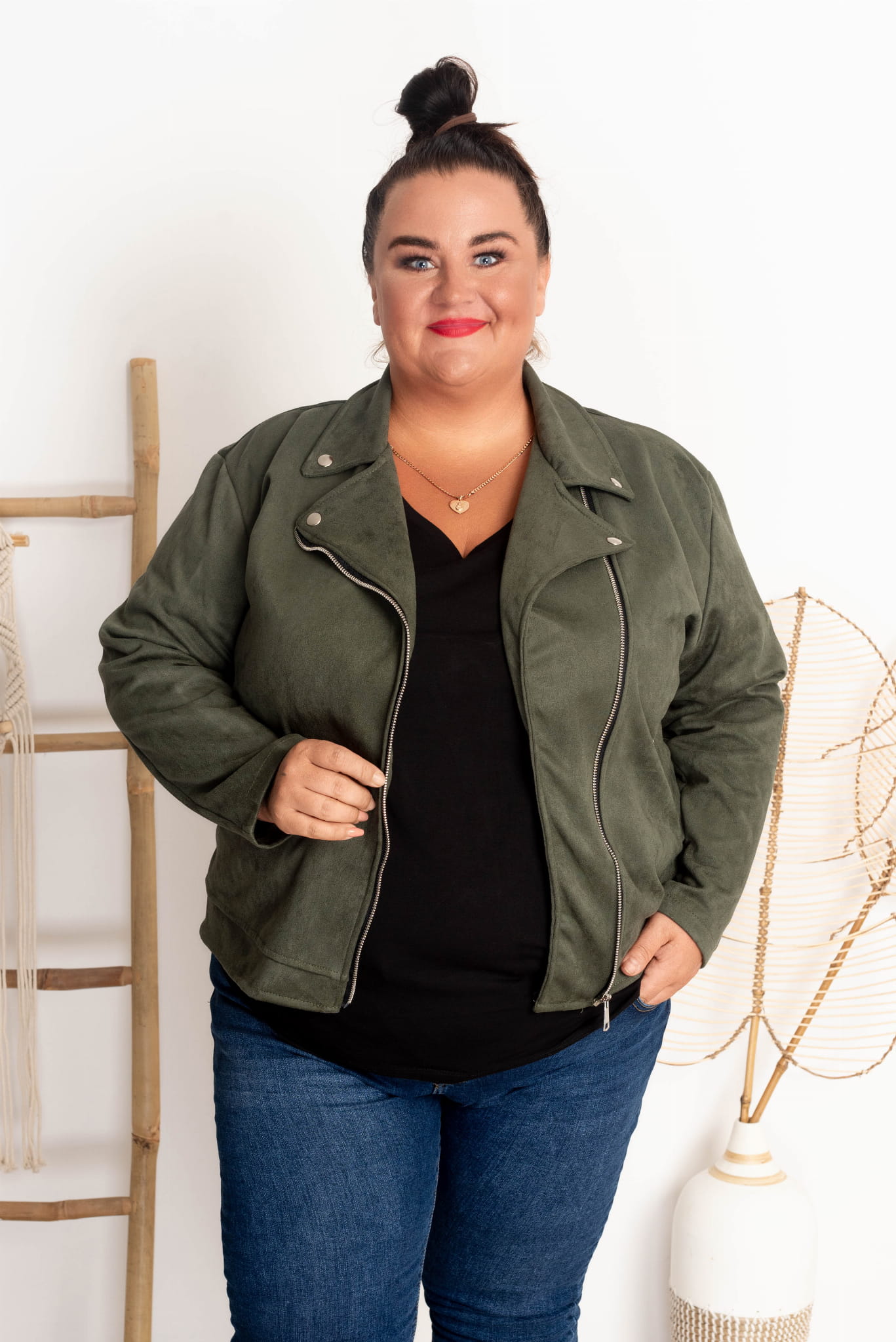 Ramoneska z Zamszu KING khaki Plus Size 44-52