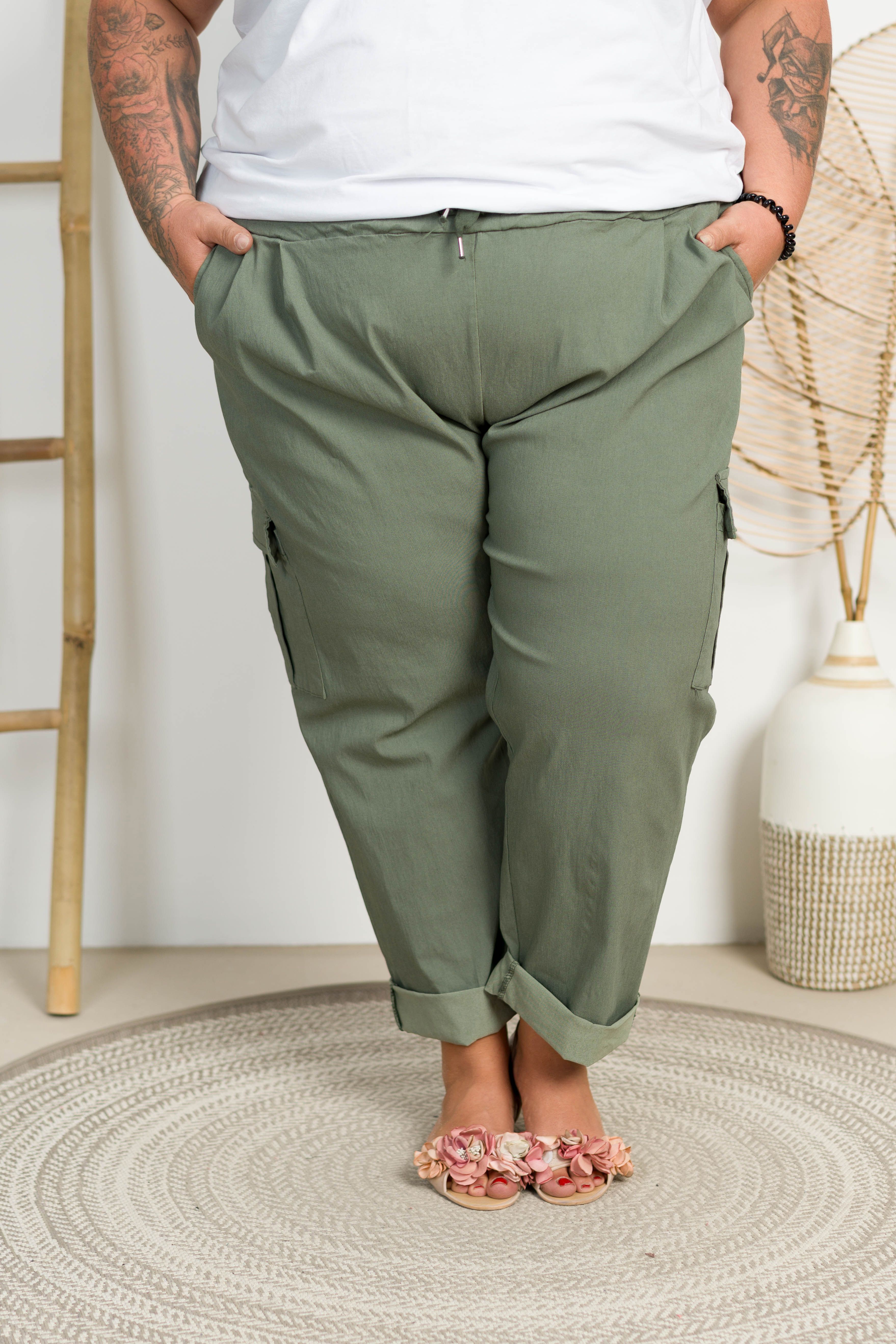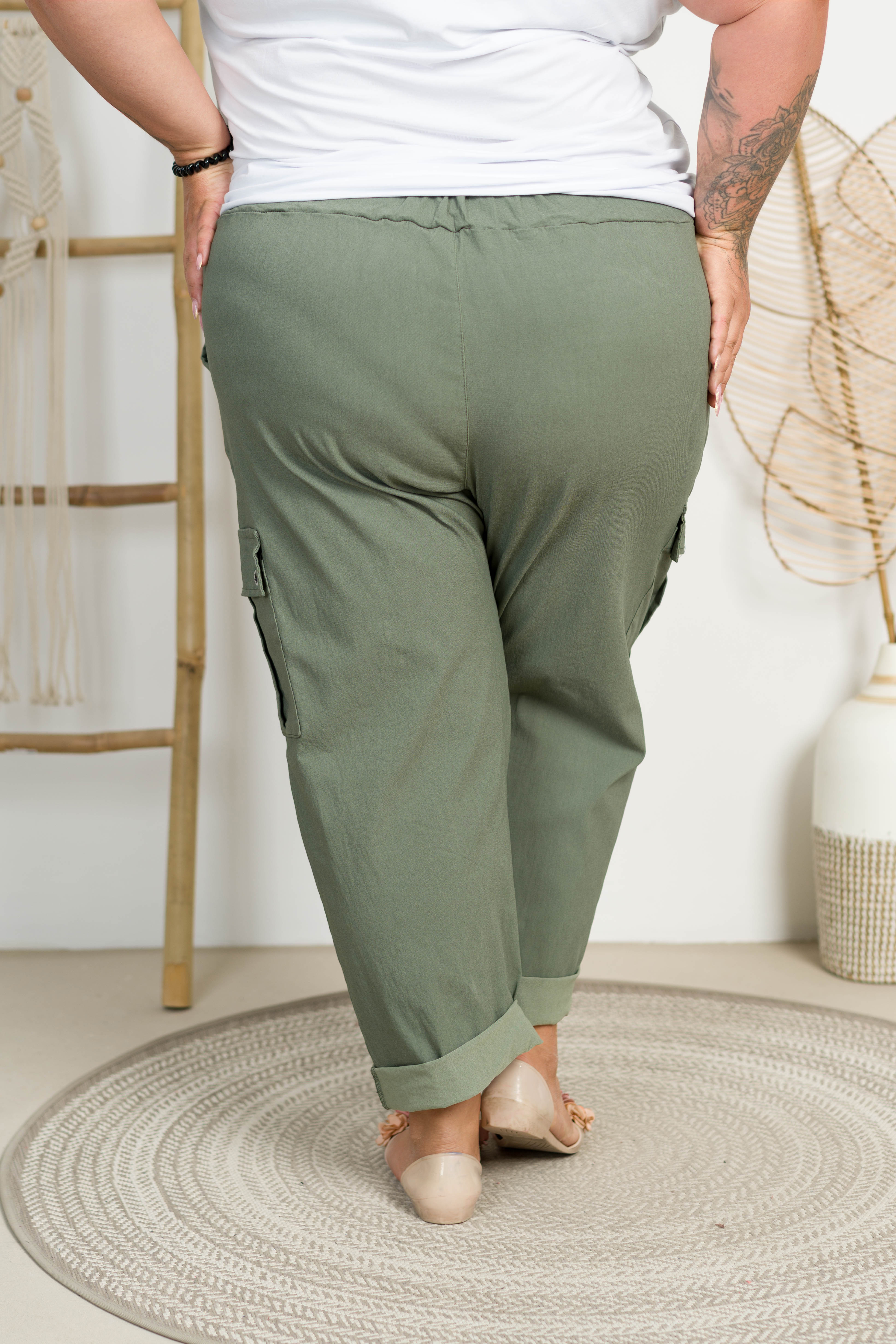 Spodnie Bojówki Boyfriend SANDRA khaki Plus Size 52/60