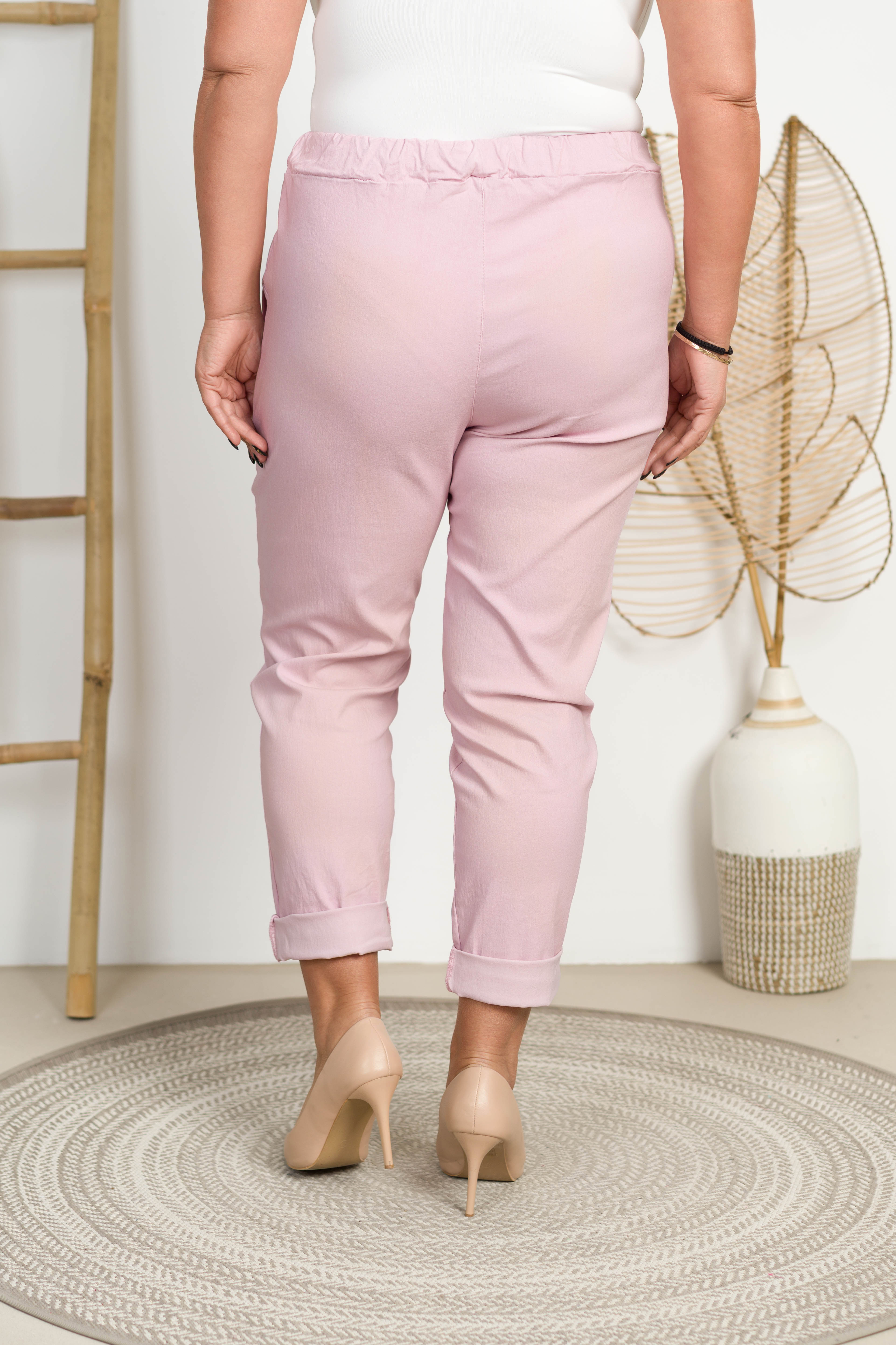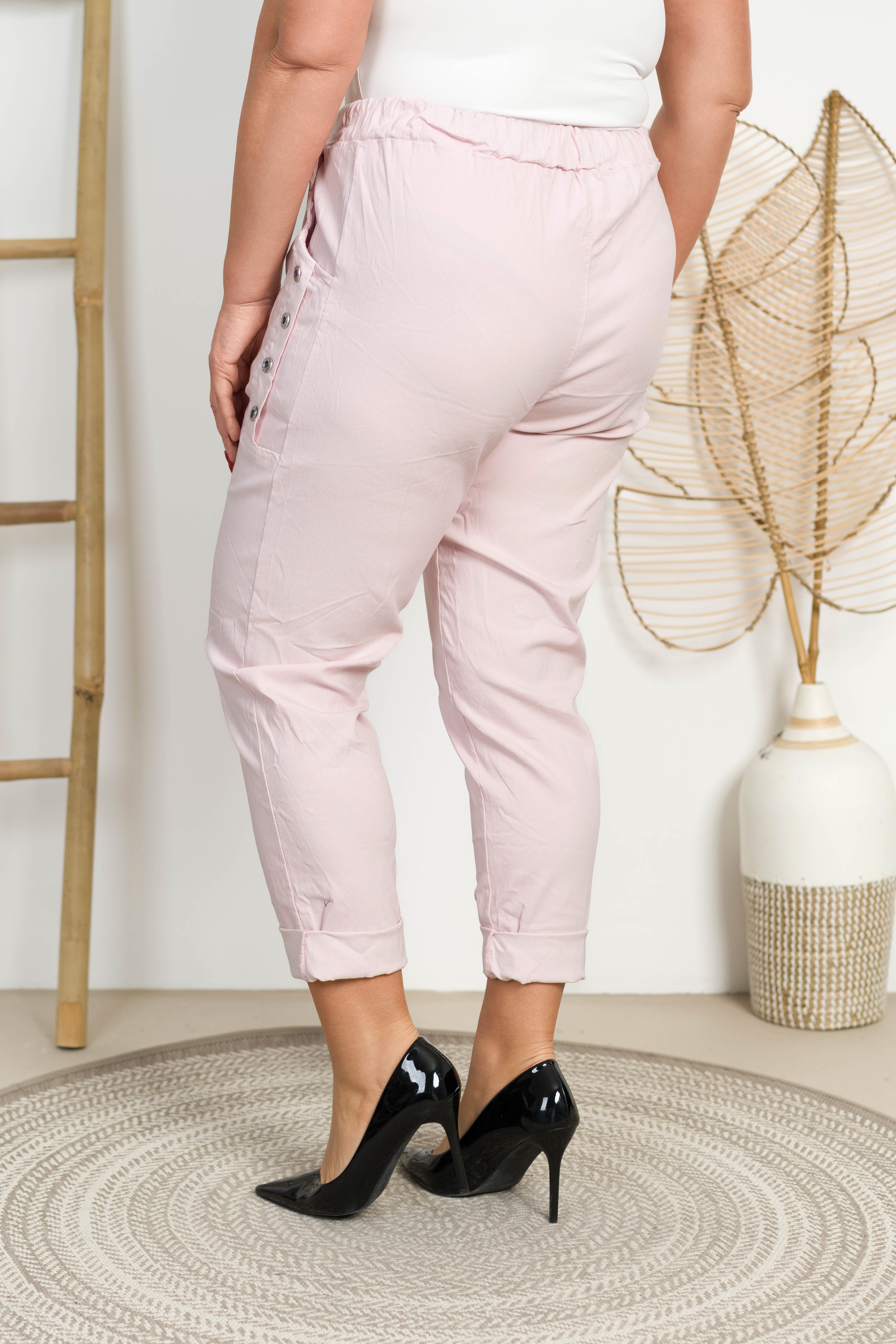Spodnie Boyfriend KODI pudrowe Plus Size 46/52