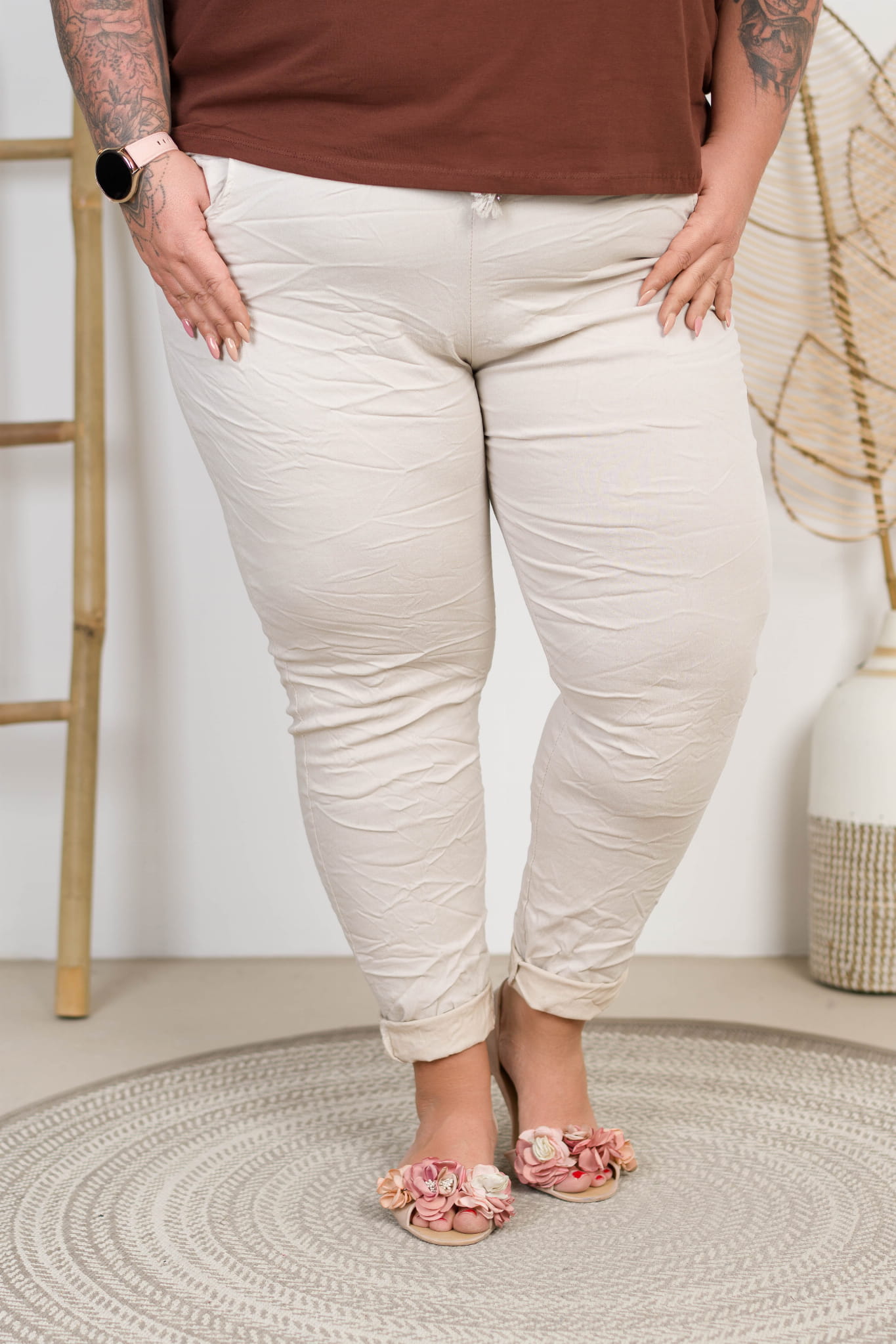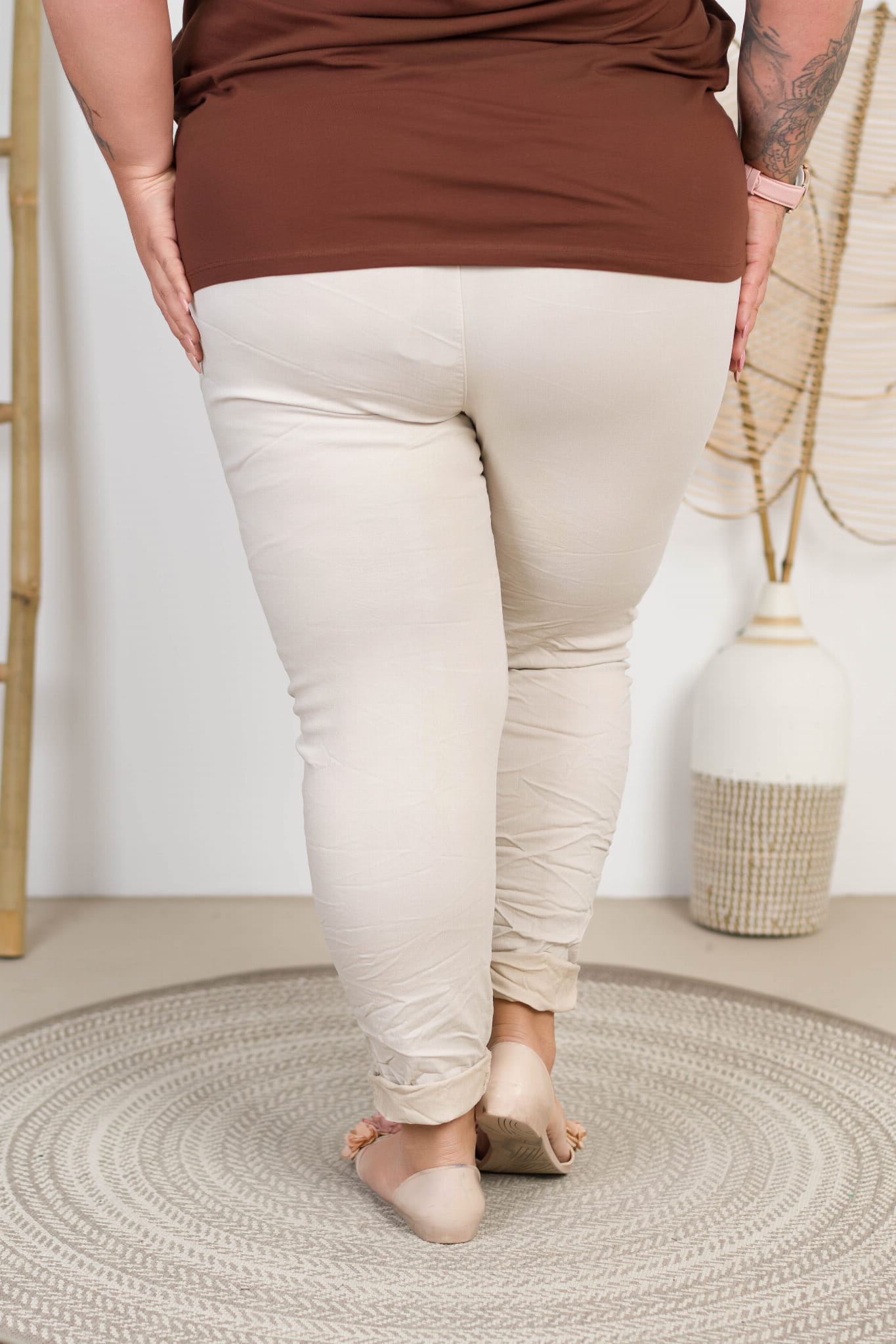 Spodnie Gnieciuchy Boyfriend LORD beżowe Plus Size 46/52