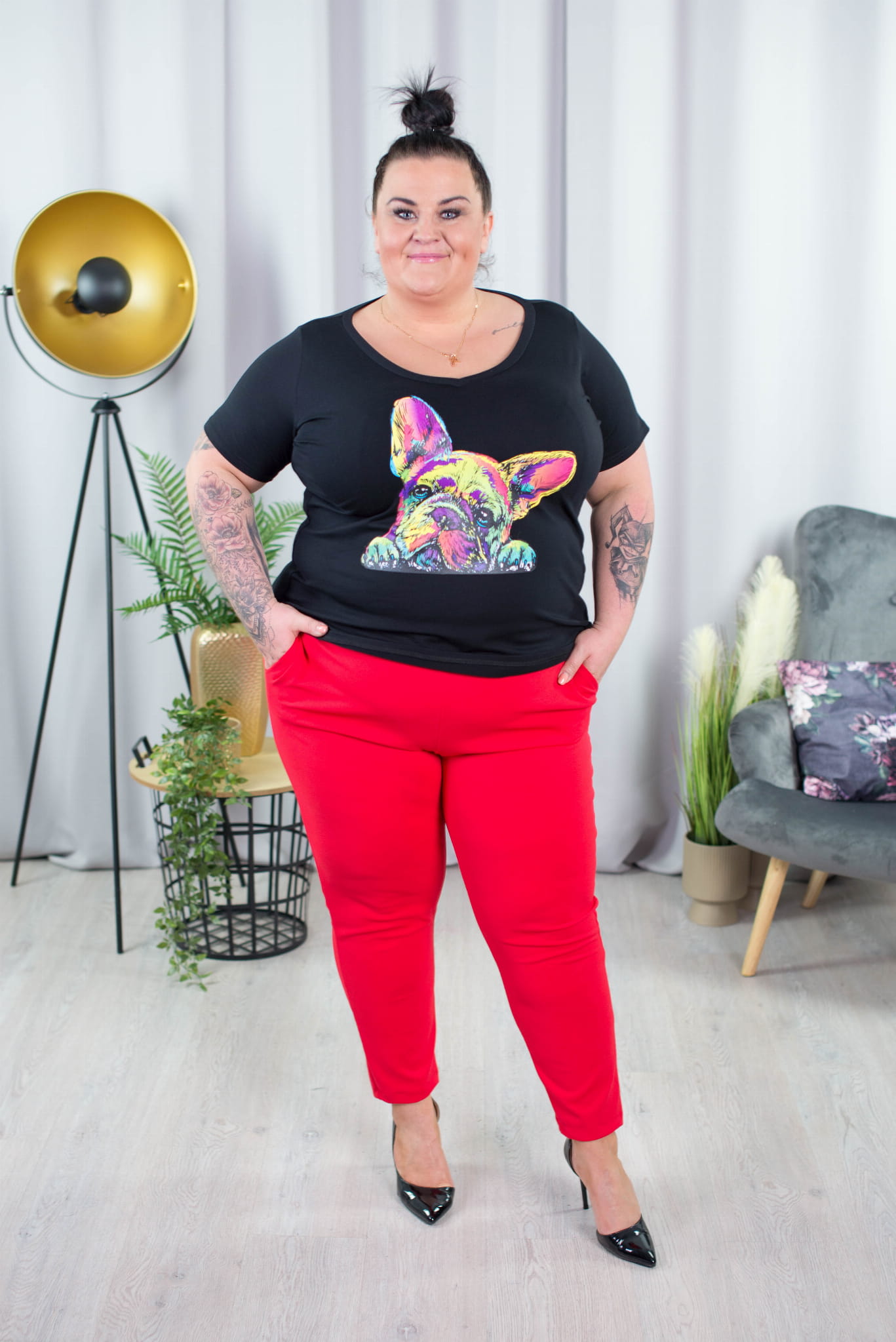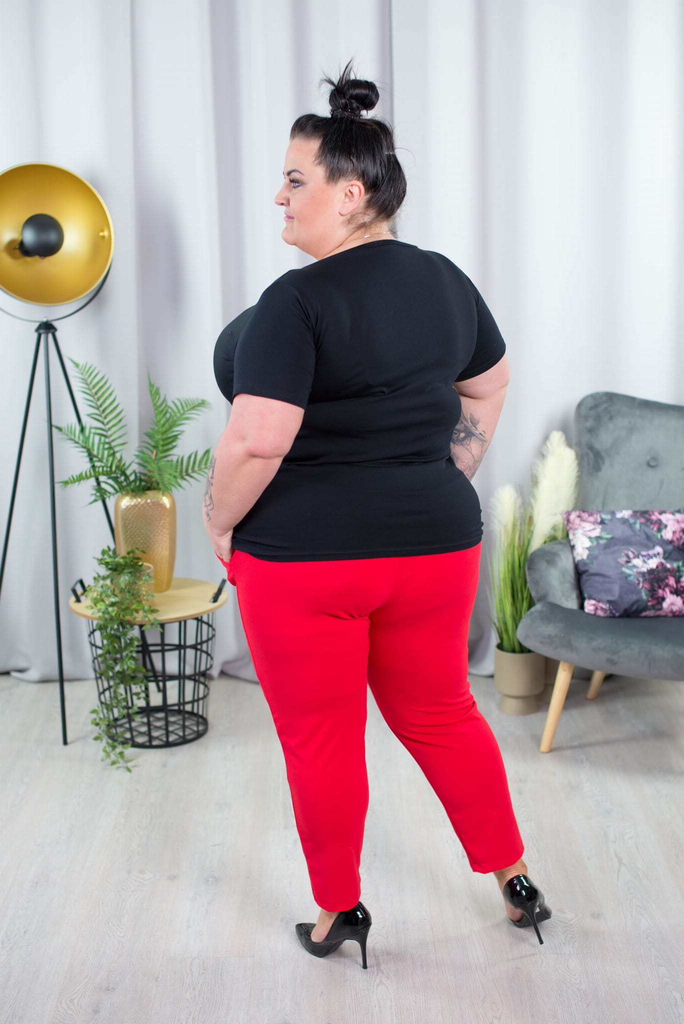 Spodnie materiałowe w gumę PORTI czerwone Plus Size 44-52