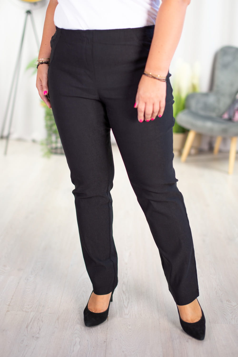 Spodnie w gumę z prostą nogawką MIKSA 02 czarne Plus Size 42-64