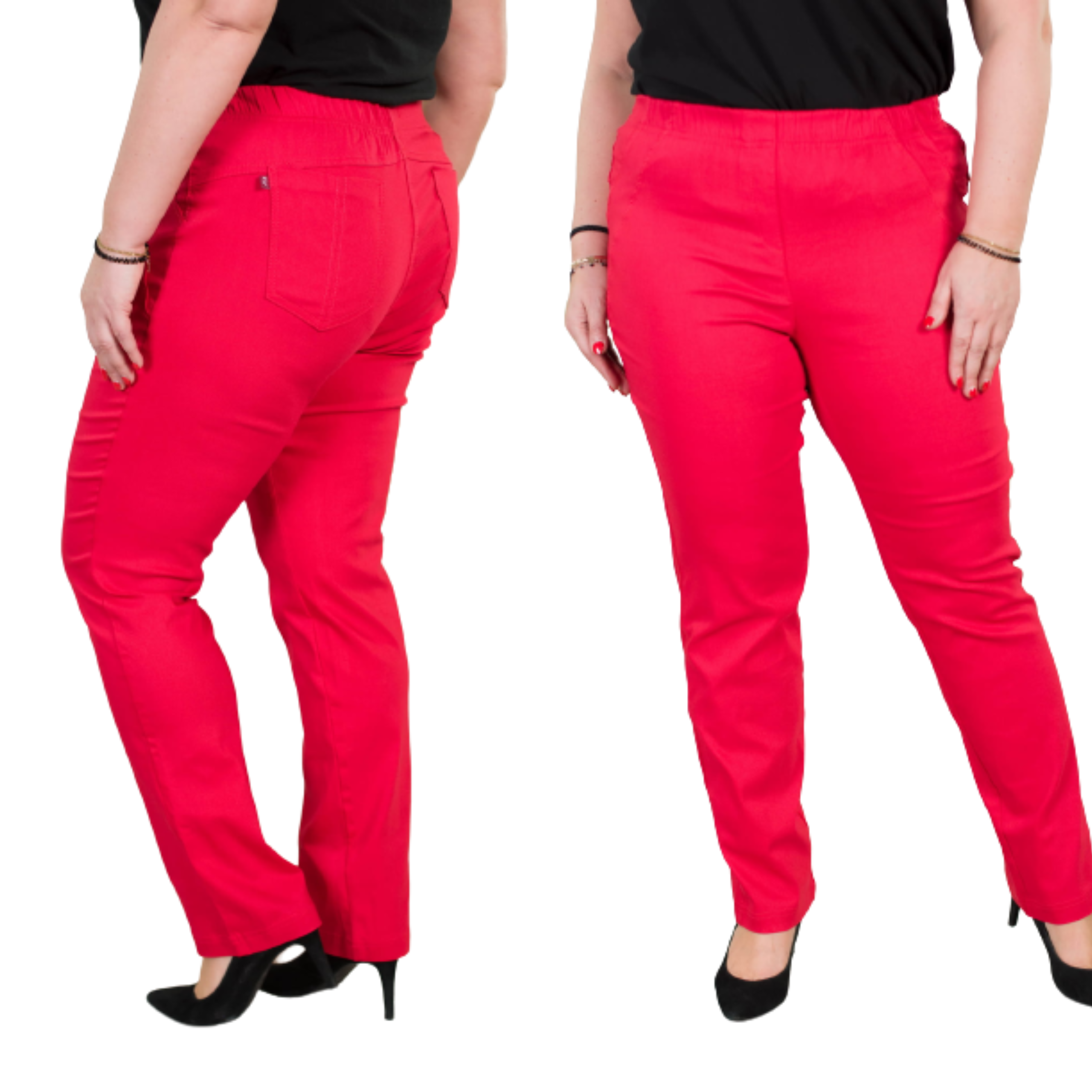 Spodnie w gumę z prostą nogawką MIKSA 02 czerwone Plus Size 42-64