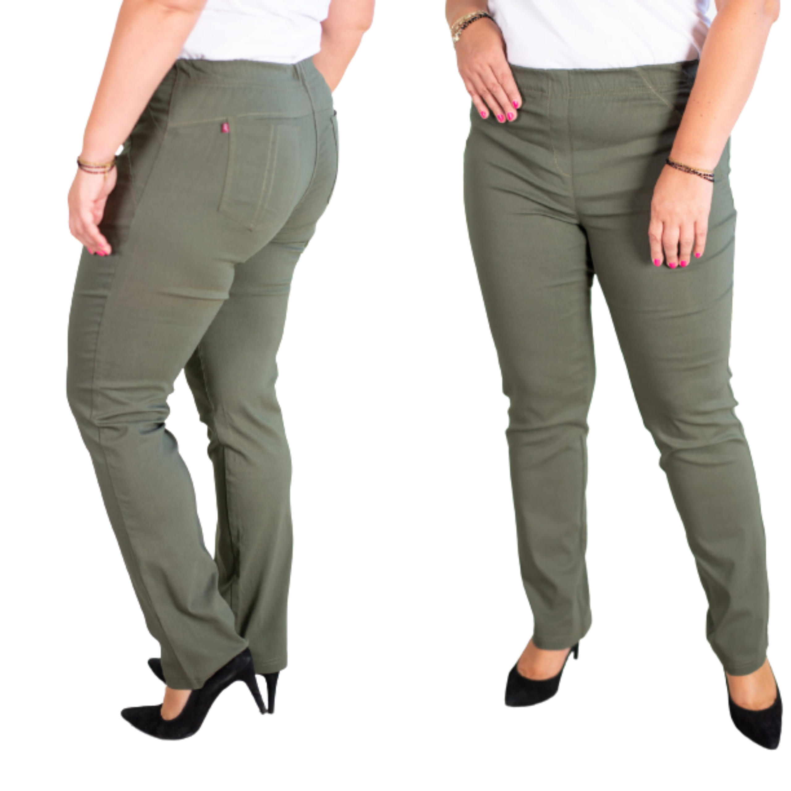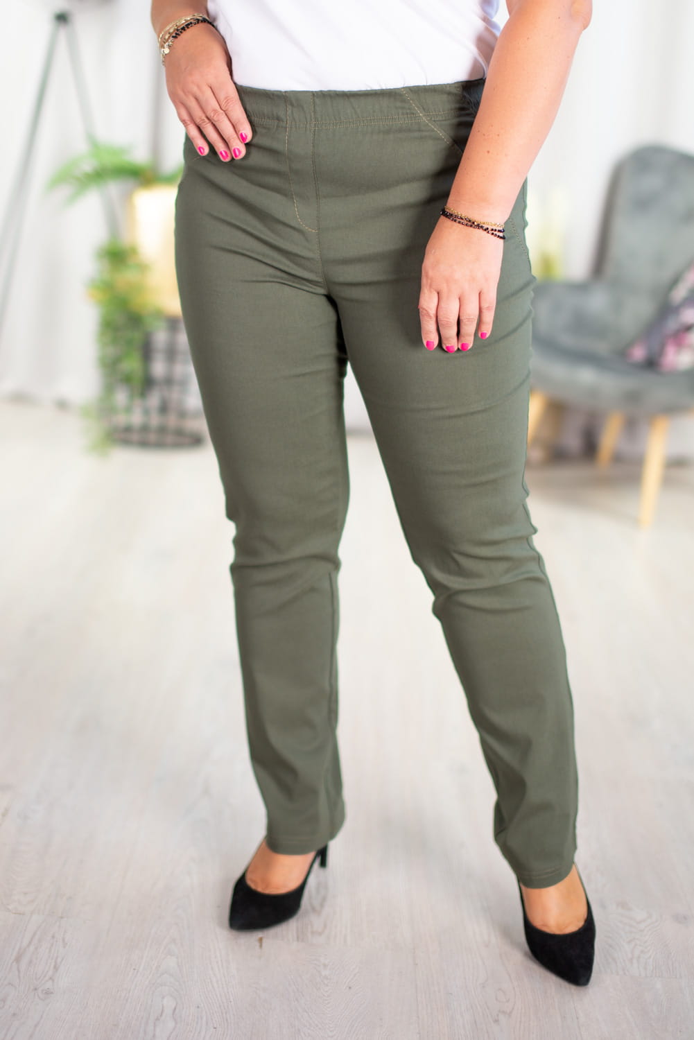 Spodnie w gumę z prostą nogawką MIKSA 02 khaki Plus Size 42-64