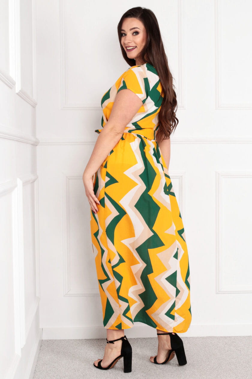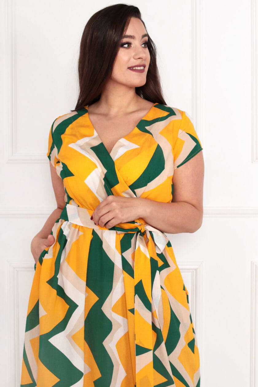 Sukienka NICOLE żółta geometryczna Plus Size 44-52