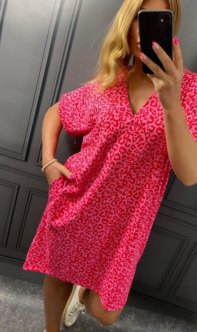 Sukienka Tuba CYRILL cętki neon fuksja Plus Size 44/48