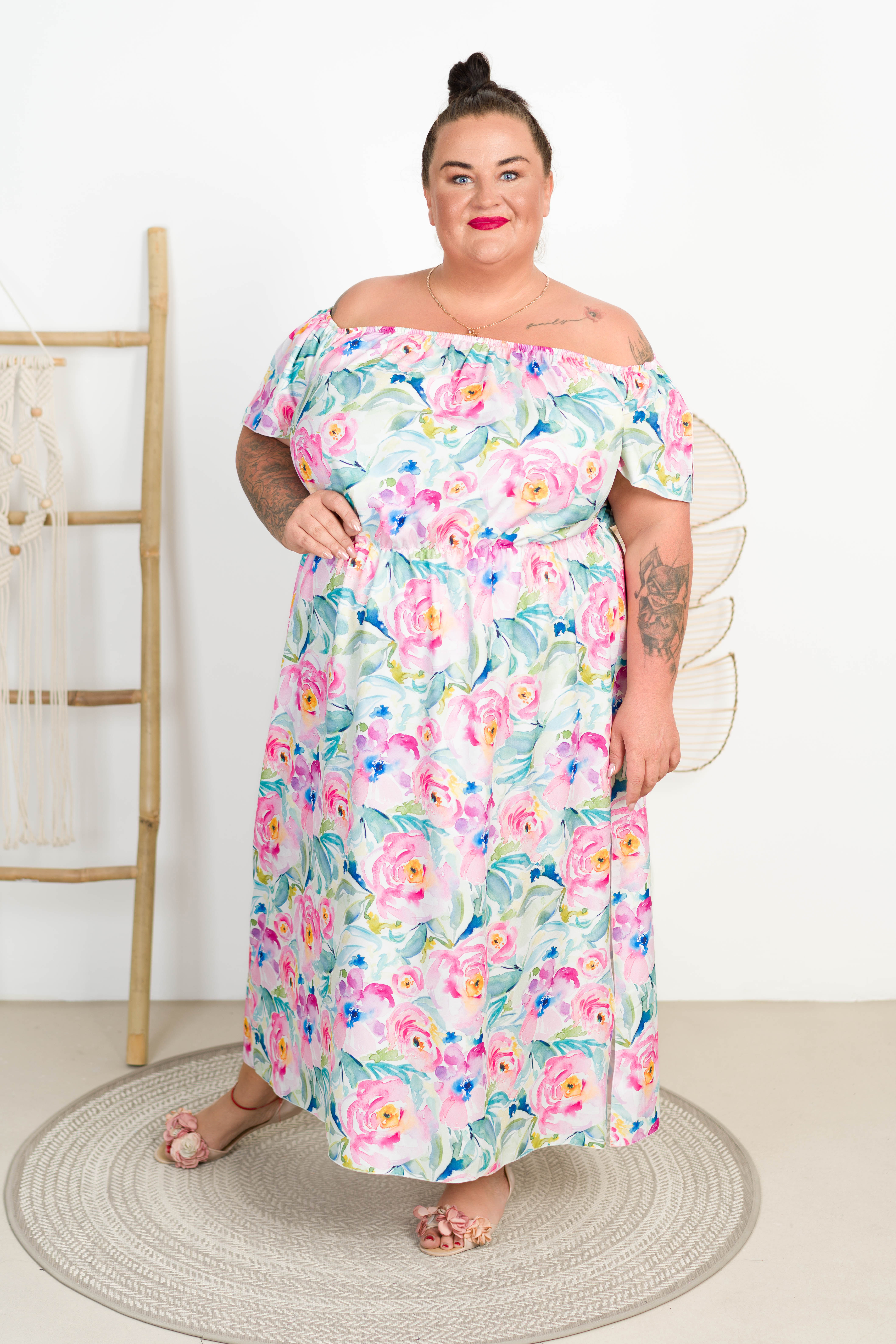 Sukienka Maxi Long wykonana z wysokiej jakości elastycznego i przewiewnego materiału przez polskiego producenta odzieży Plus Size.