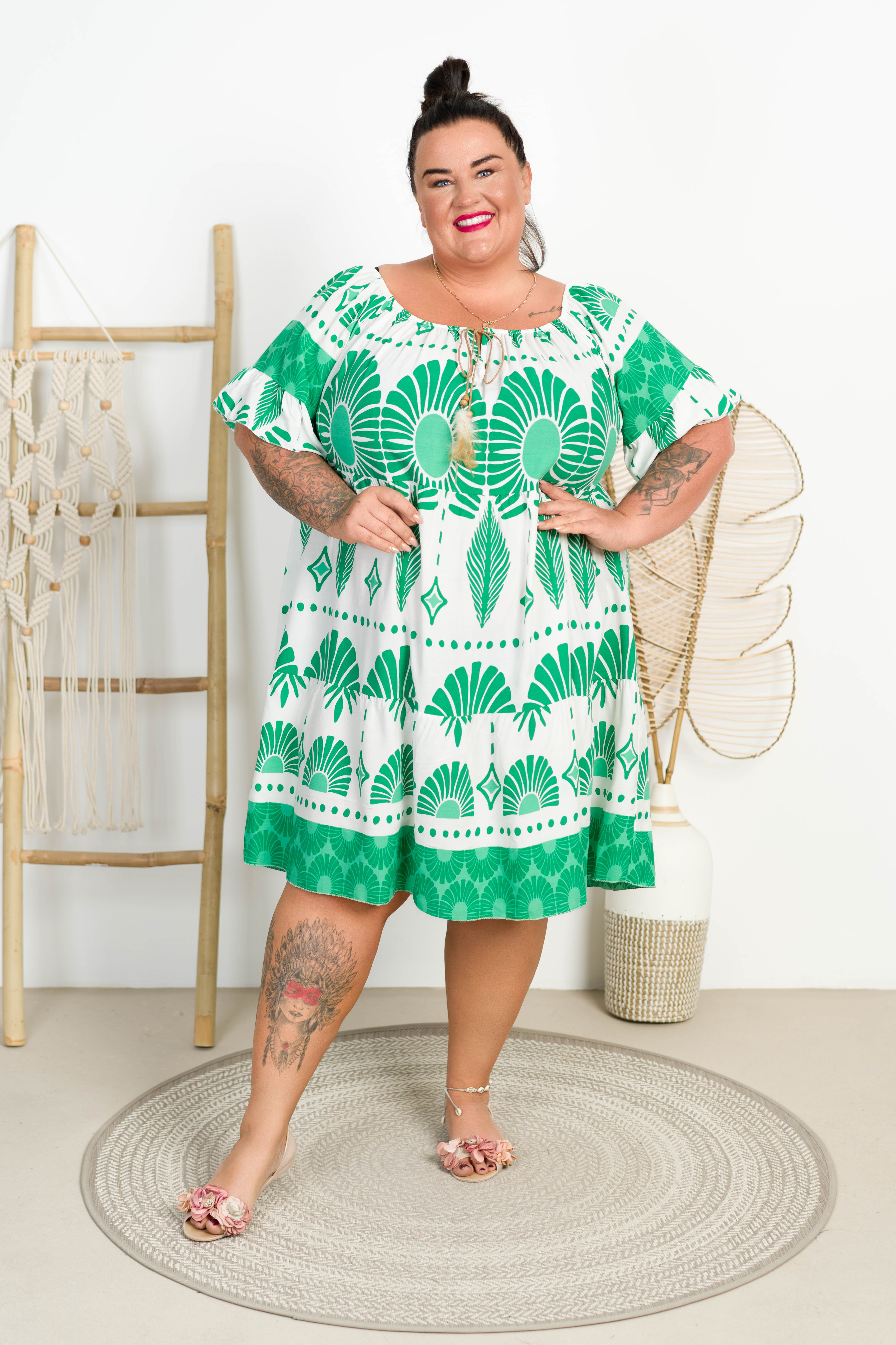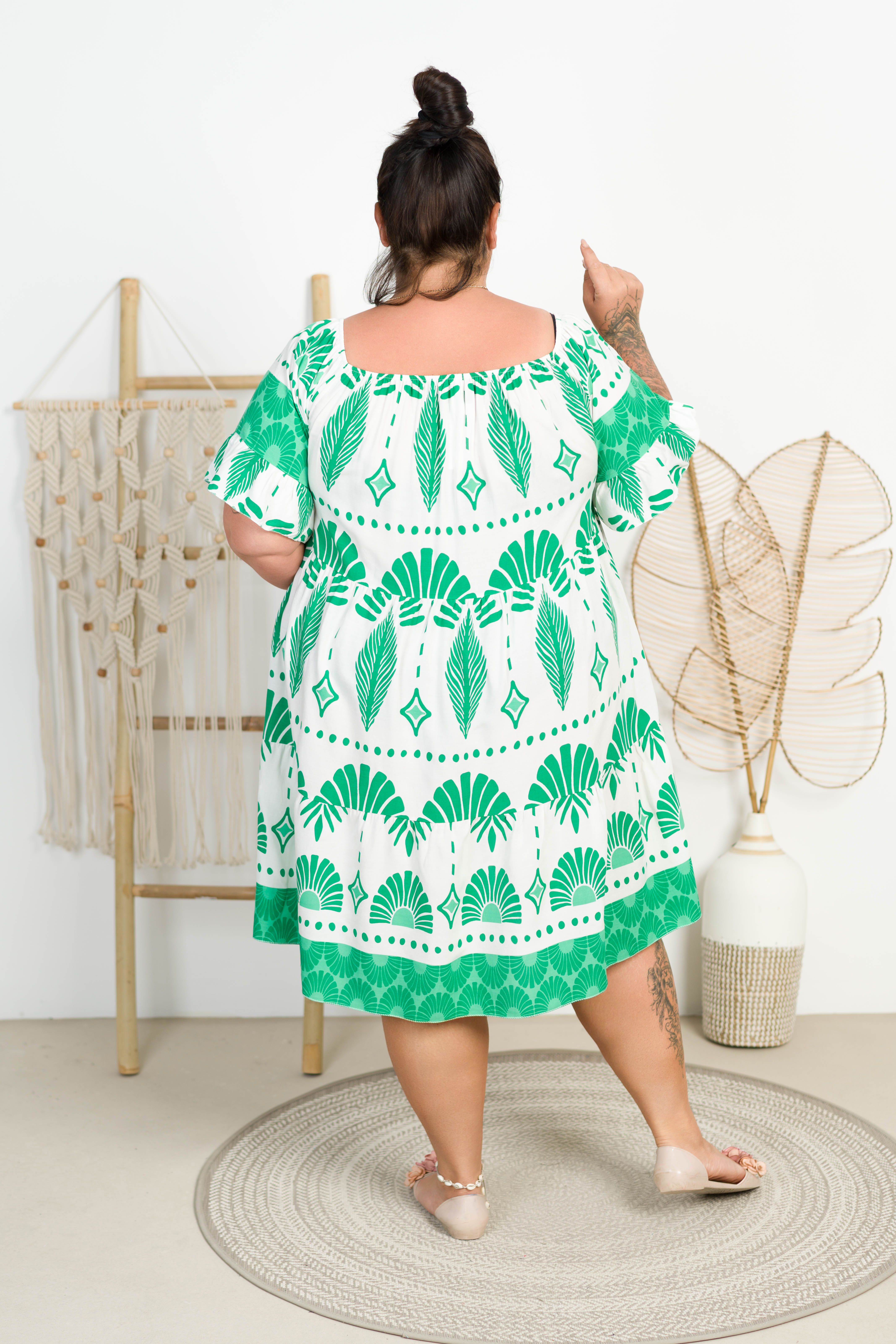 Sukienka trapezowa Boho GLENDA zielone wzory Plus Size 48/54
