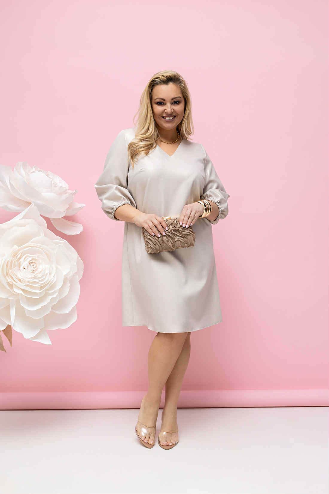 Wykonana z dbałością o każdy detal przez polskiego producenta. Idealnie sprawdzi się w stylizacji okolicznościowej , np na imprezę urodzinową, firmową lub Święta. Sukienka to typowa literka A z lekko szerszym dołem. Dekolt z tyłu w szpic wiązanym uroczą kokardą. Materiał zdobiony błyszczącą nitką, nie mnący.