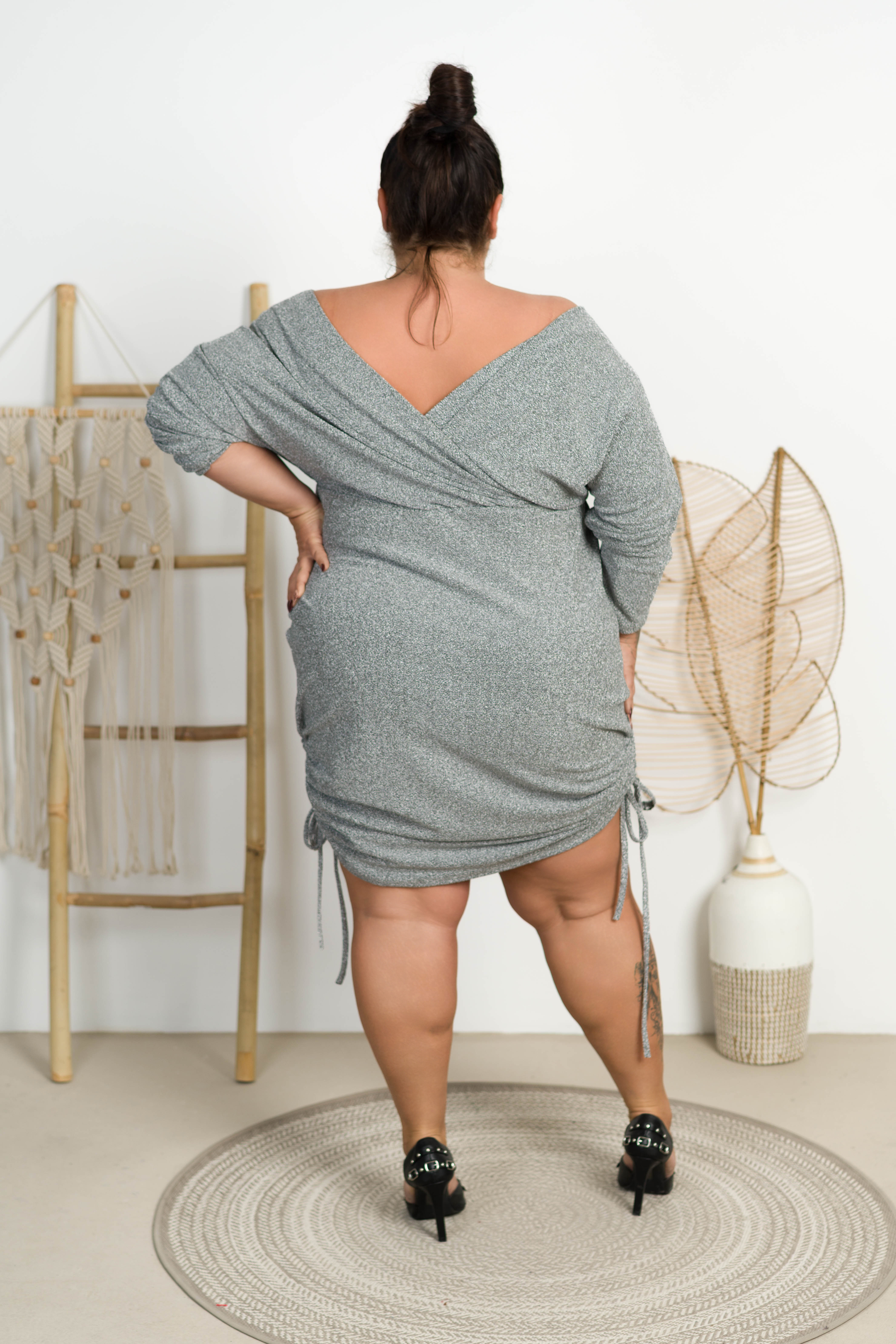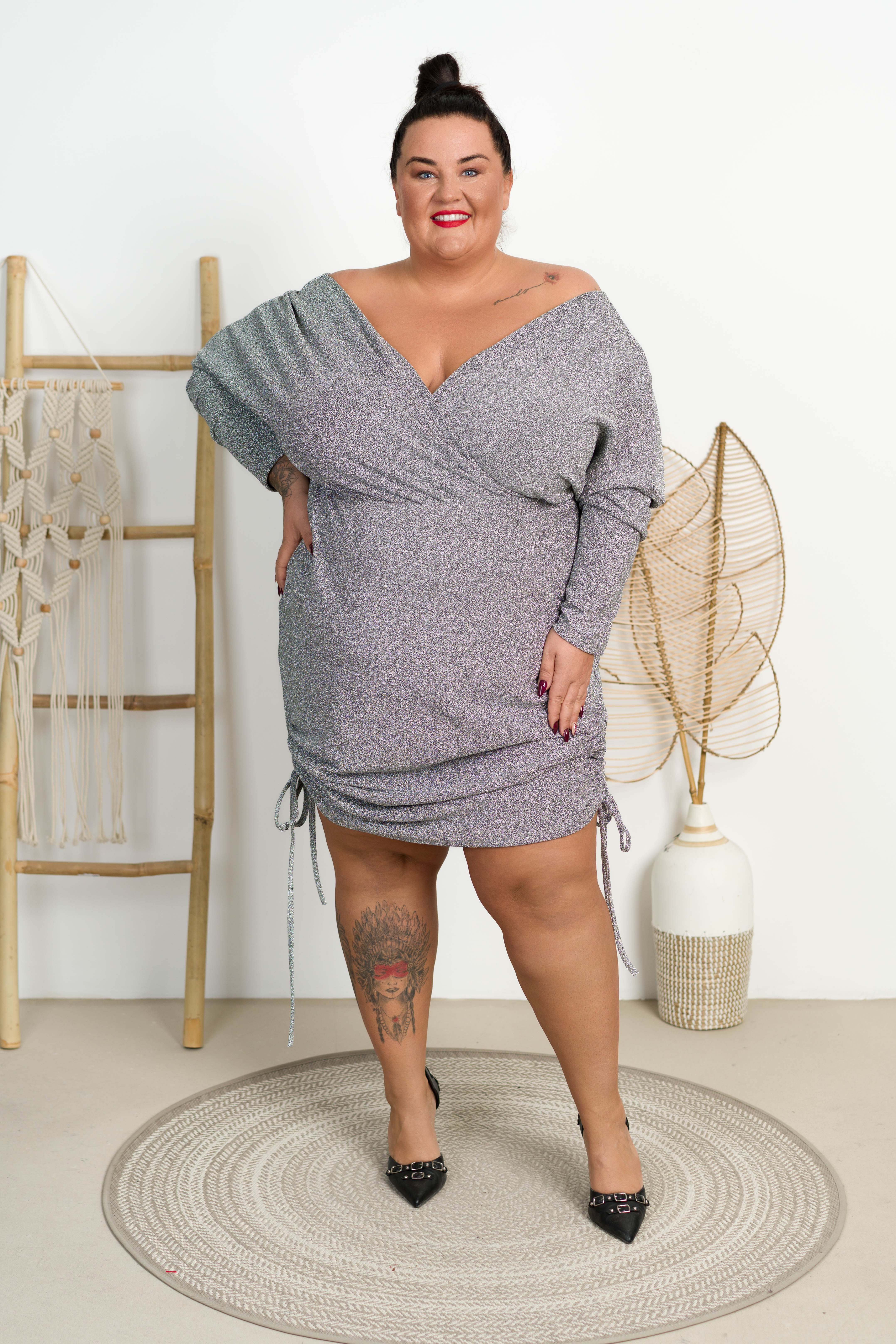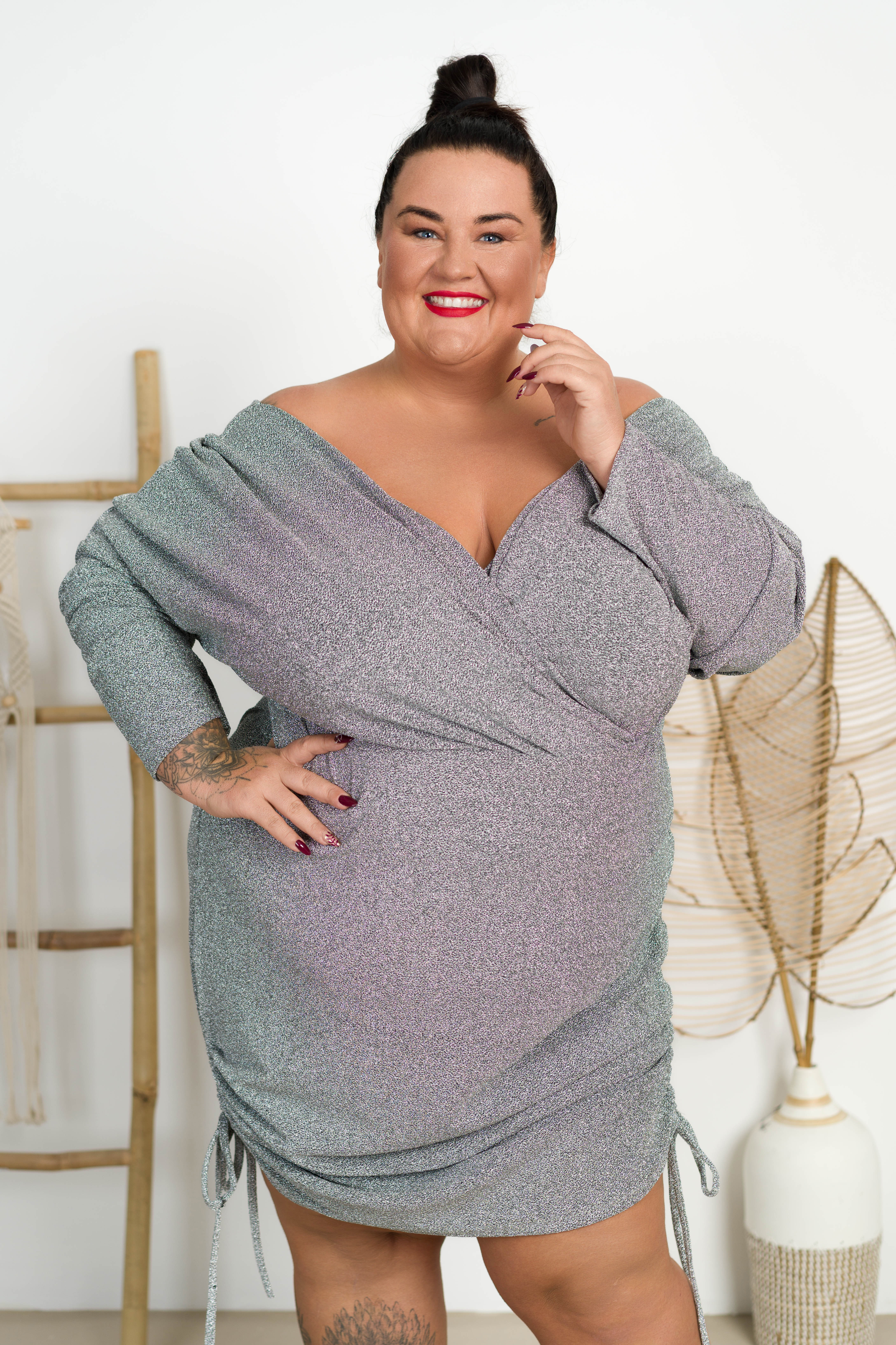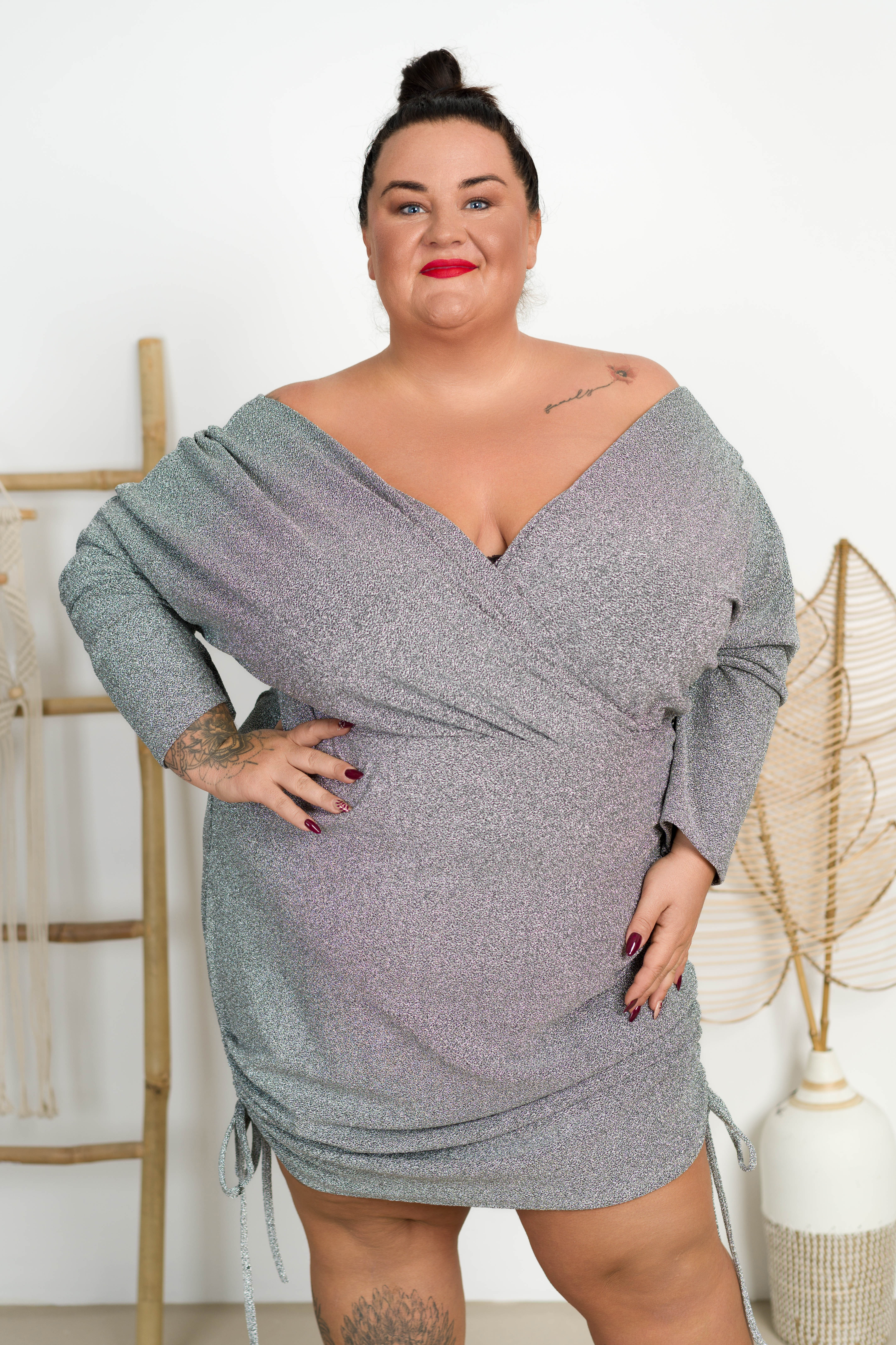 Sukienka z Błyskiem JASMIN srebrna Plus Size 48/52