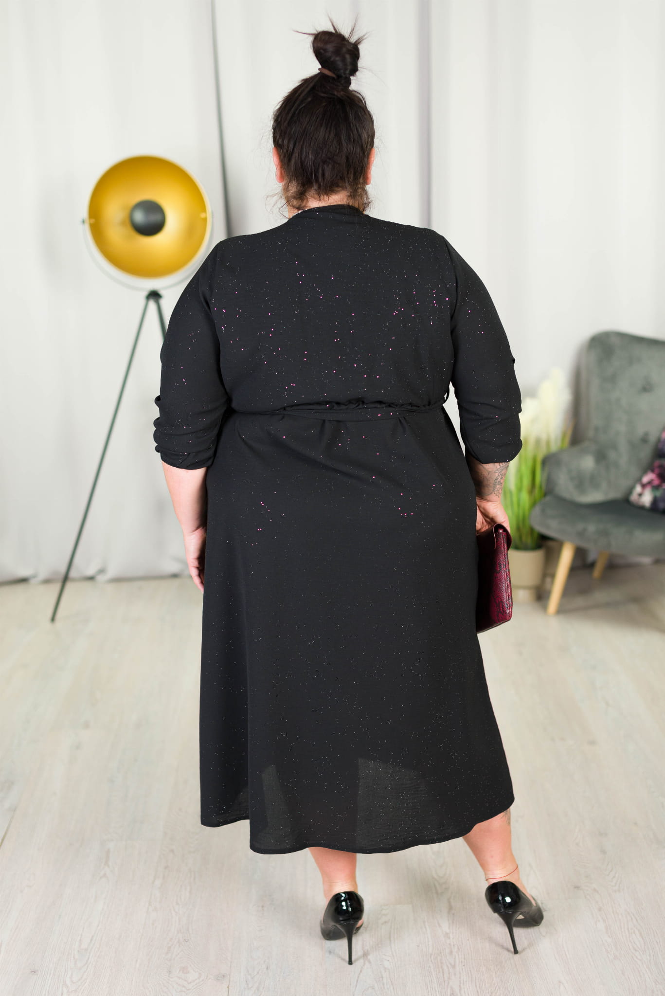 Sukienka z brokatem i rozporkiem POPPY czarna Plus Size 44-54