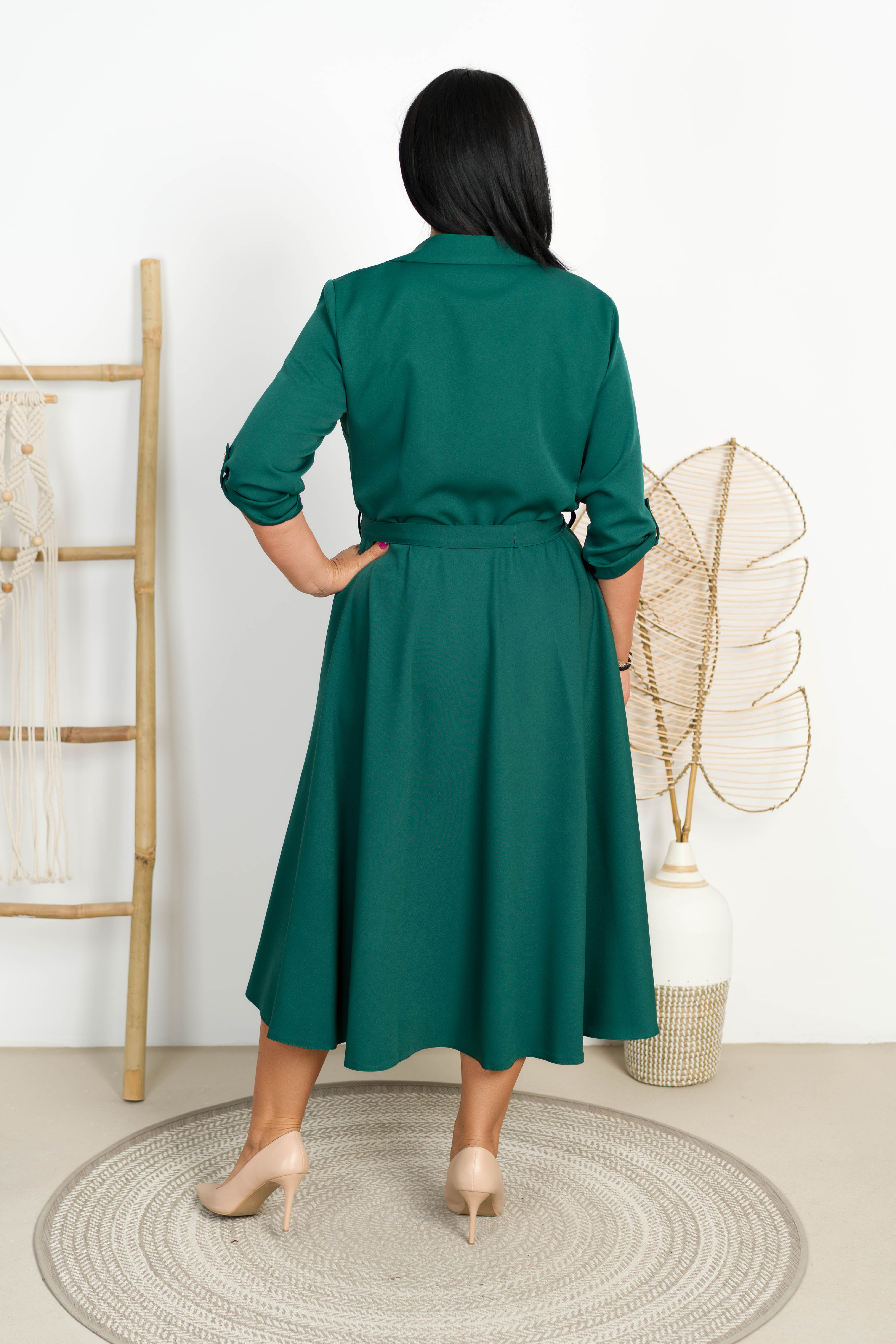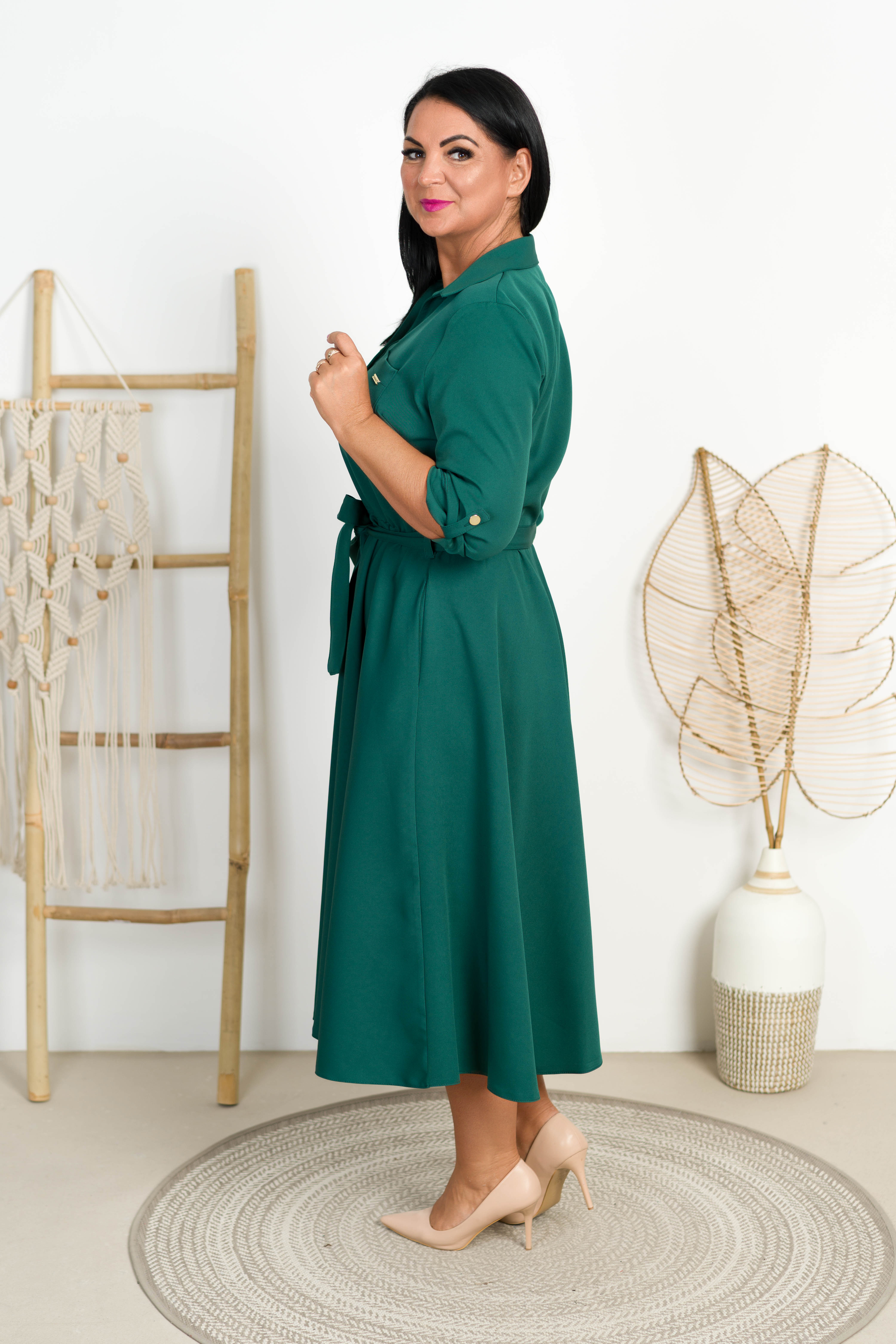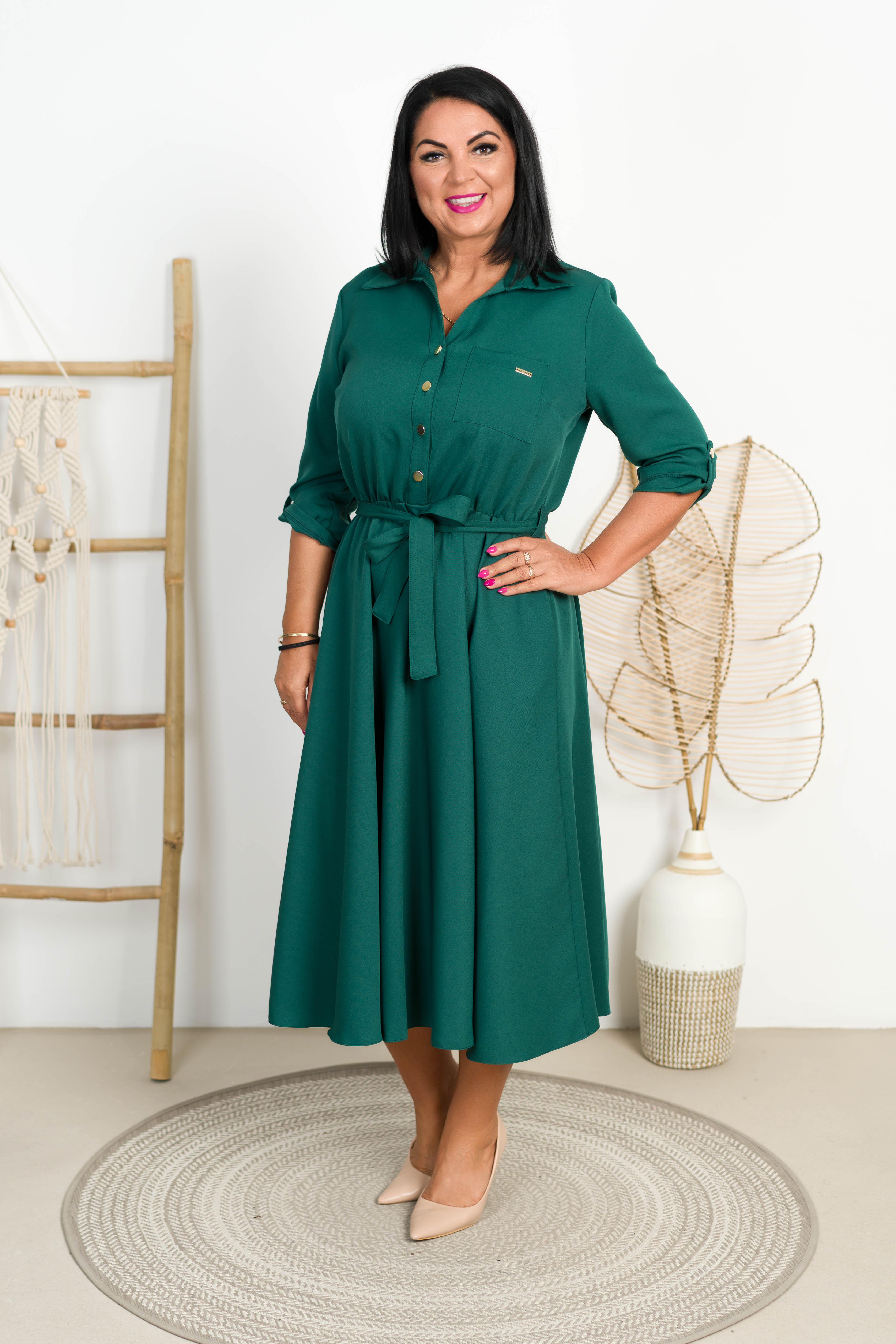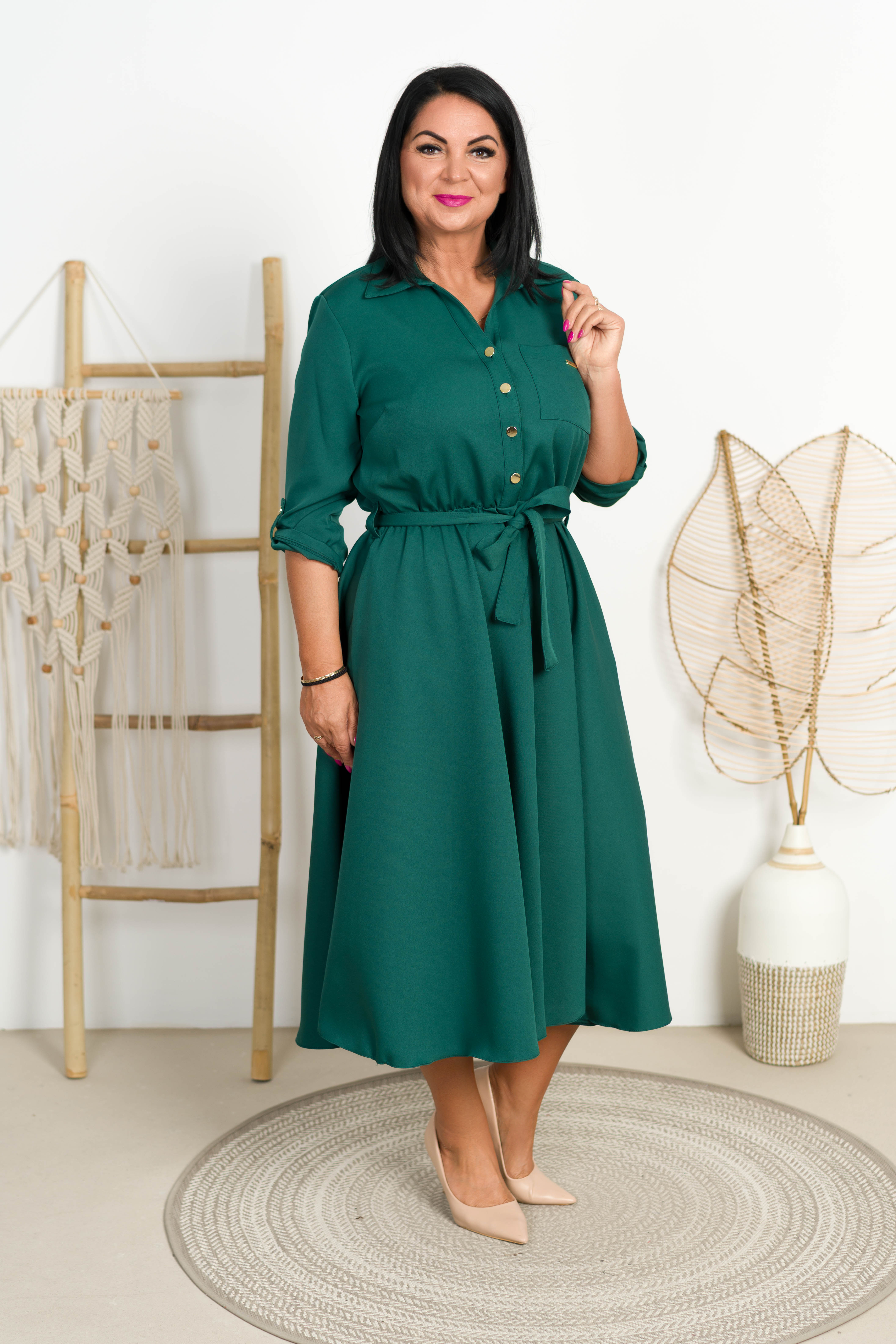 Sukienka z paskiem ILONA butelkowa zieleń Plus Size 44-52