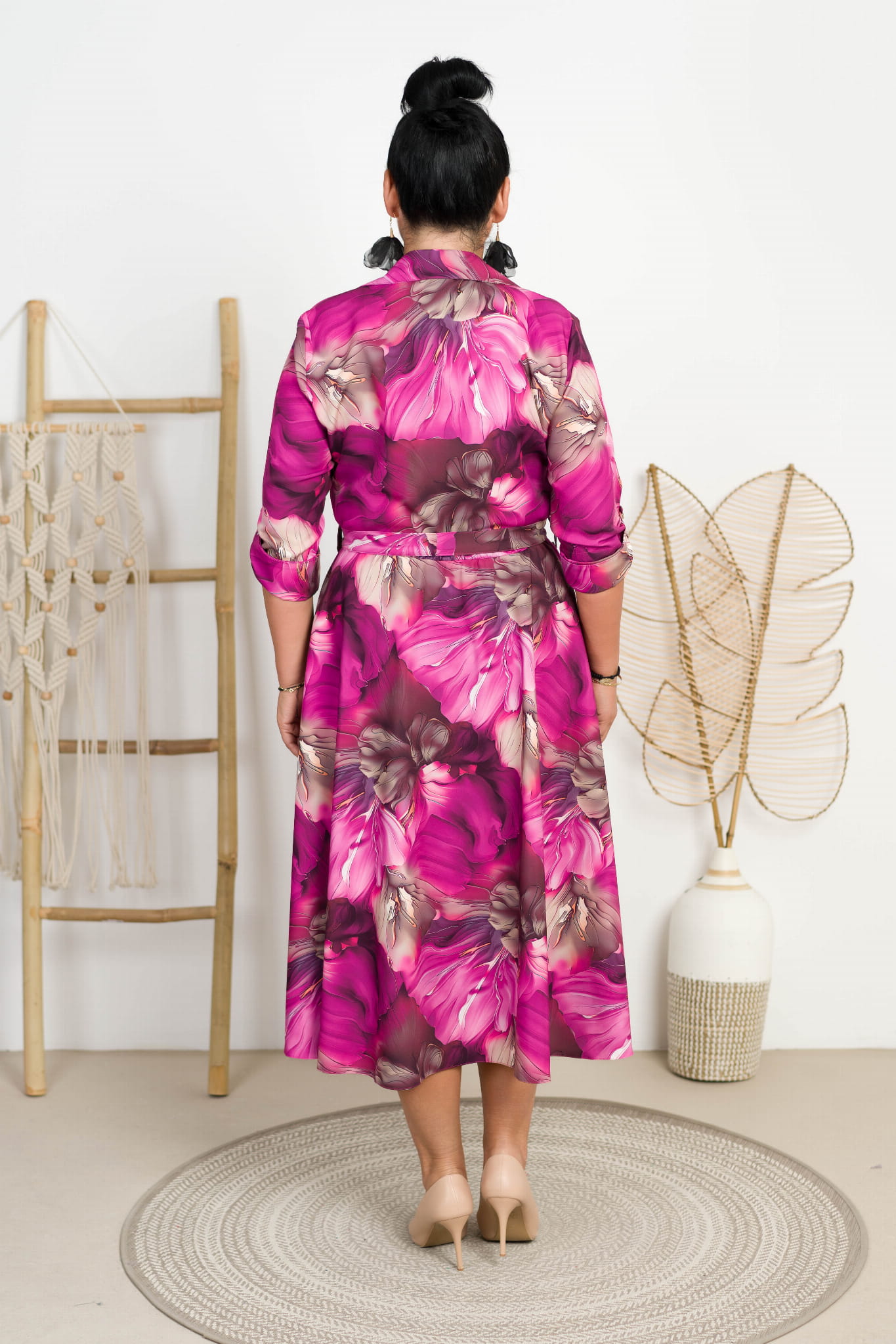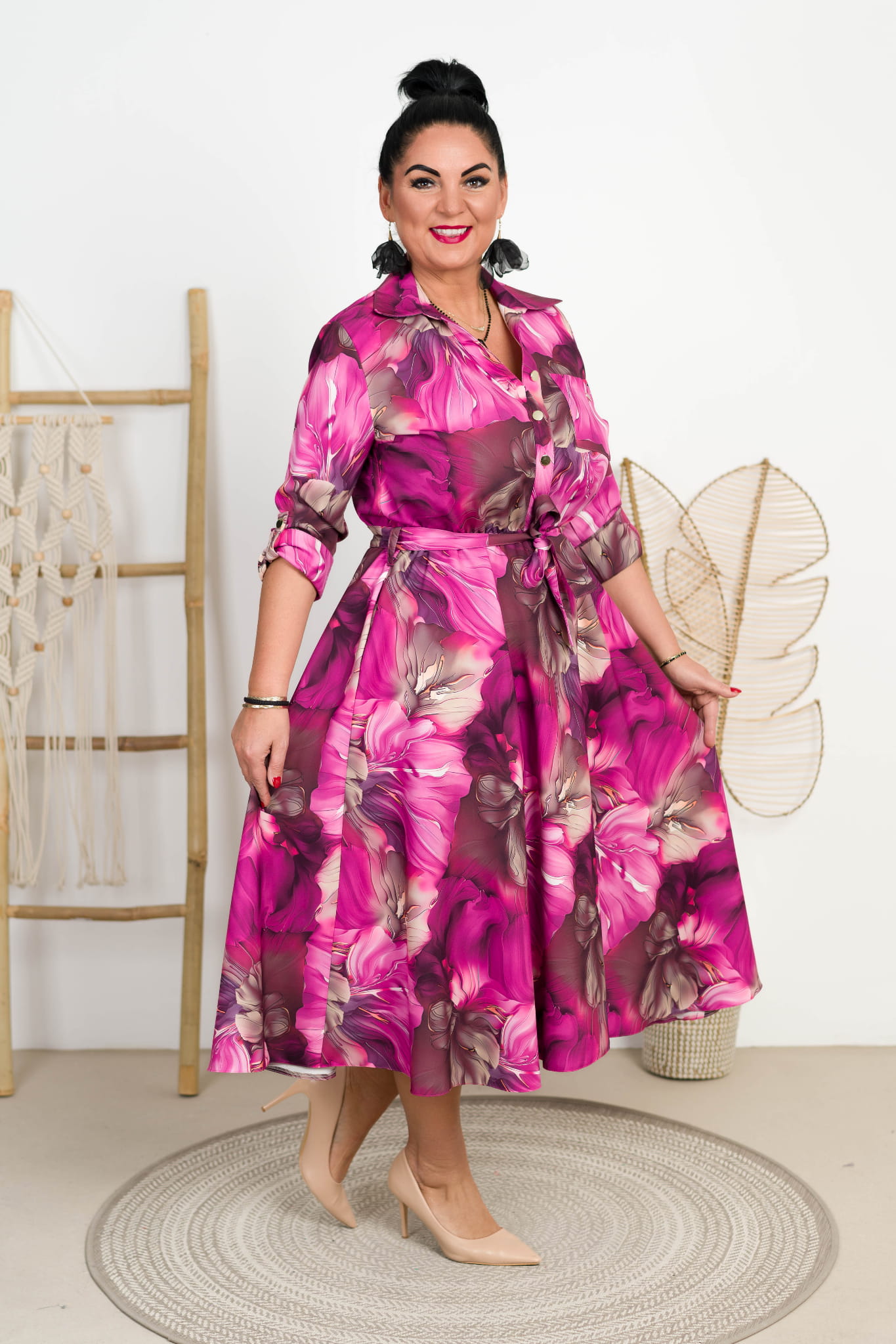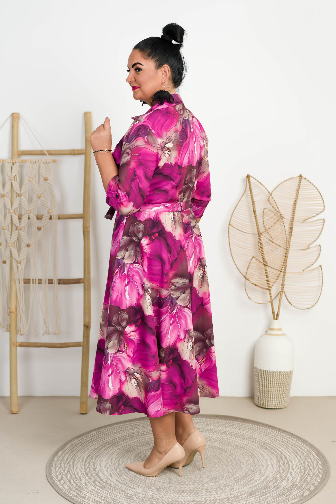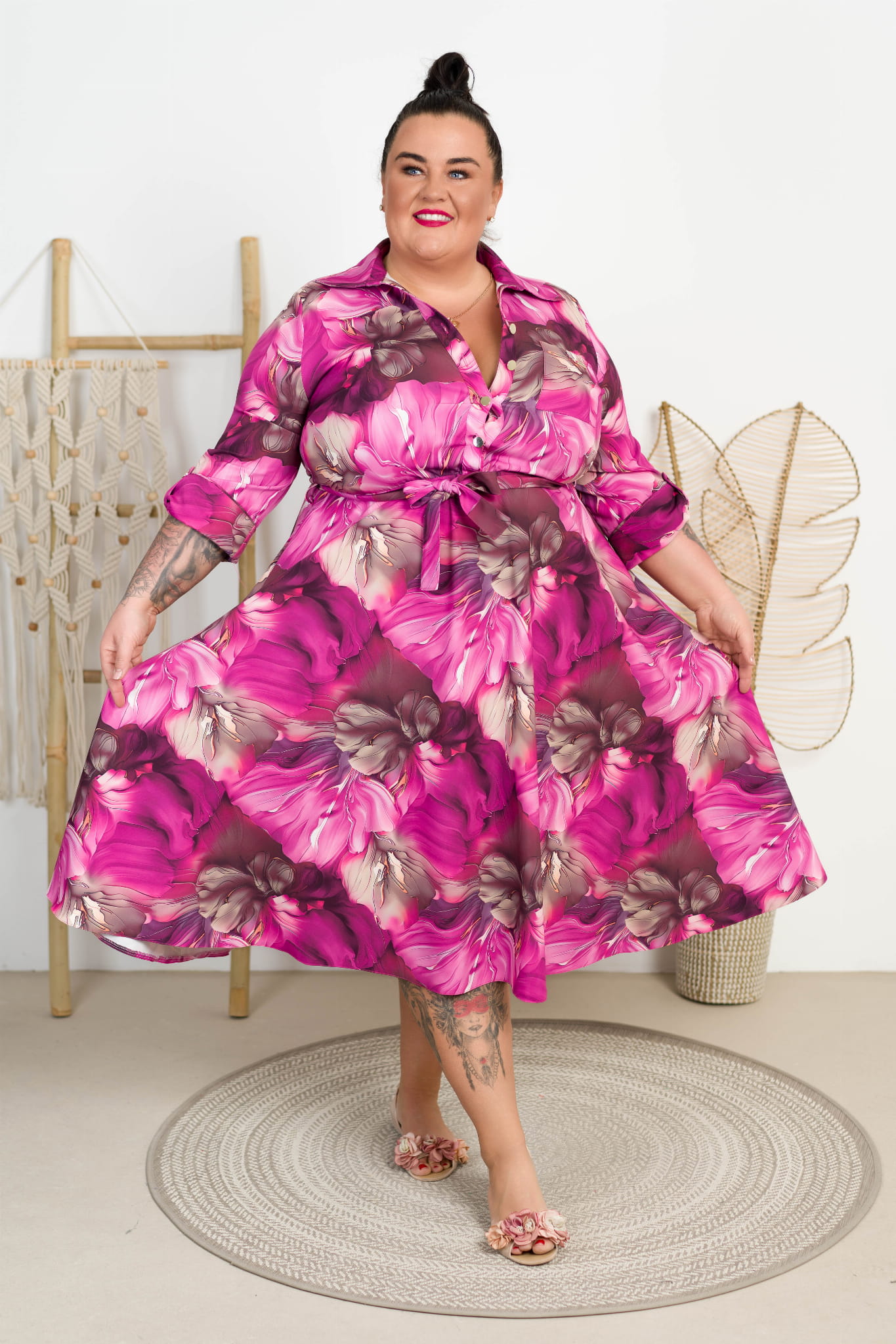 Sukienka z paskiem ILONA różowo-brązowa Plus Size 44-52