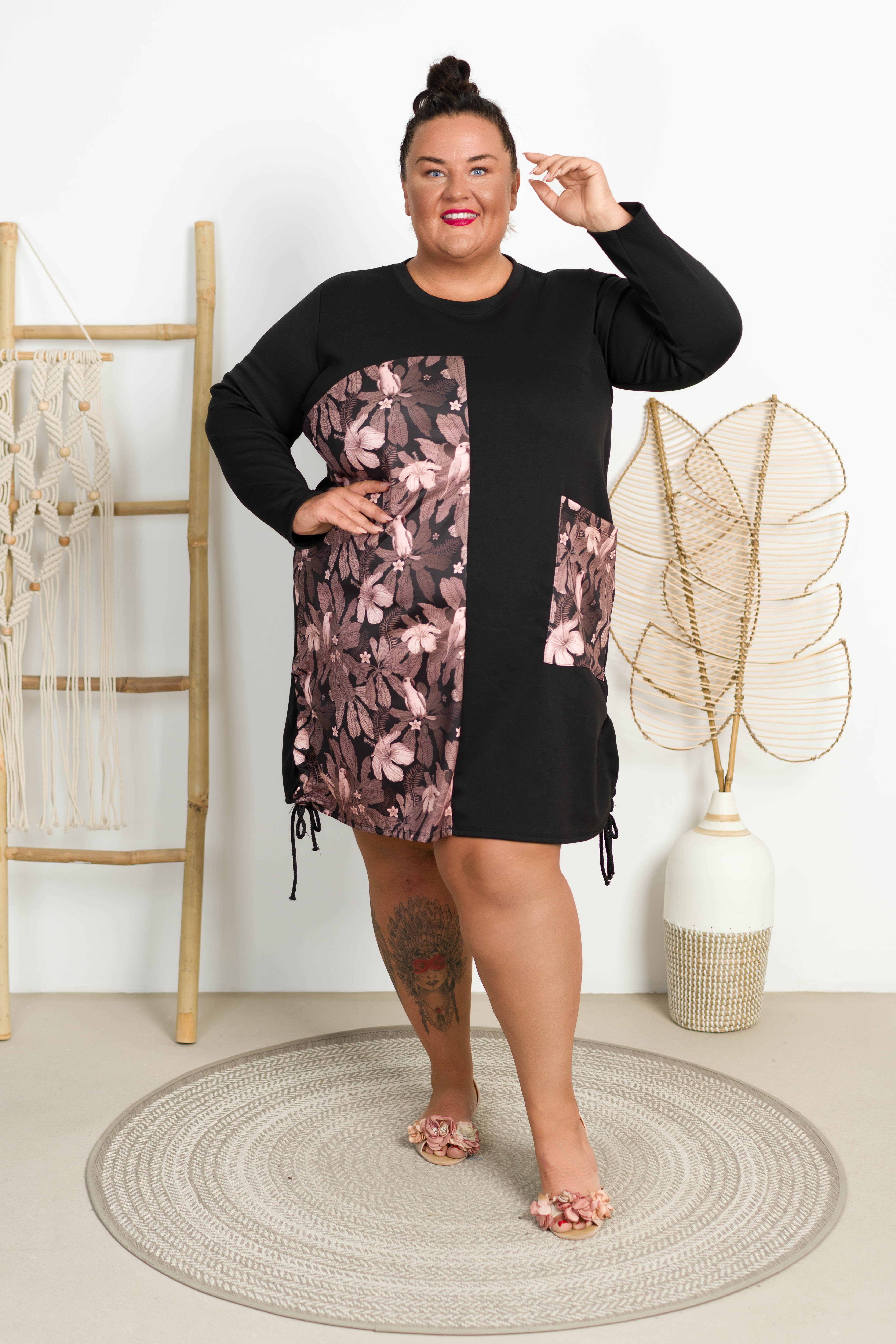 Sukienka MILLO Plus Size to fason oversize z troczkami bo pokach.