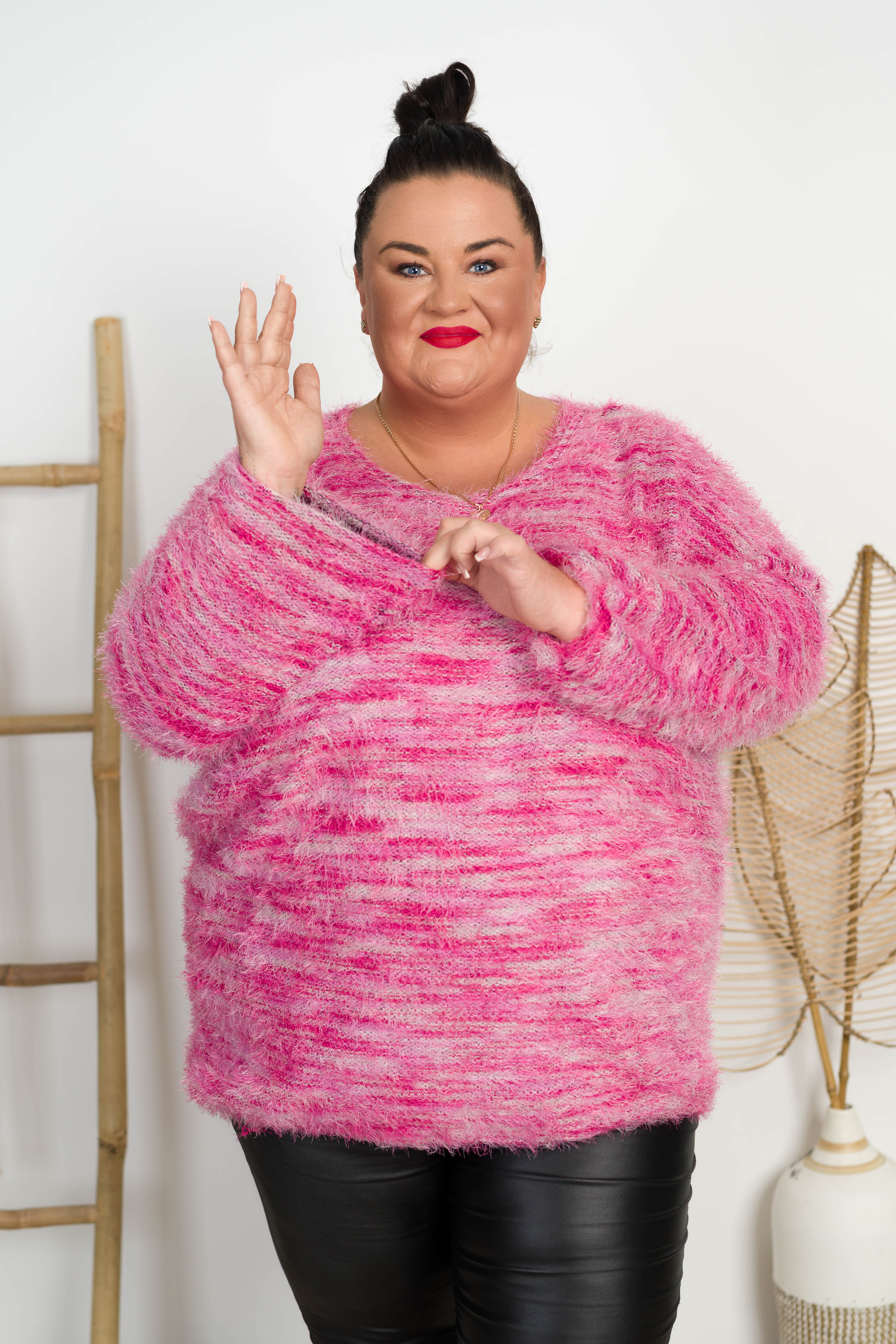 Sweterek Włochacz MATYLDA różowy Plus Size 46/54