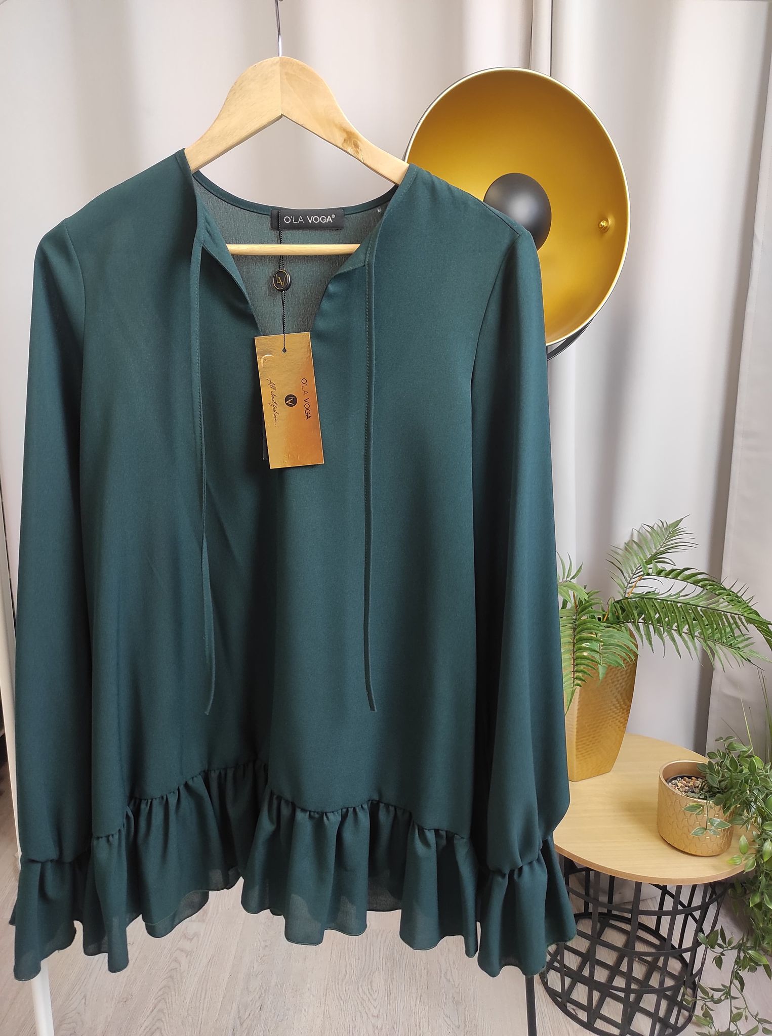 Szyfonowa Bluzka z falbanką VOGA butelkowa Plus Size 38/40