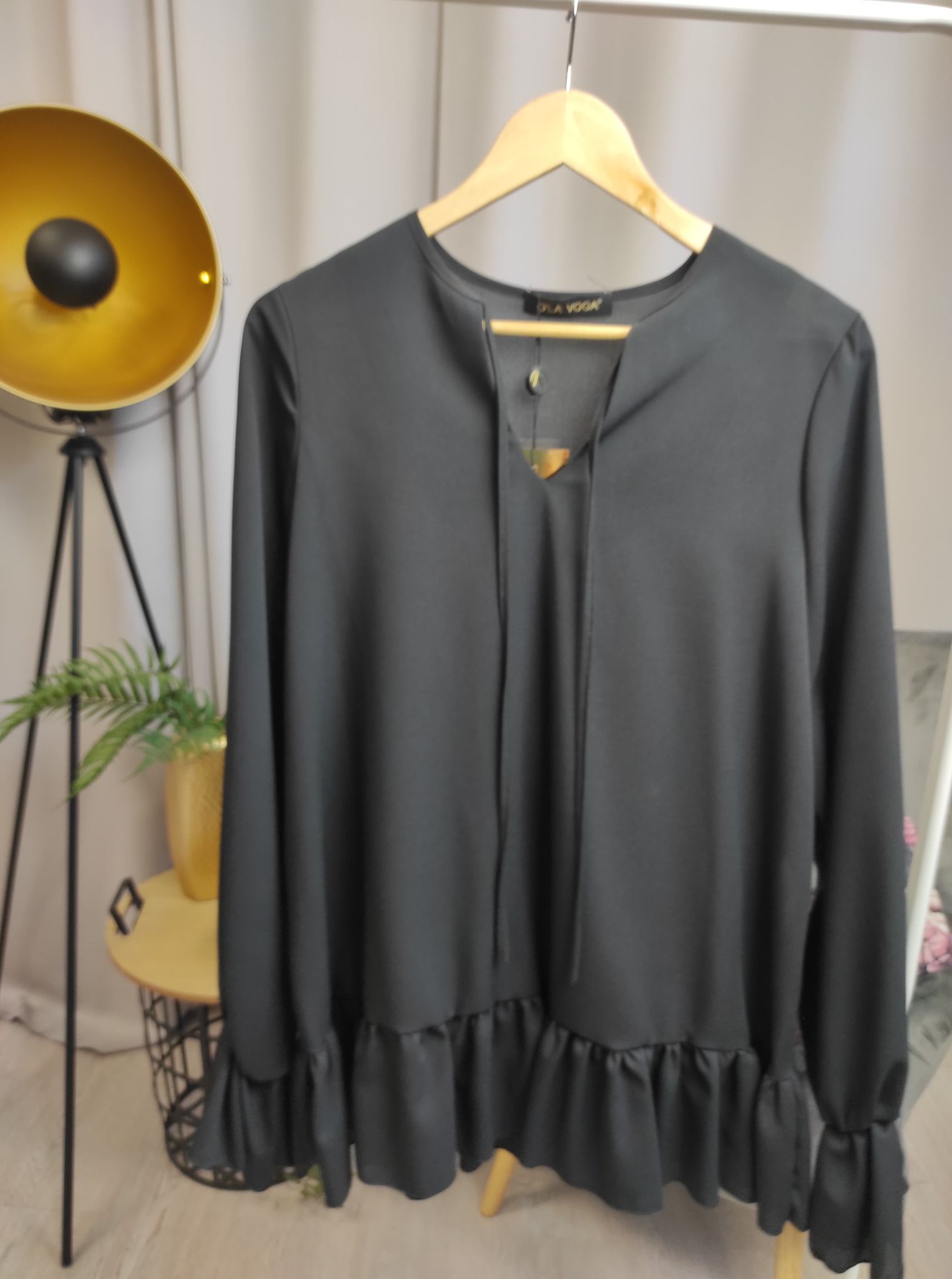 Szyfonowa Bluzka z falbanką VOGA czarna Plus Size 38/40