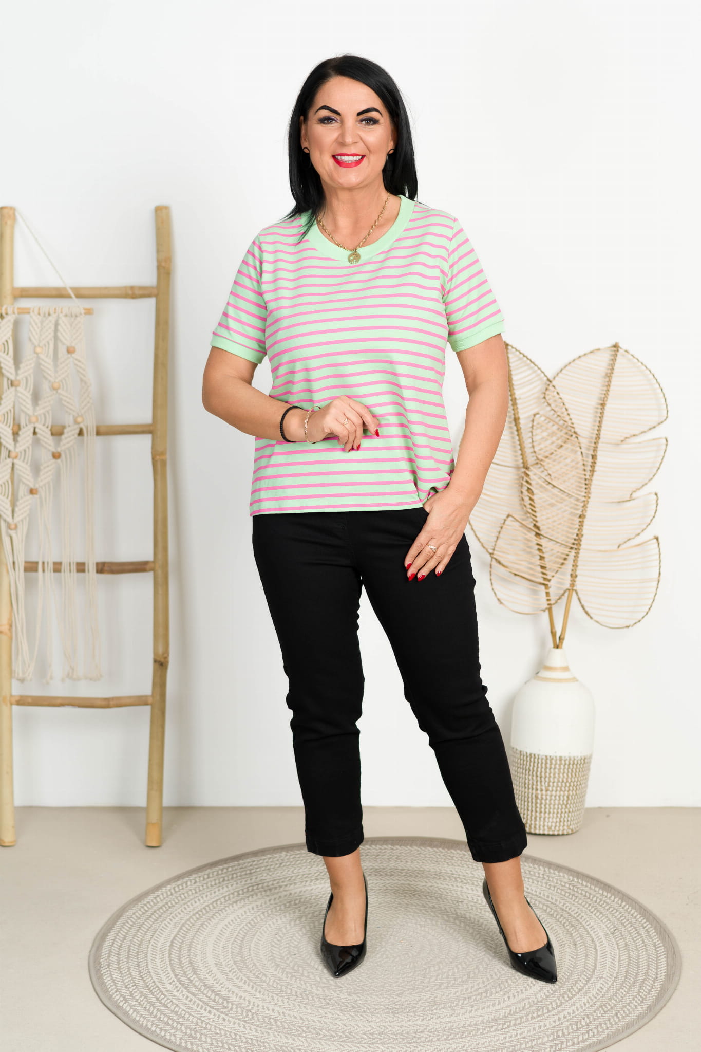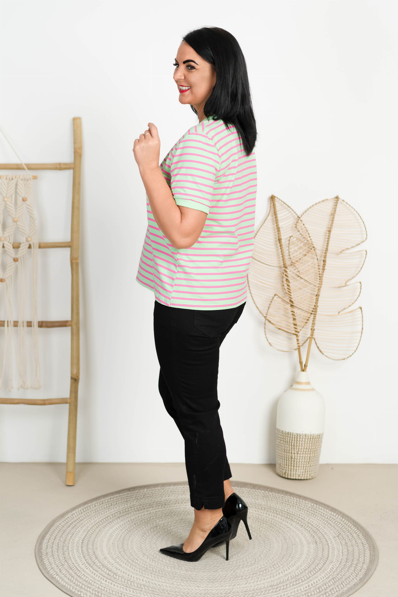 T-Shirt w paski ANASTAZJA pistacja-róż Plus Size 42-54