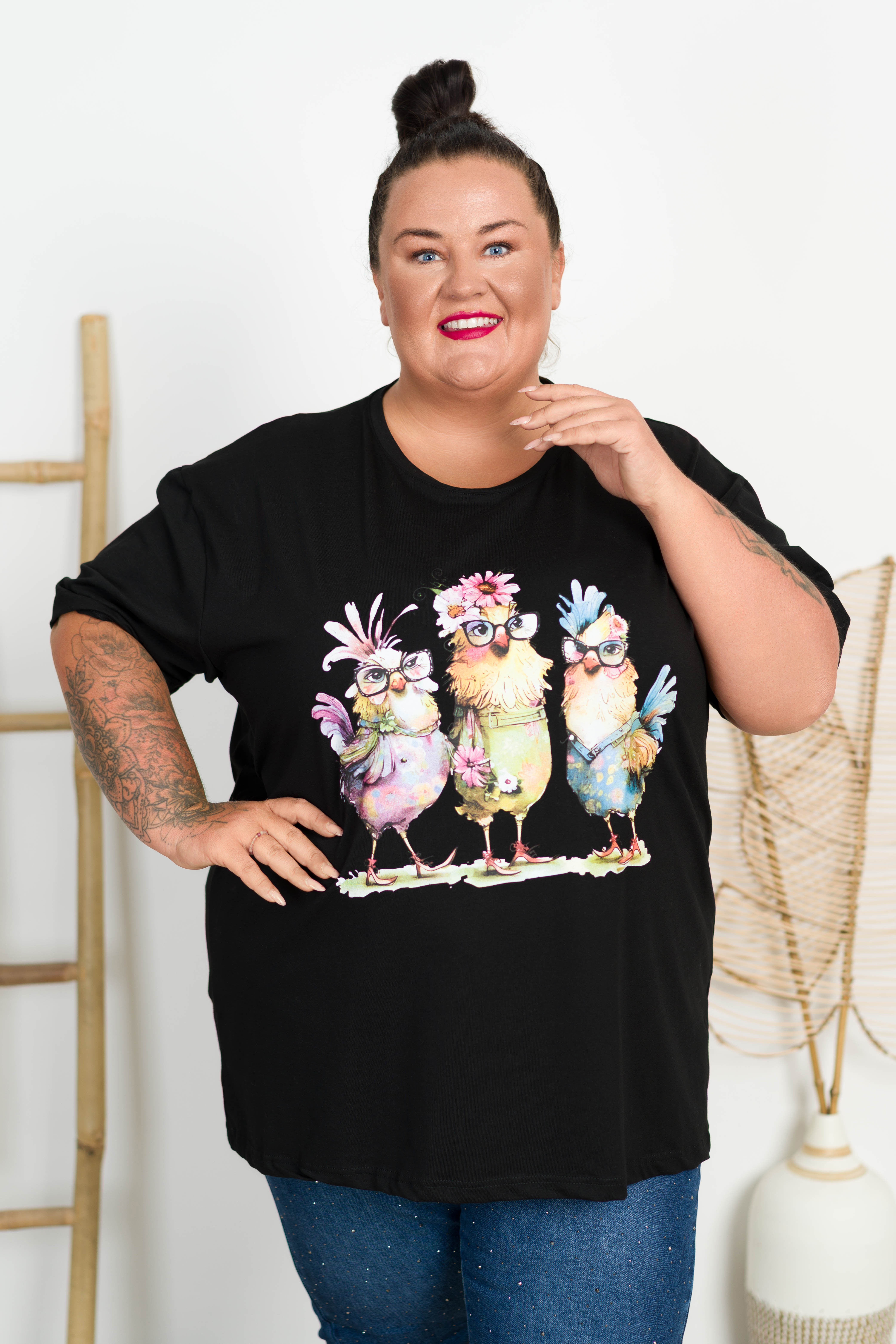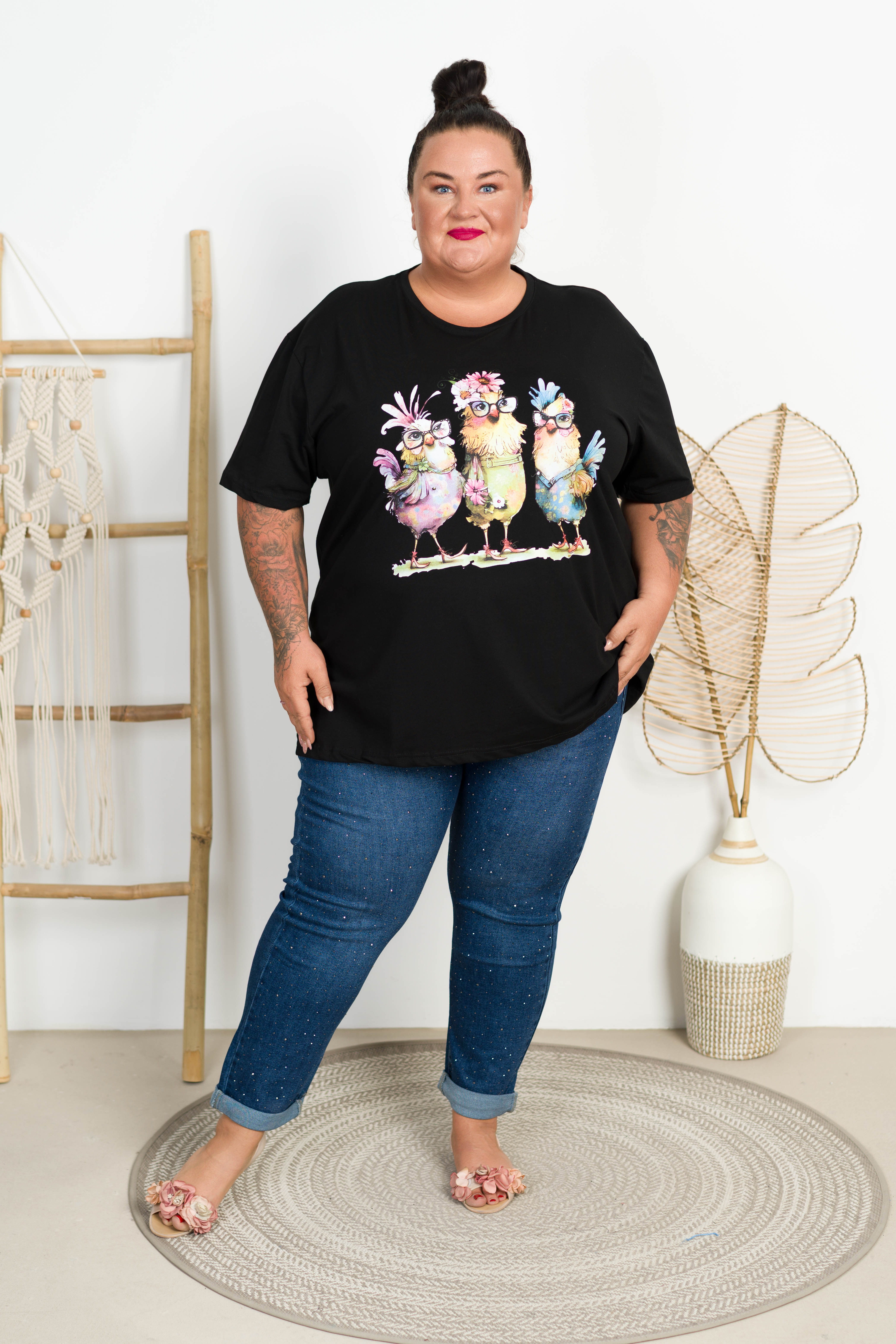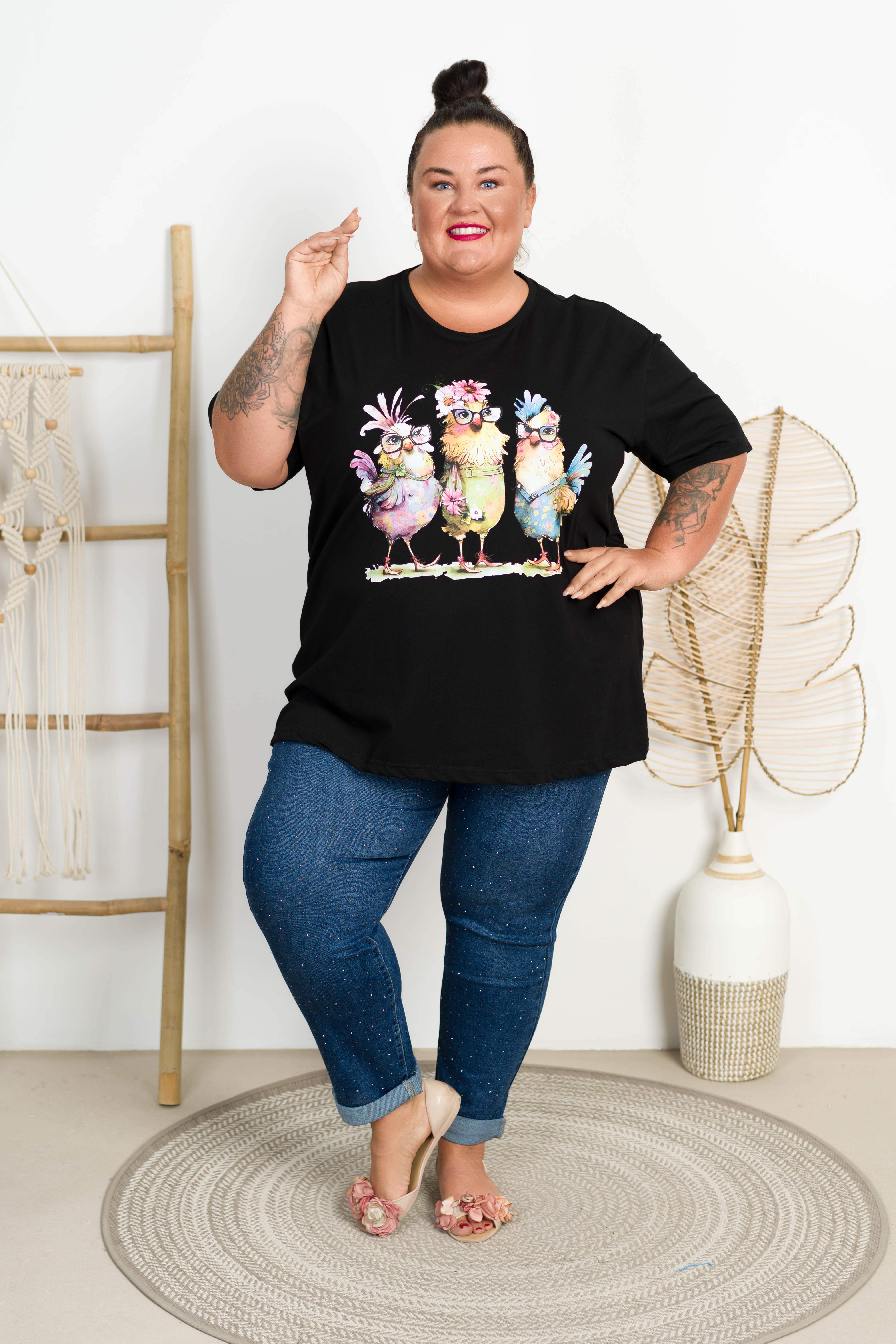 T-shirt VAMOS Kurczaki czarny Plus Size 48/54