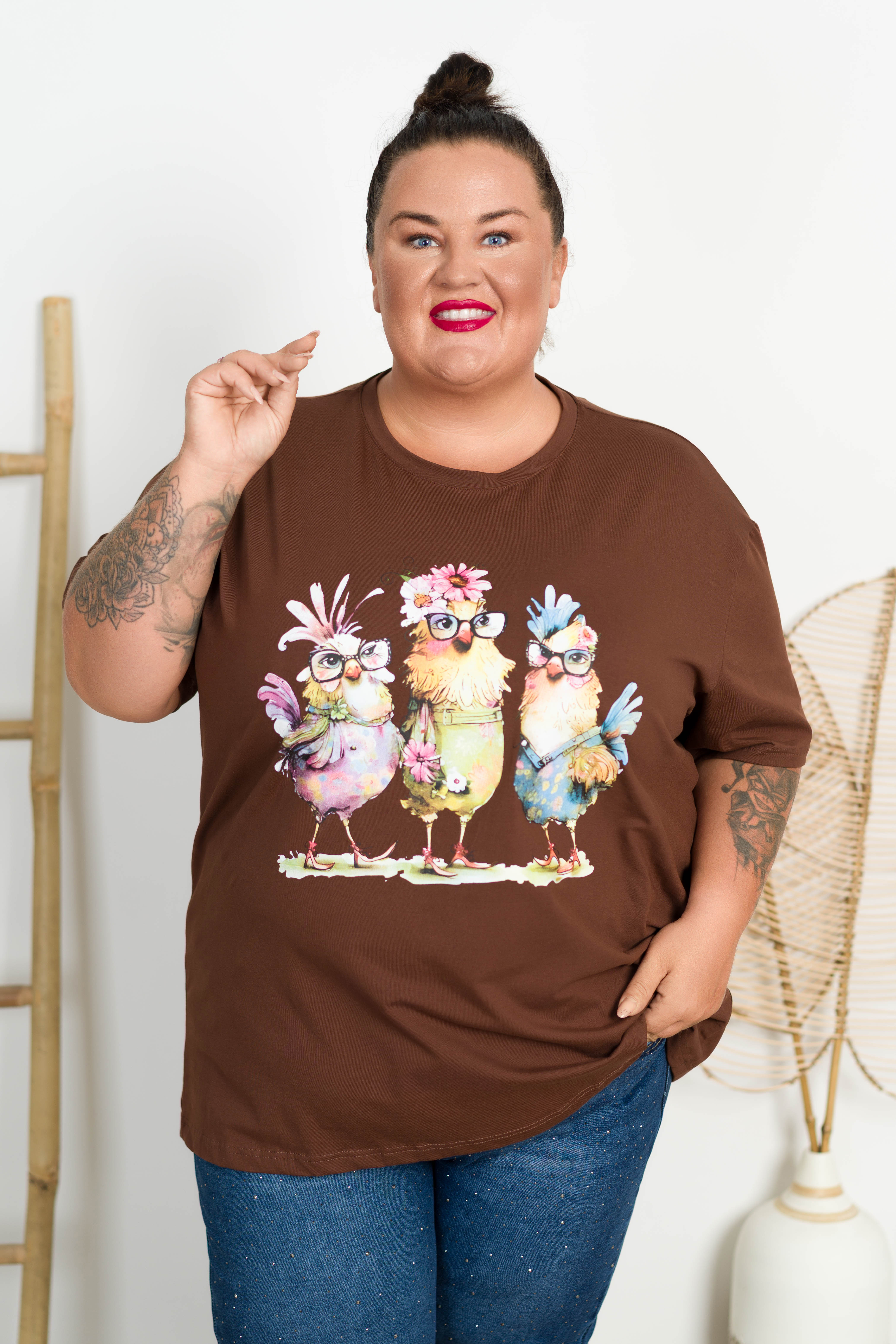 T-shirt VAMOS Kurczaki czekoladowy Plus Size 48/54
