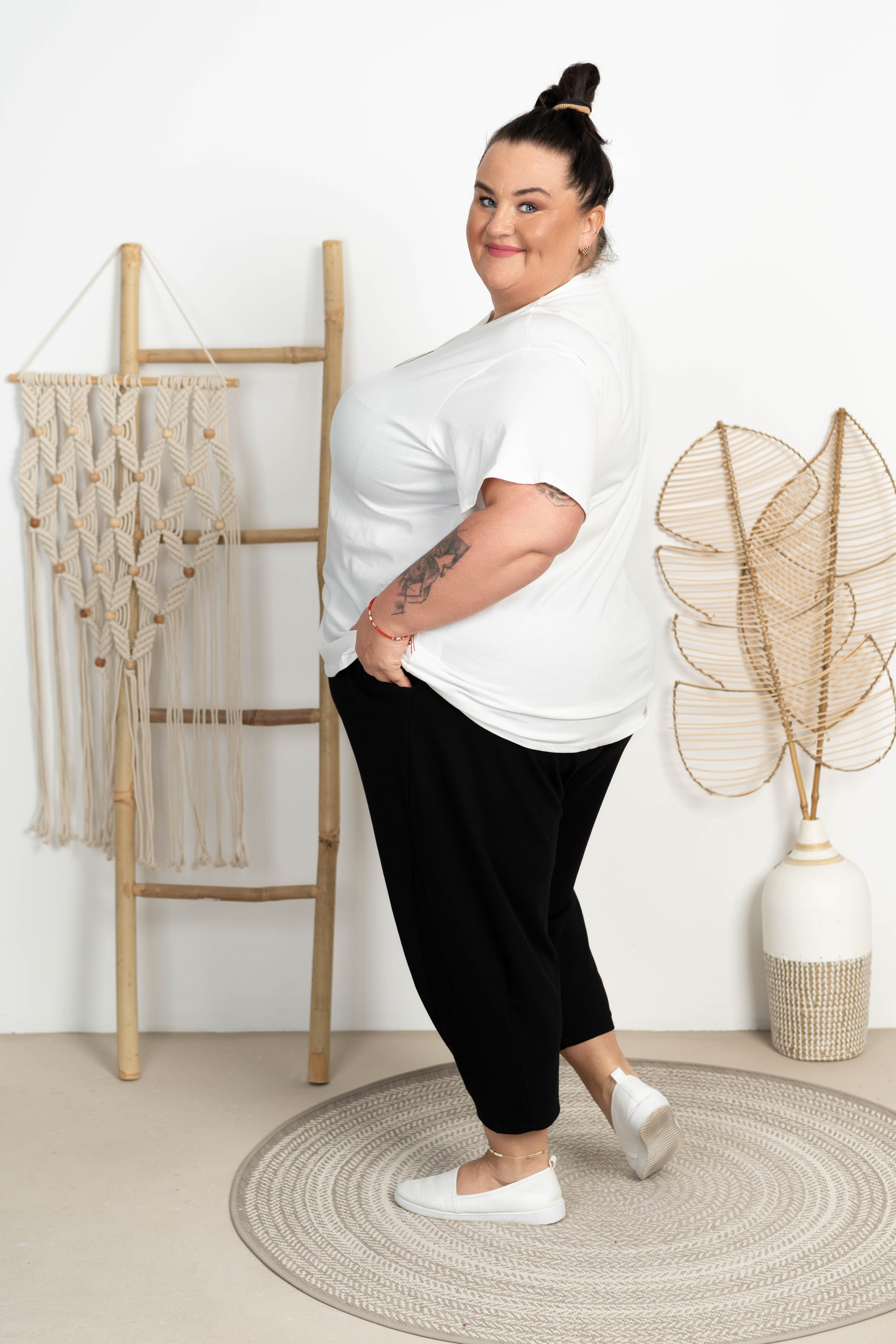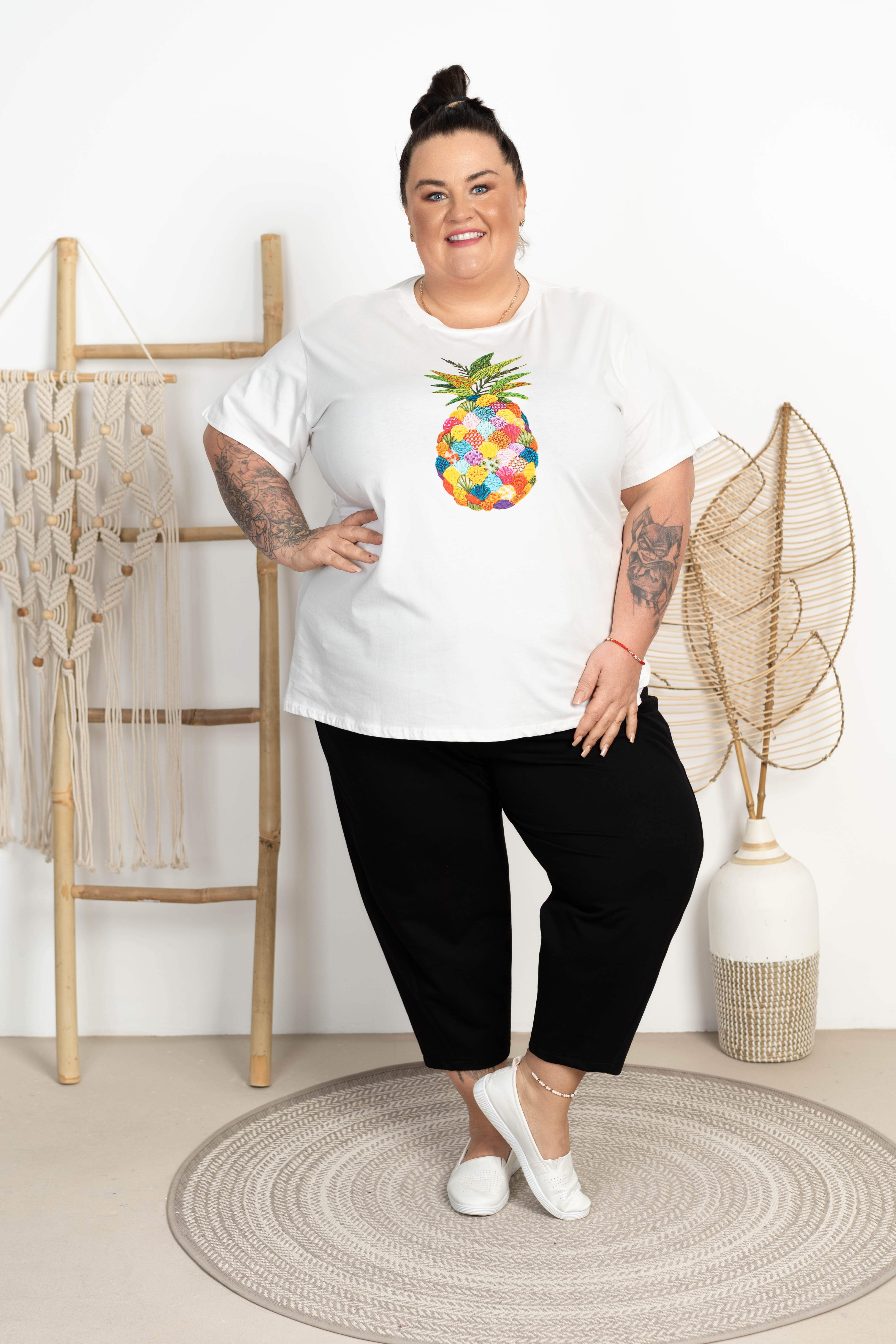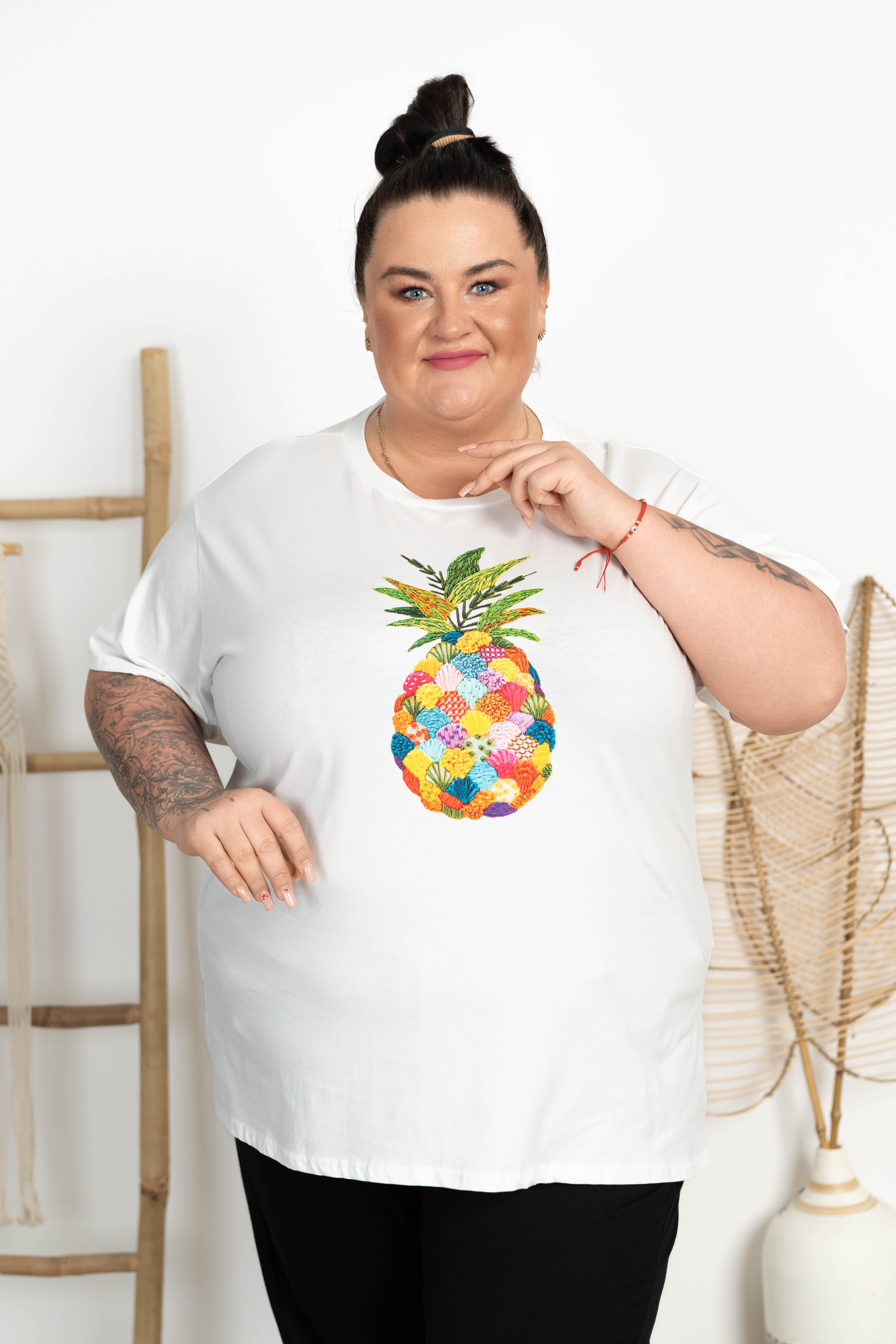 T-shirt Vneck VIRAL Ananas biała Plus Size 48/54