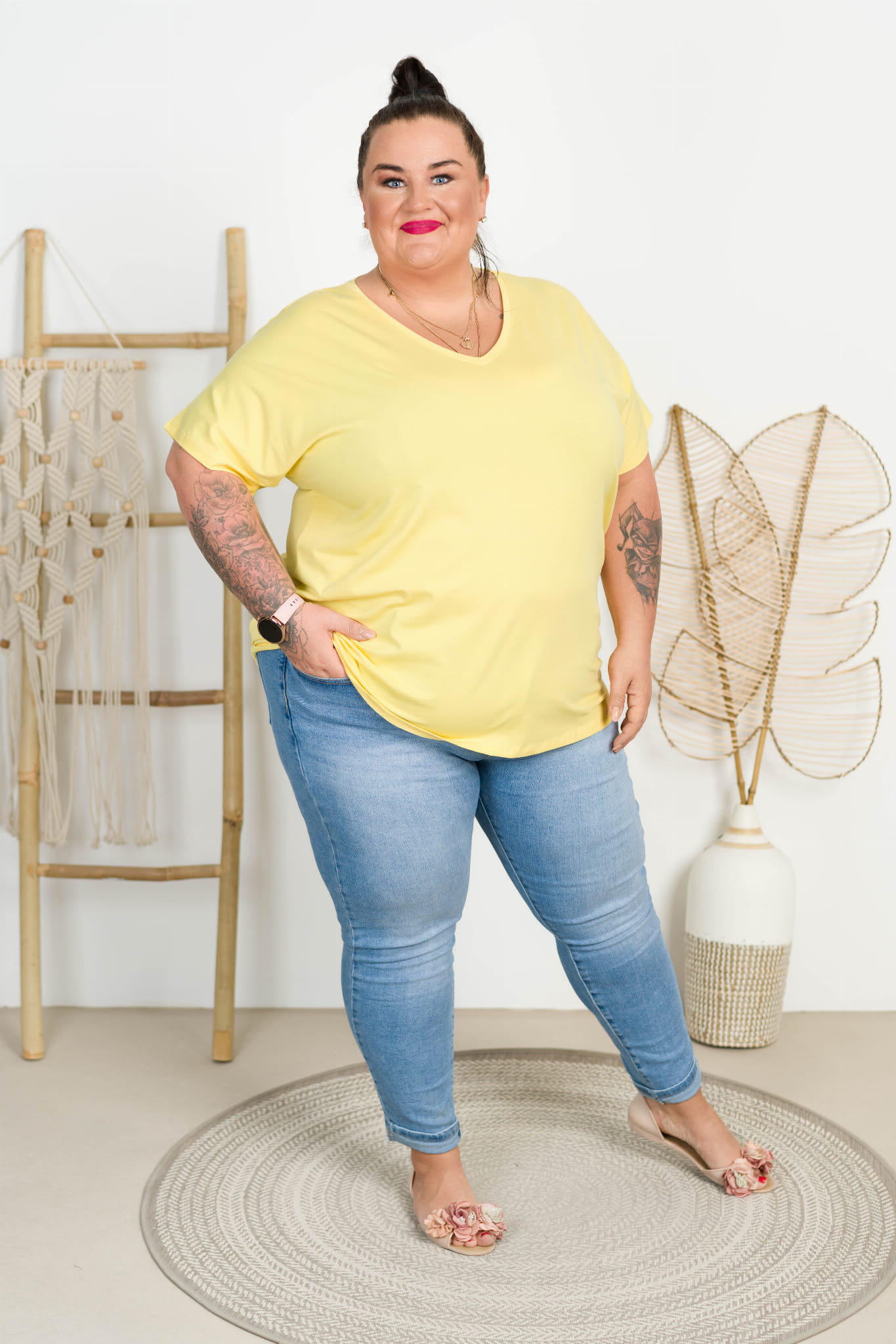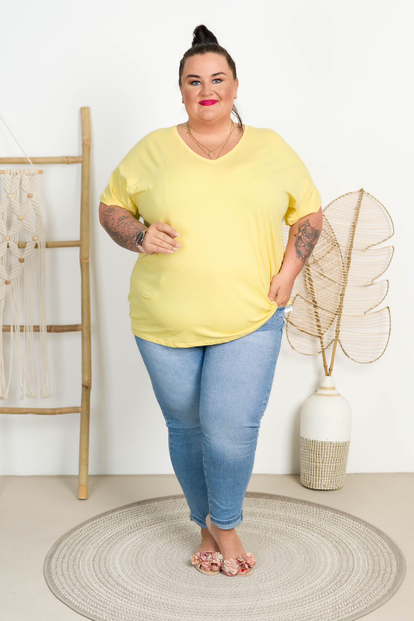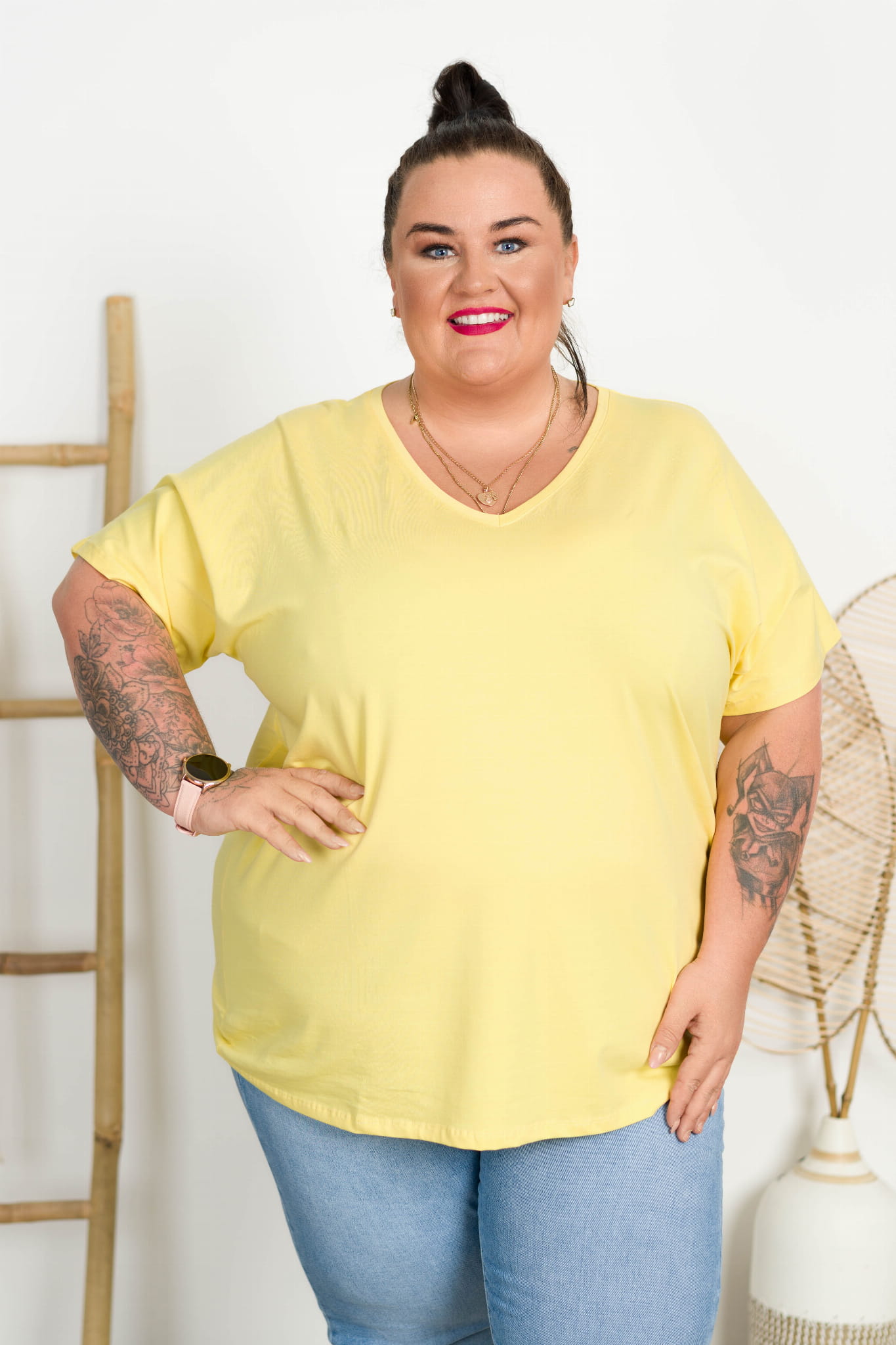 T-shirt Vneck WIWI cytrynowy Plus Size 48/54