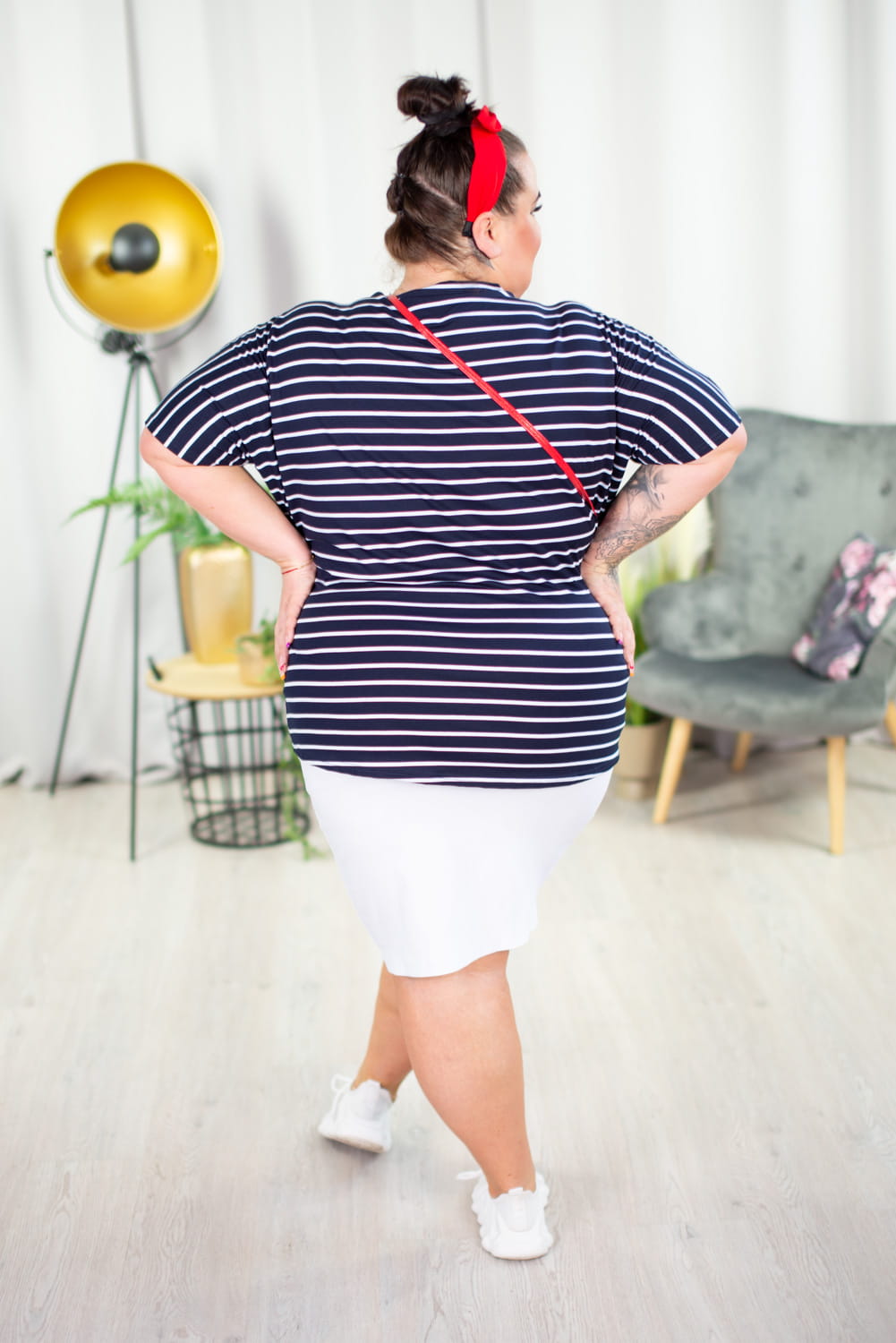 T-shirt Vneck w paski LILU cekinowe serce Plus Size 44-54