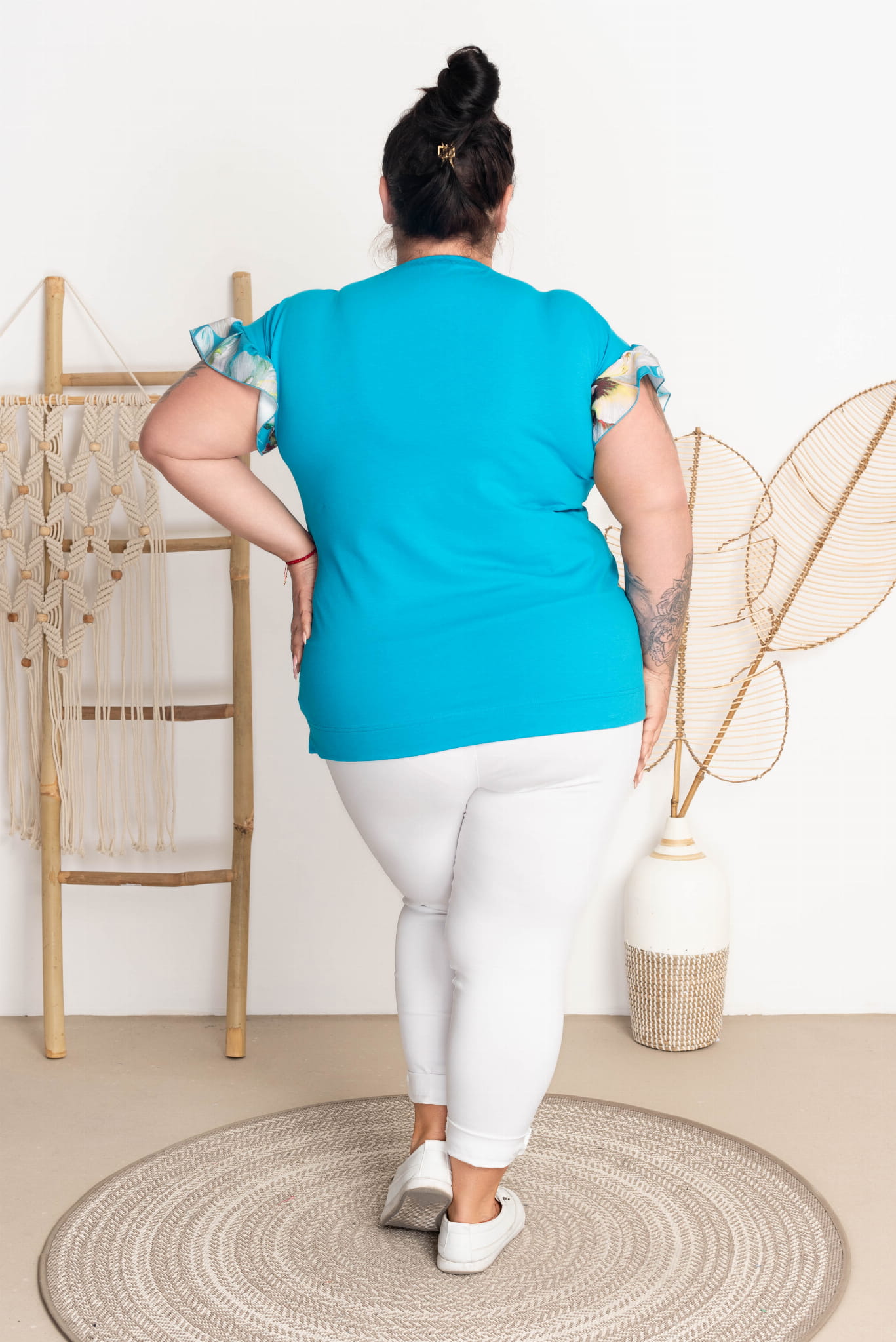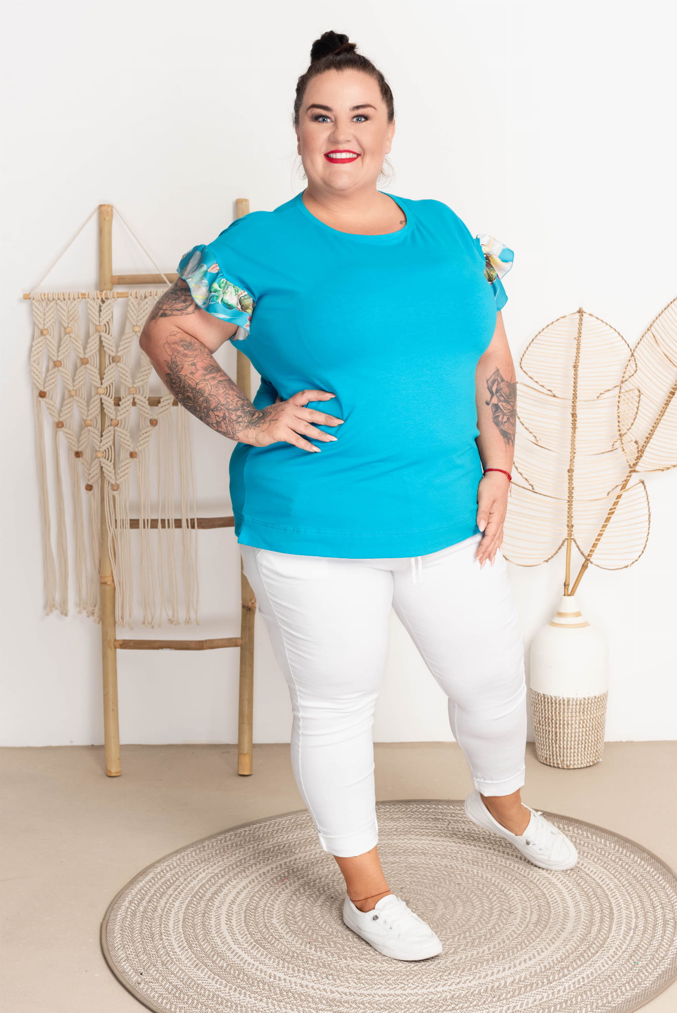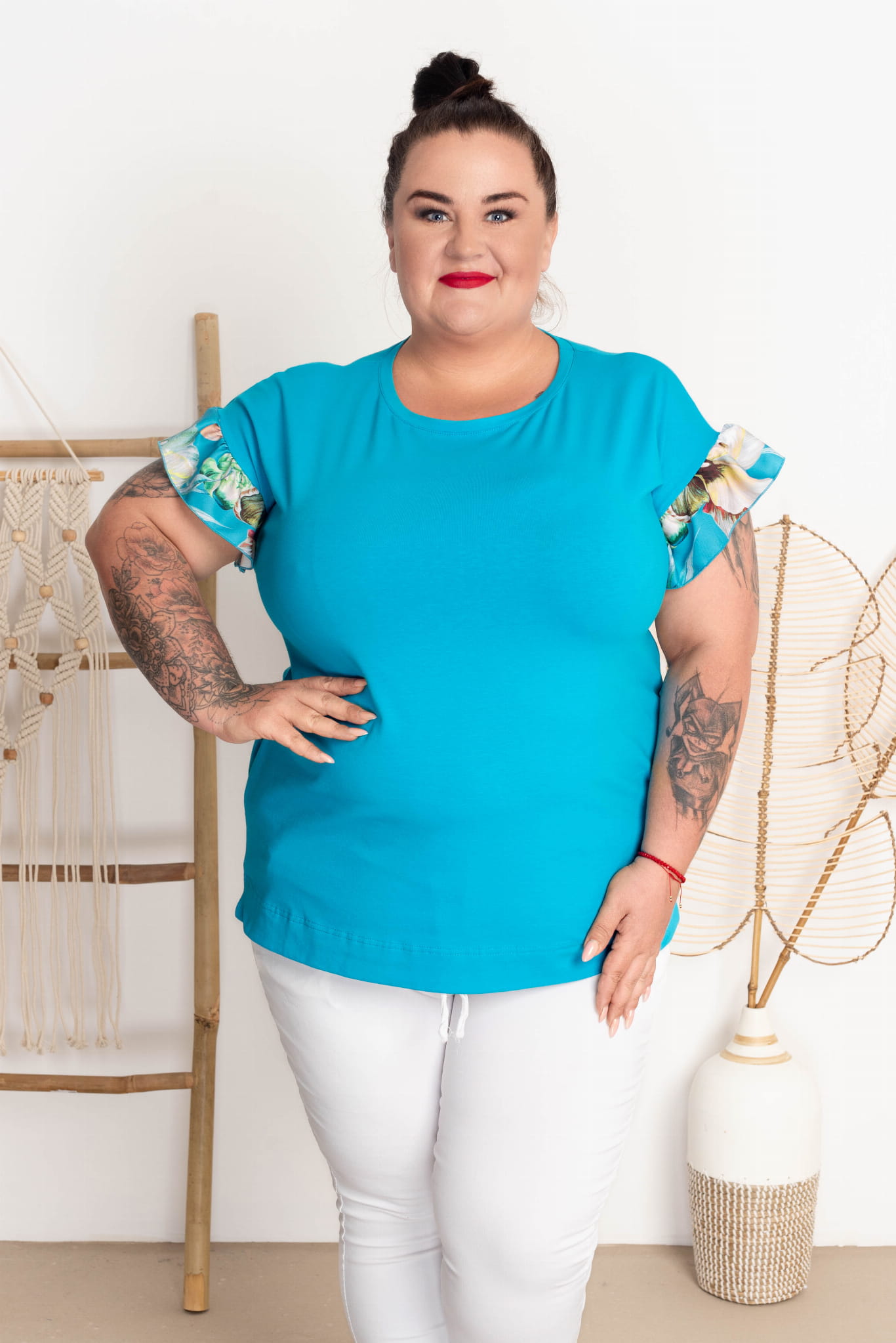 T-shirt z falbankami FERBY turkus Plus Size 42-52