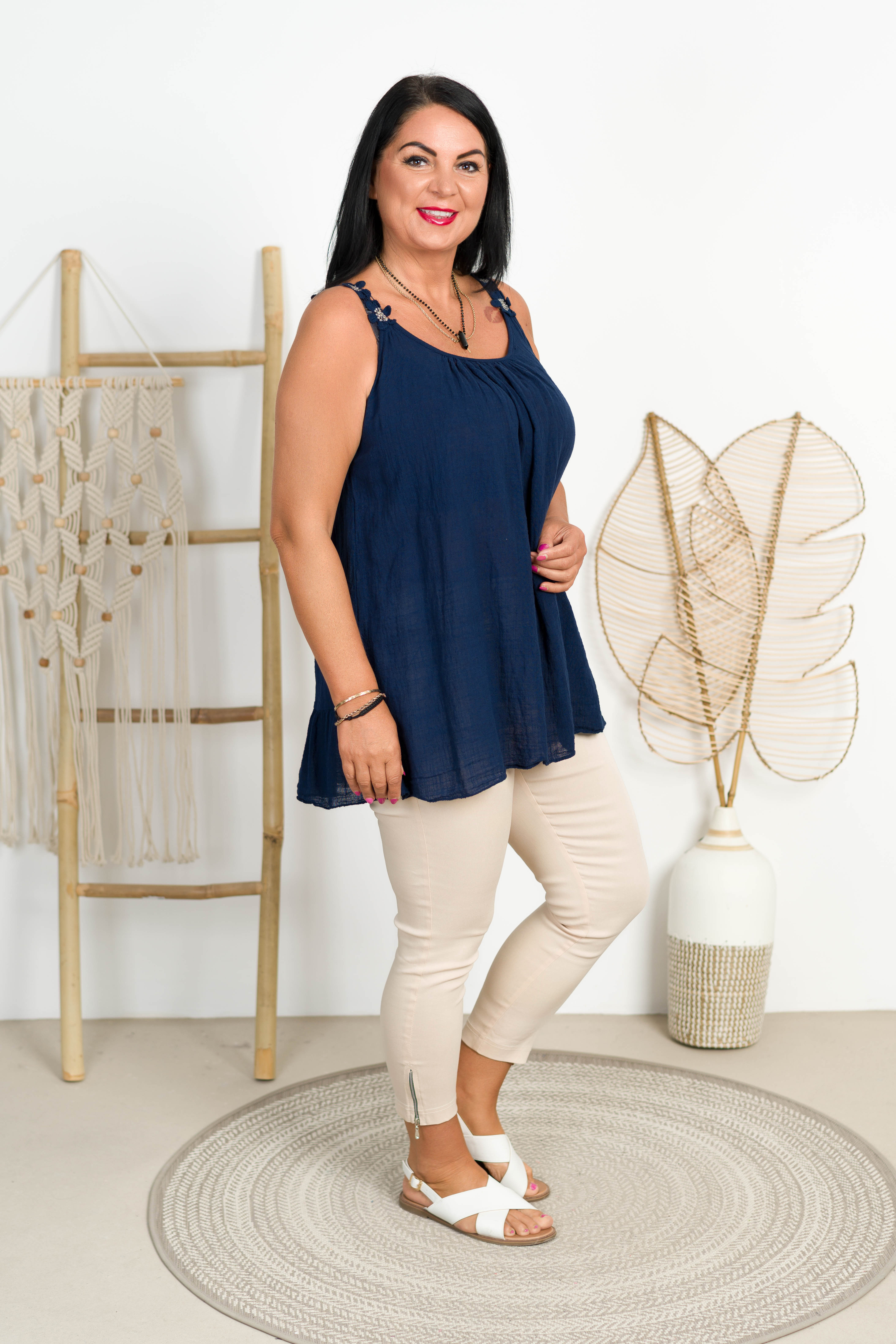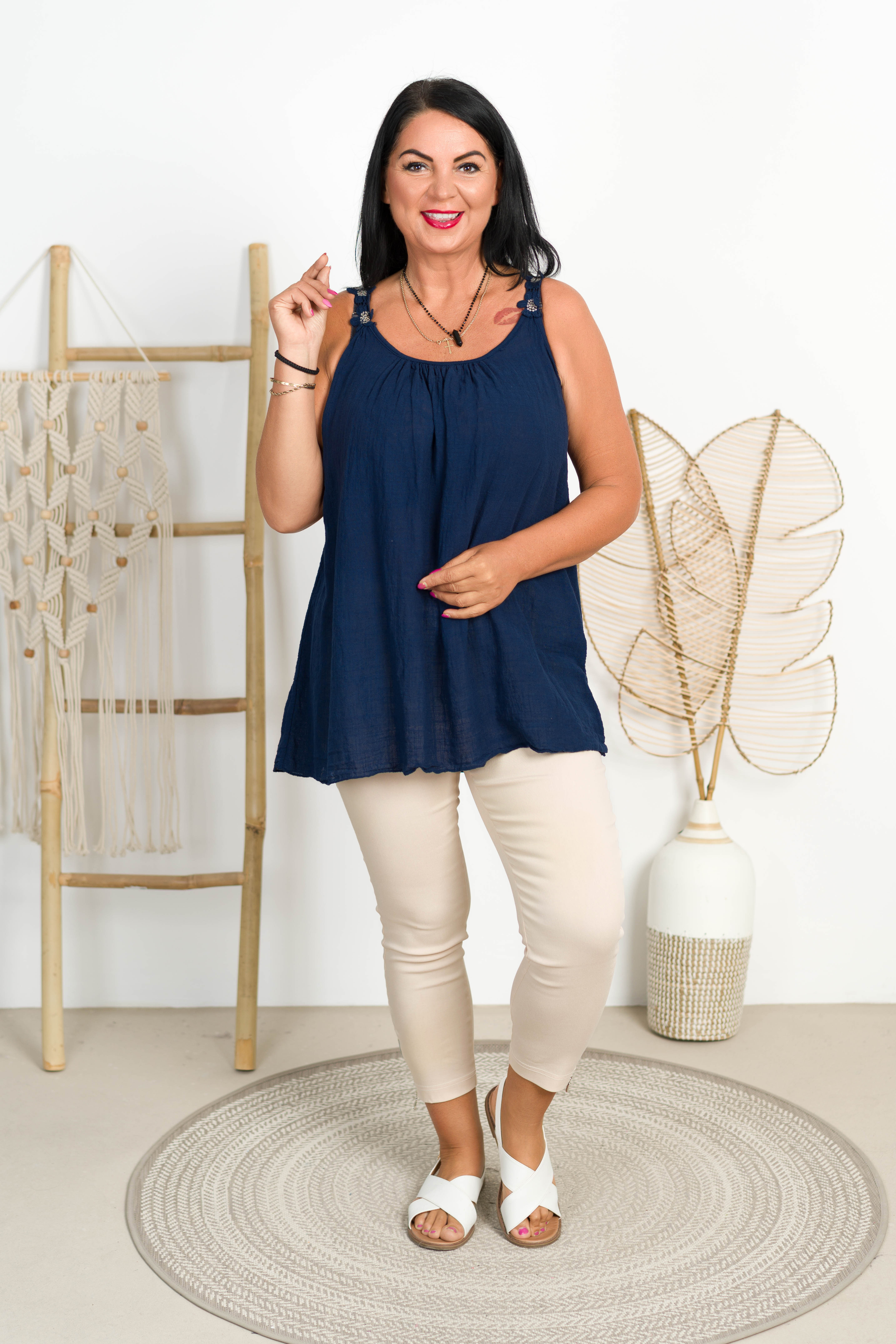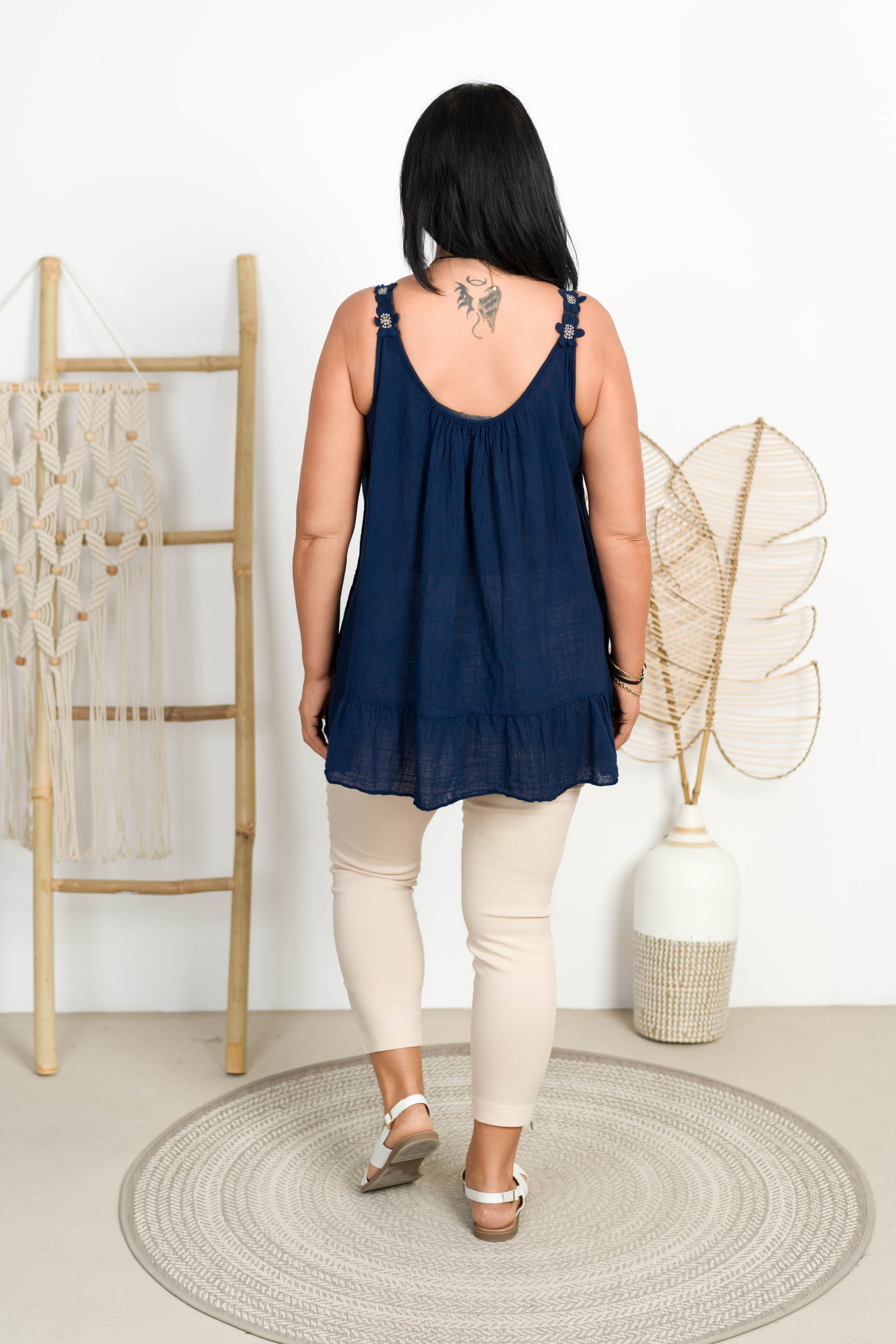 Tetrowy Top z falbanką TERI granatowy Plus Size 46/52
