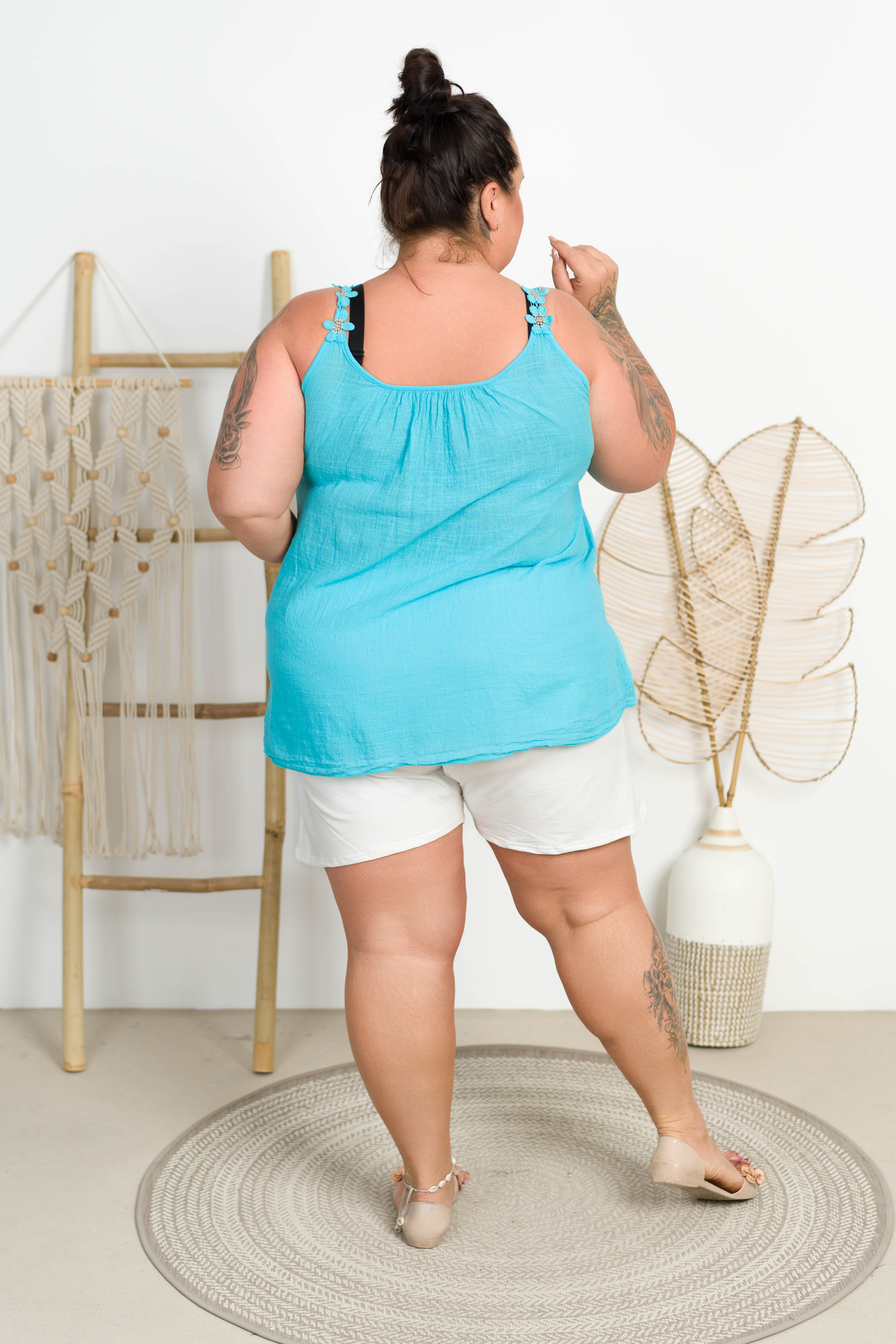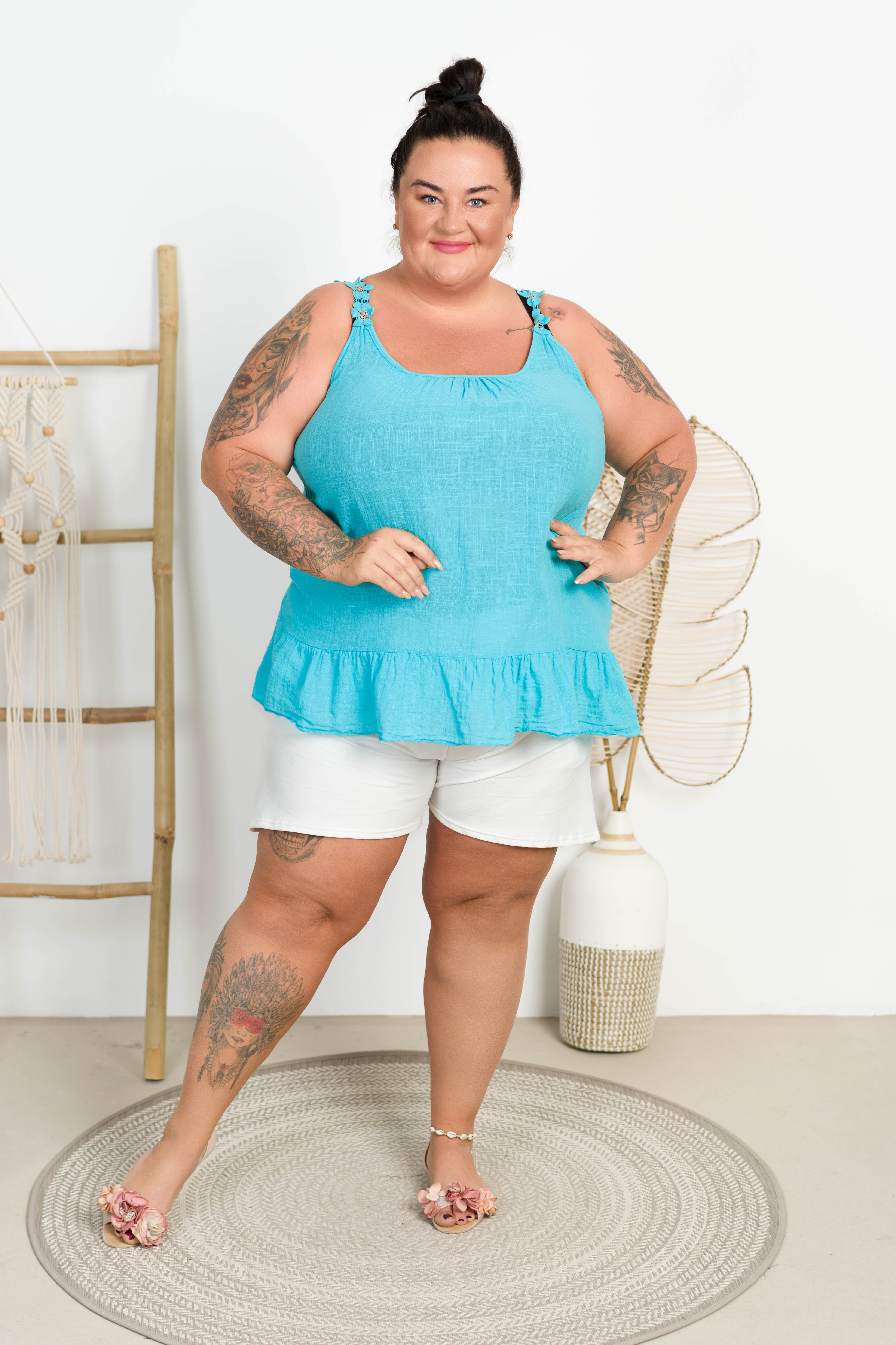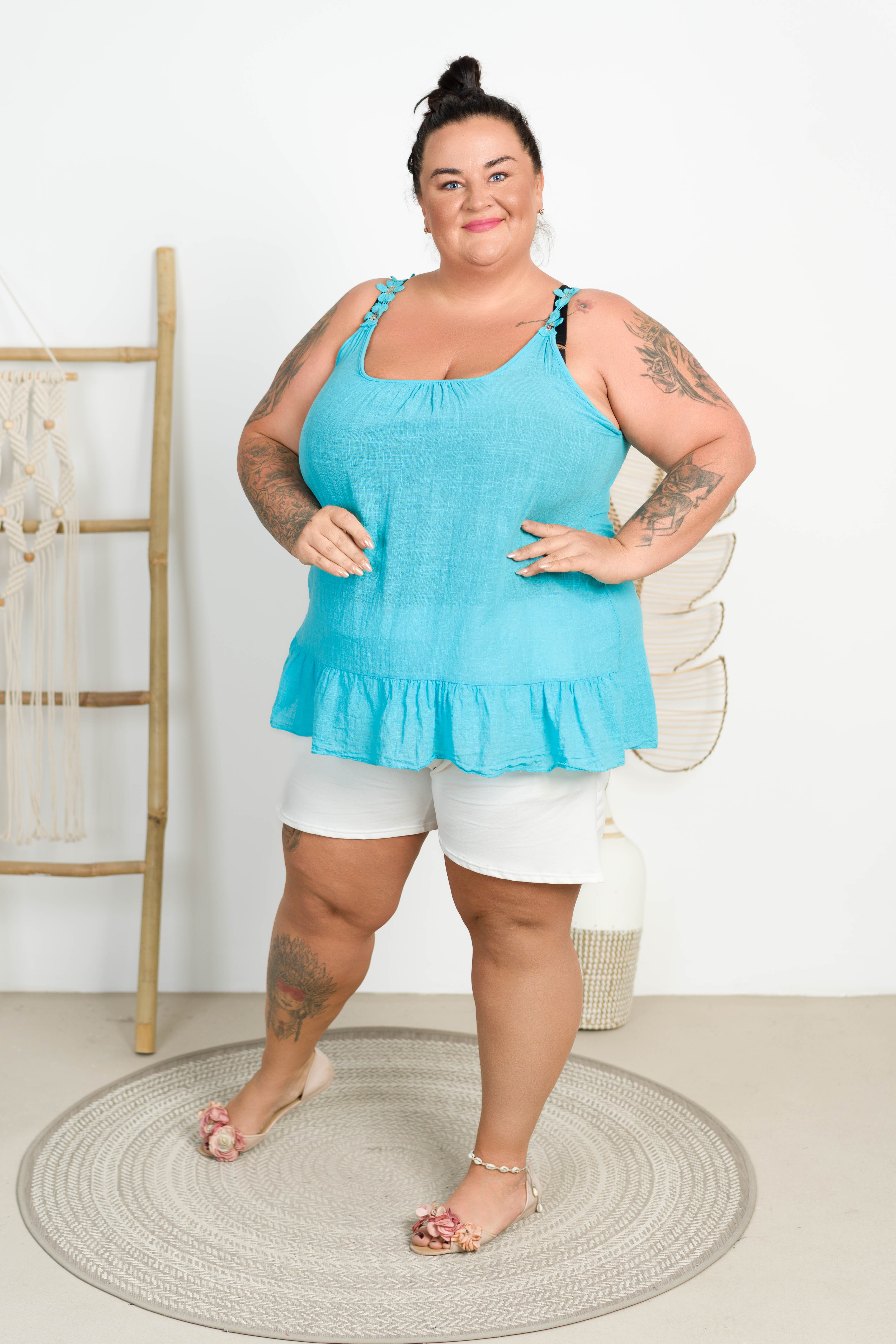 Tetrowy Top z falbanką TERI turkusowy Plus Size 46/52
