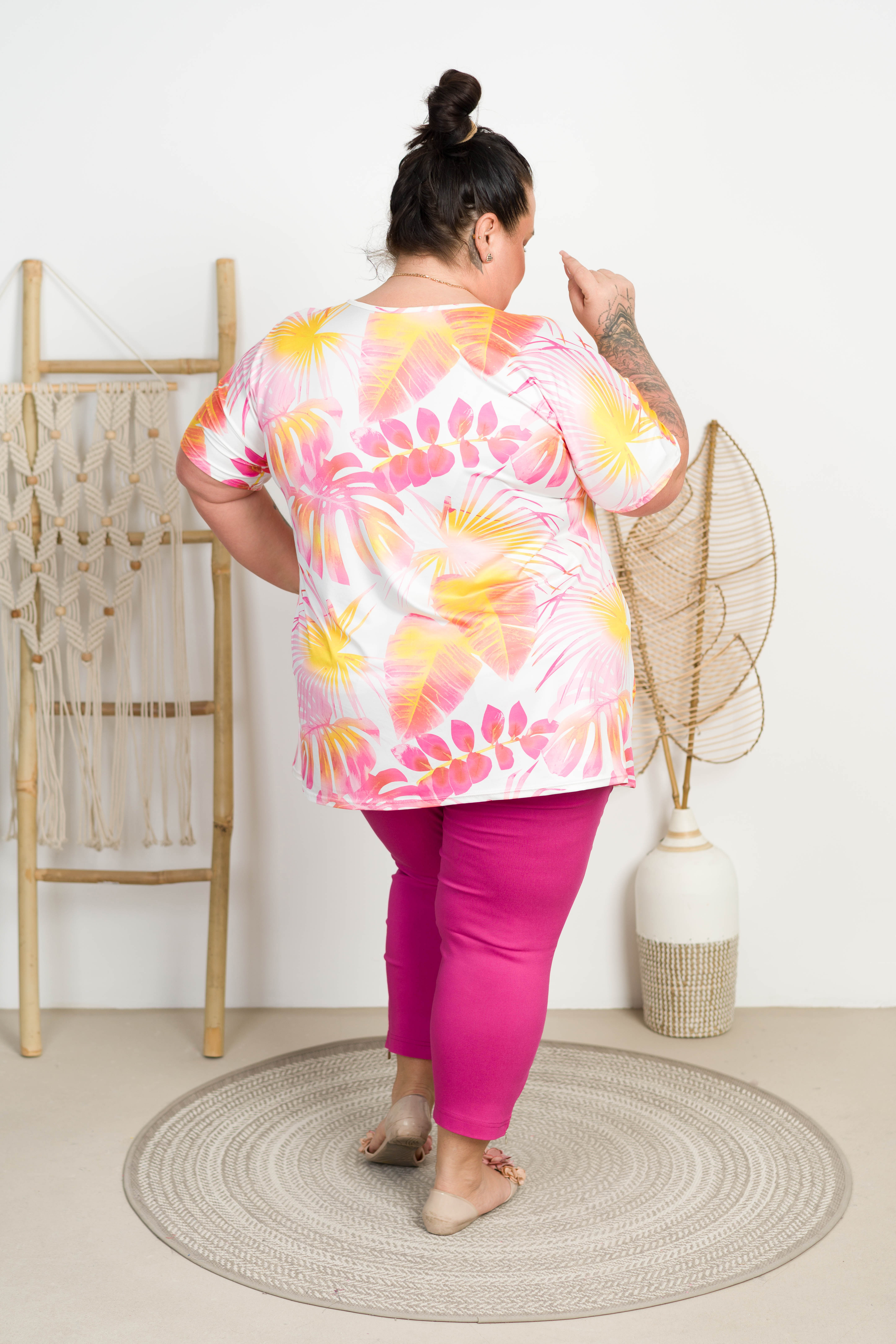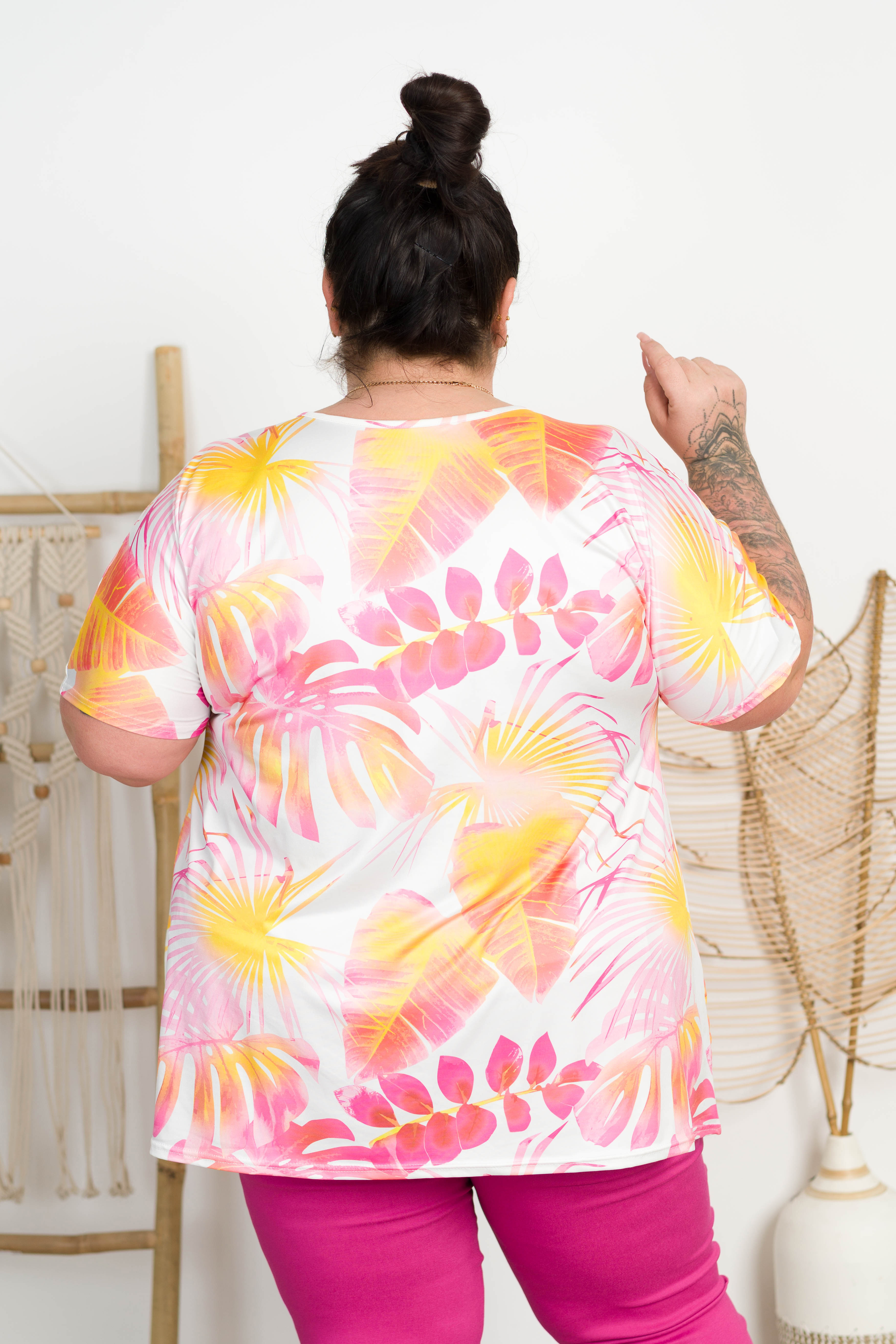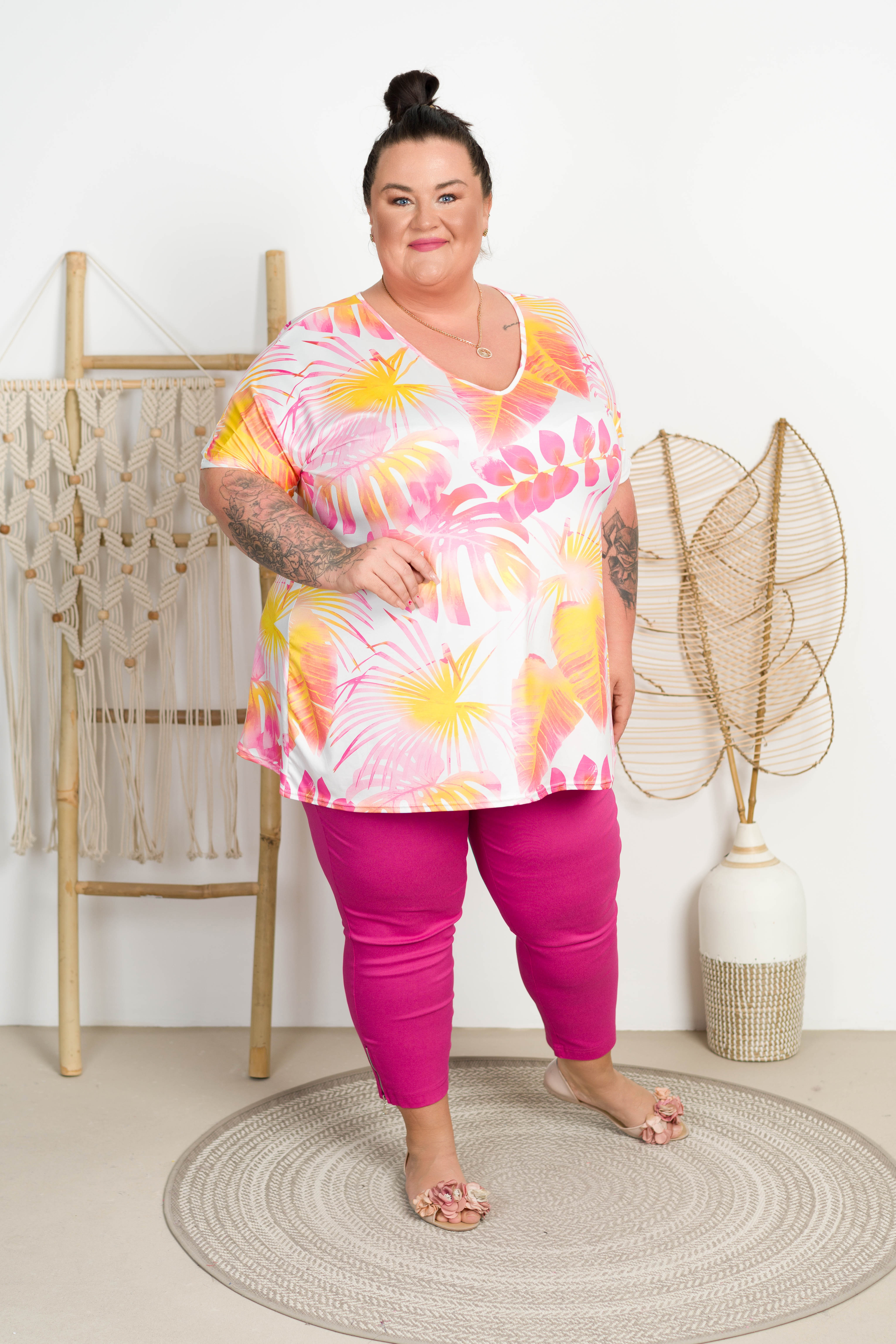 Tunika trapezowa VNeck TREVOR liście róż Plus Size 50/56