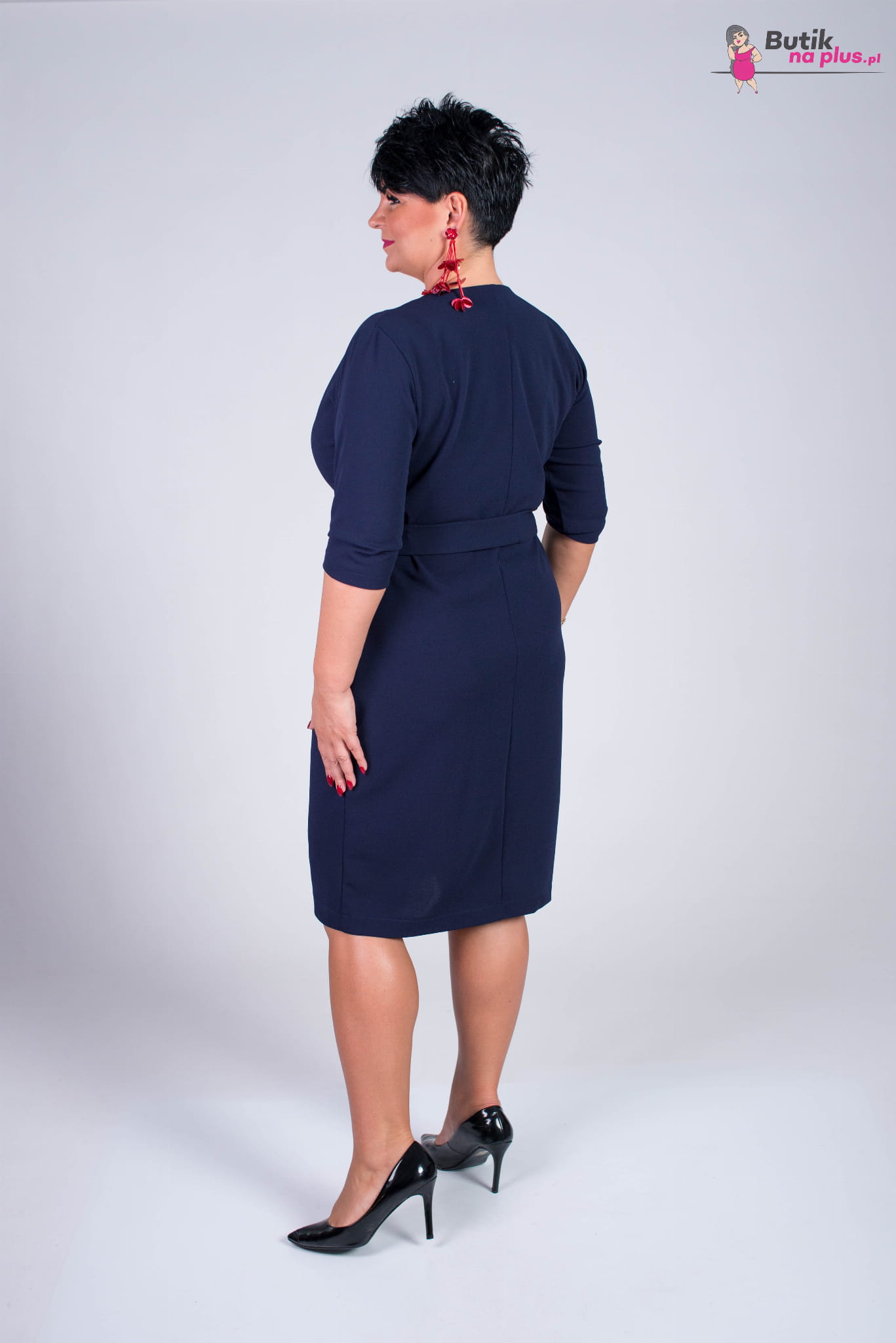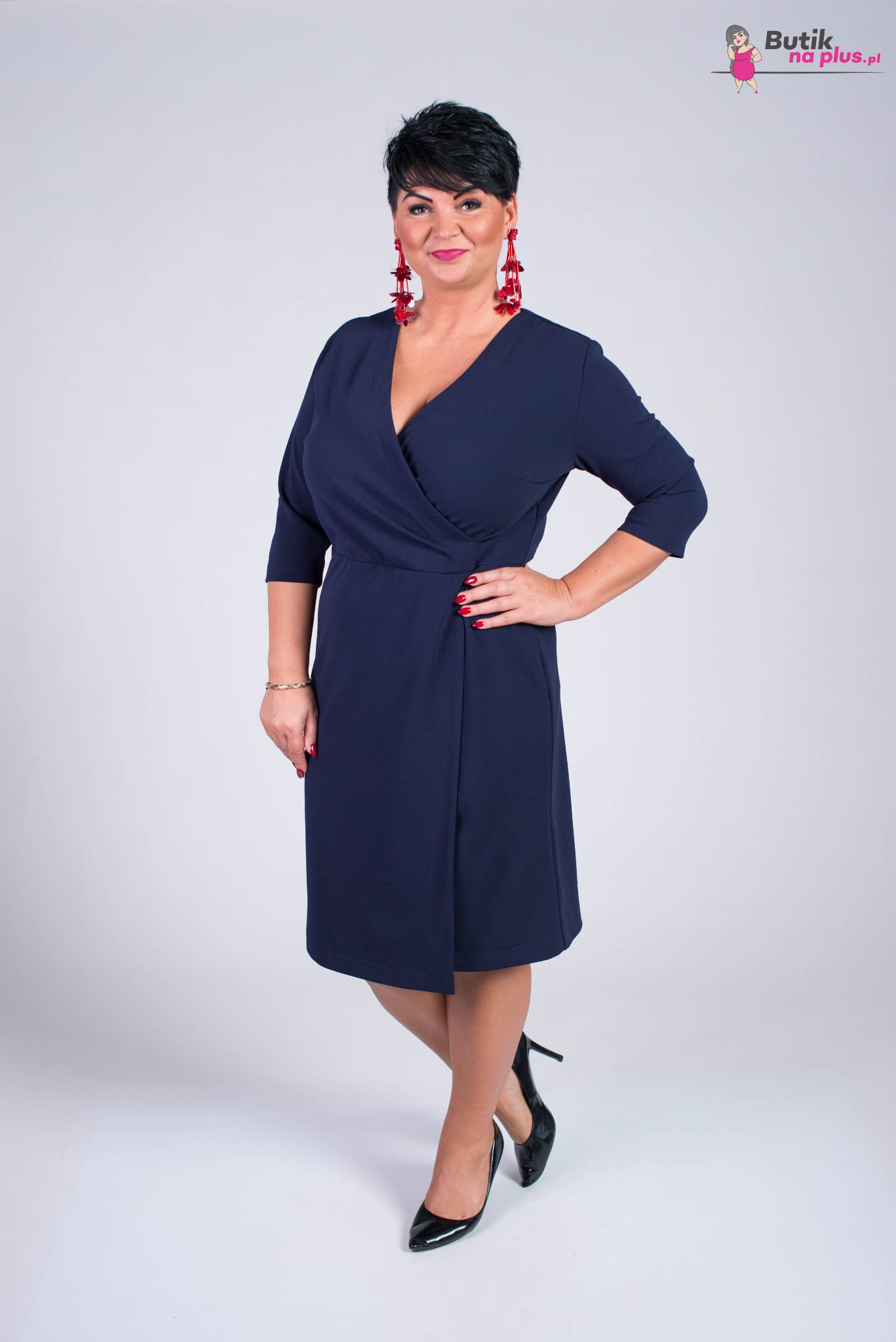 Wizytowa Sukienka z założeniem kopertowym i paskiem BRENDA granat Plus Size 44-52