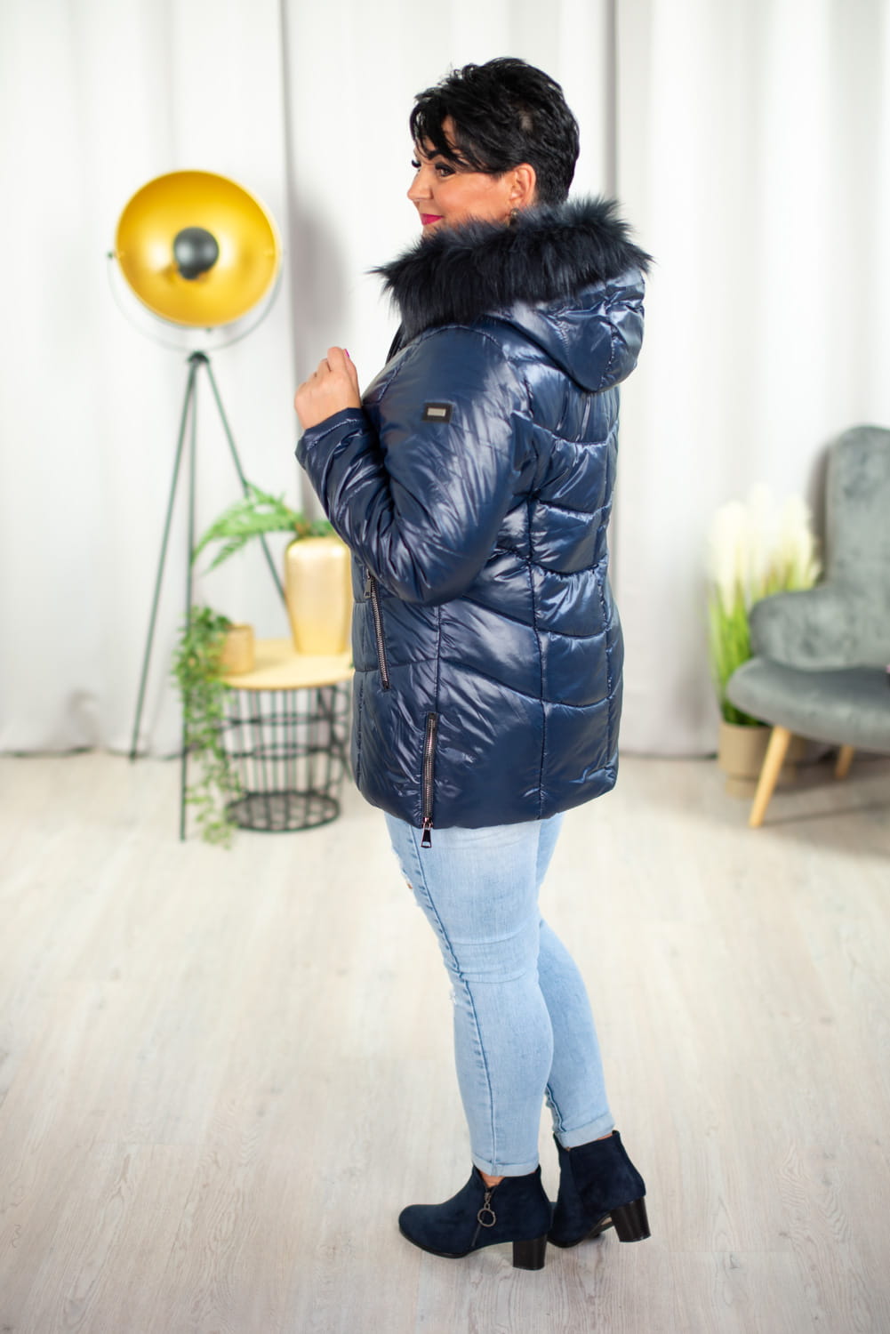 Zimowa Kurtka z połyskiem DORA granatowa Plus Size 44-52