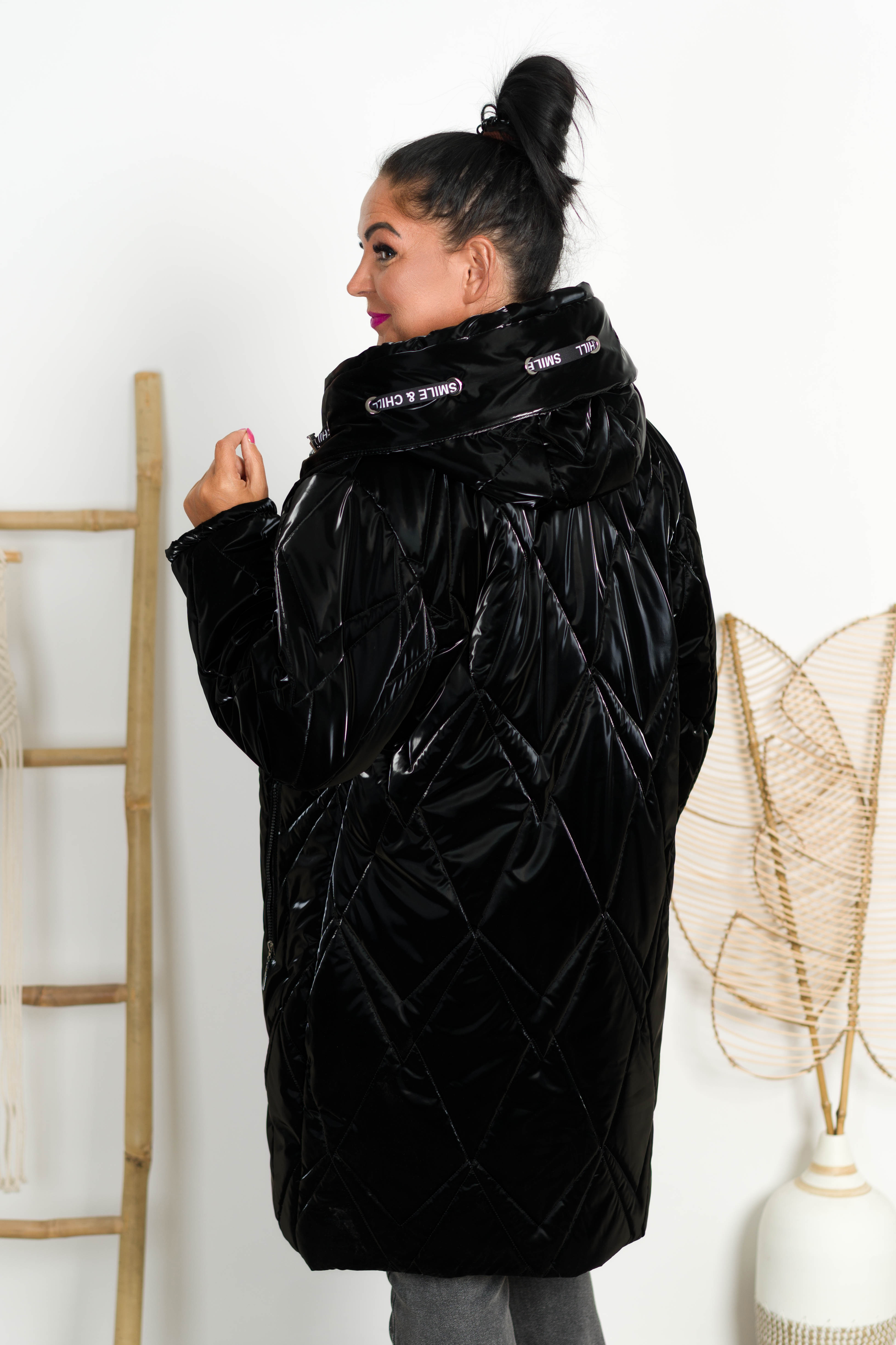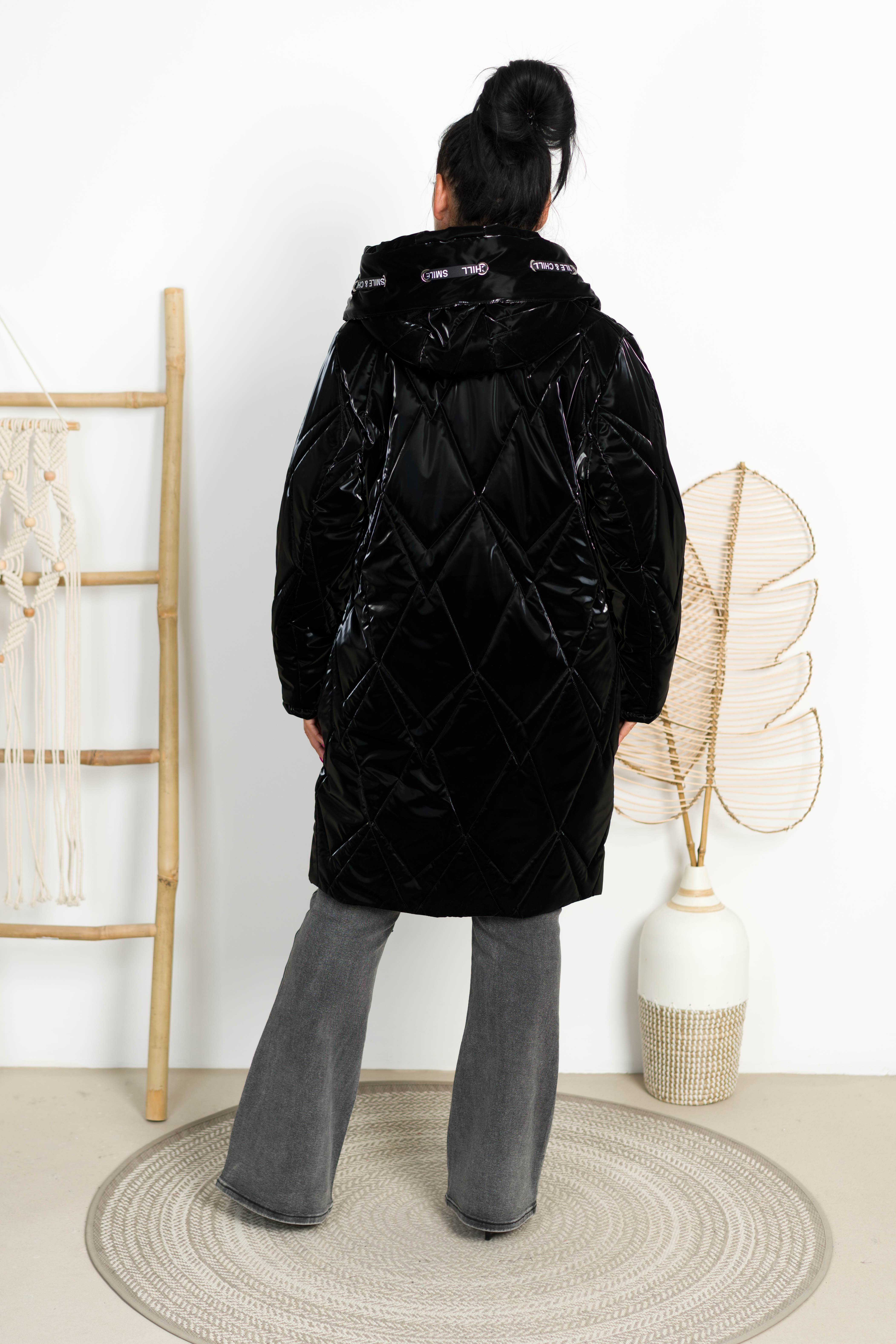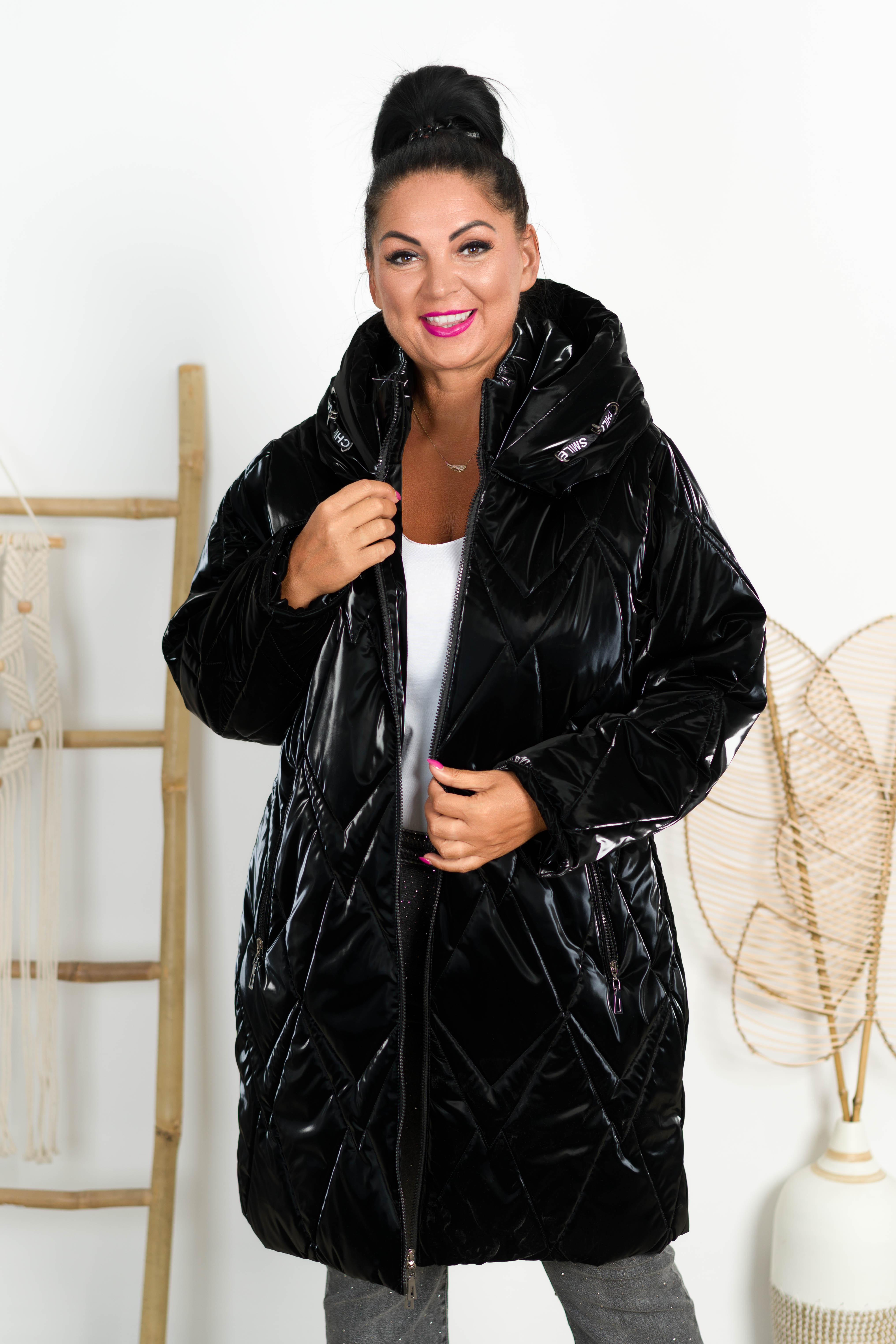 Zimowy Płaszcz Błyszczący NIKI czarny Plus Size 42-52